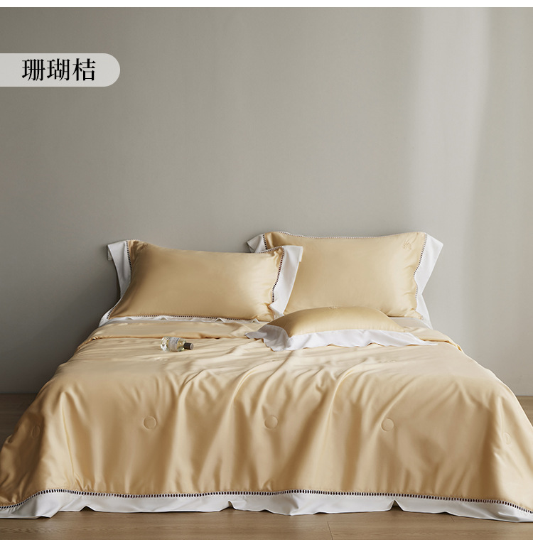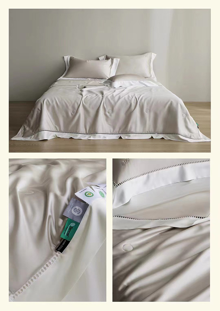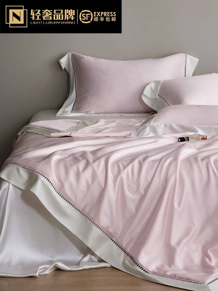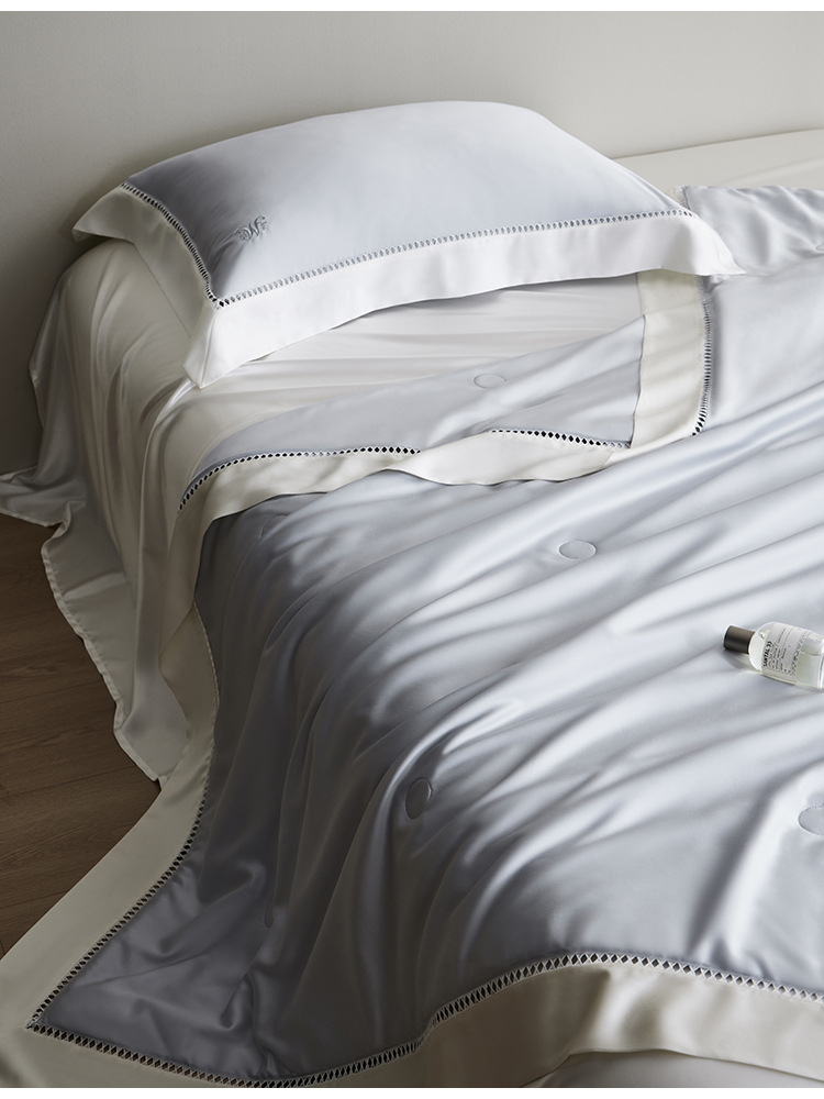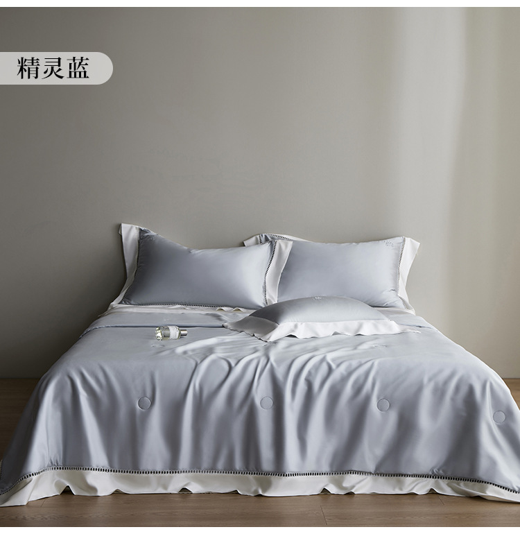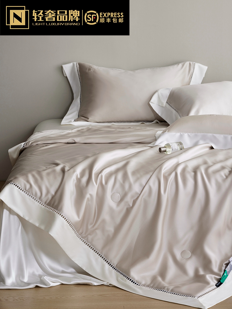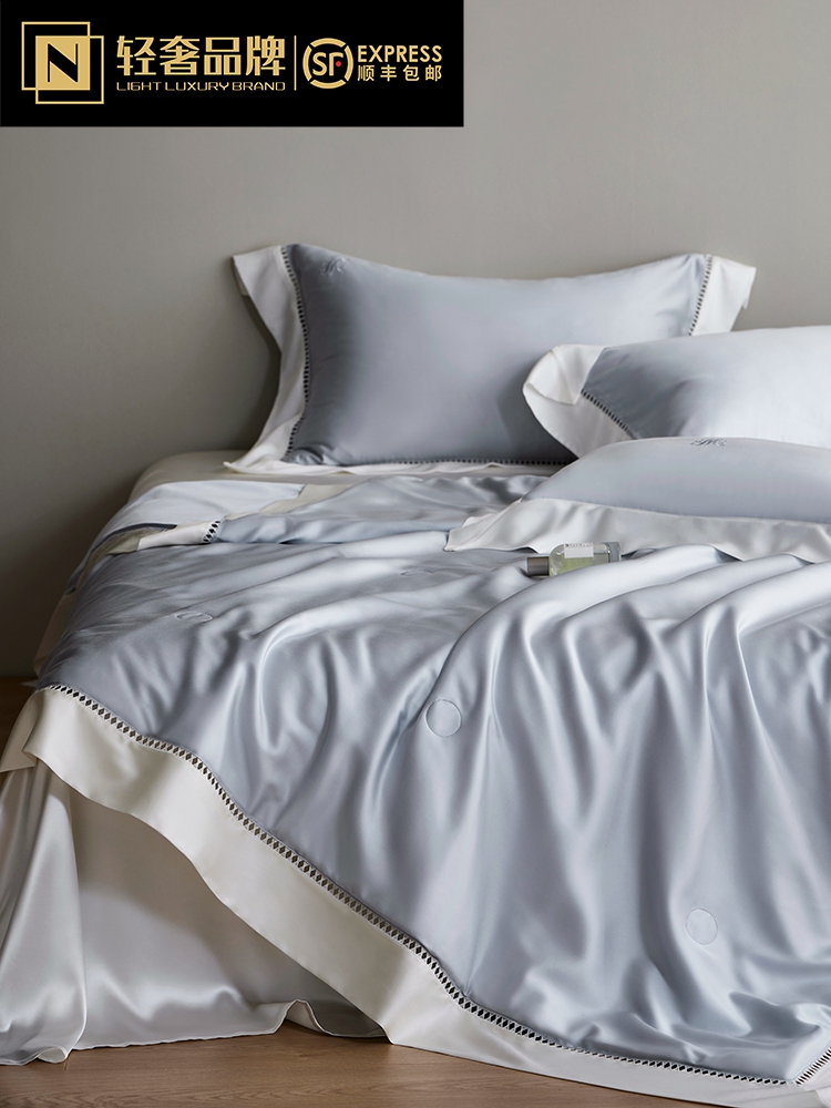 라이트 럭셔리 솔리드 컬러 100S 초극세 데니어 멀티스킨 텐셀 멀티스킨 실크 여름 쿨링 퀼트 4피스 세탁 가능한 더블 에어컨 퀼트스토어 가기