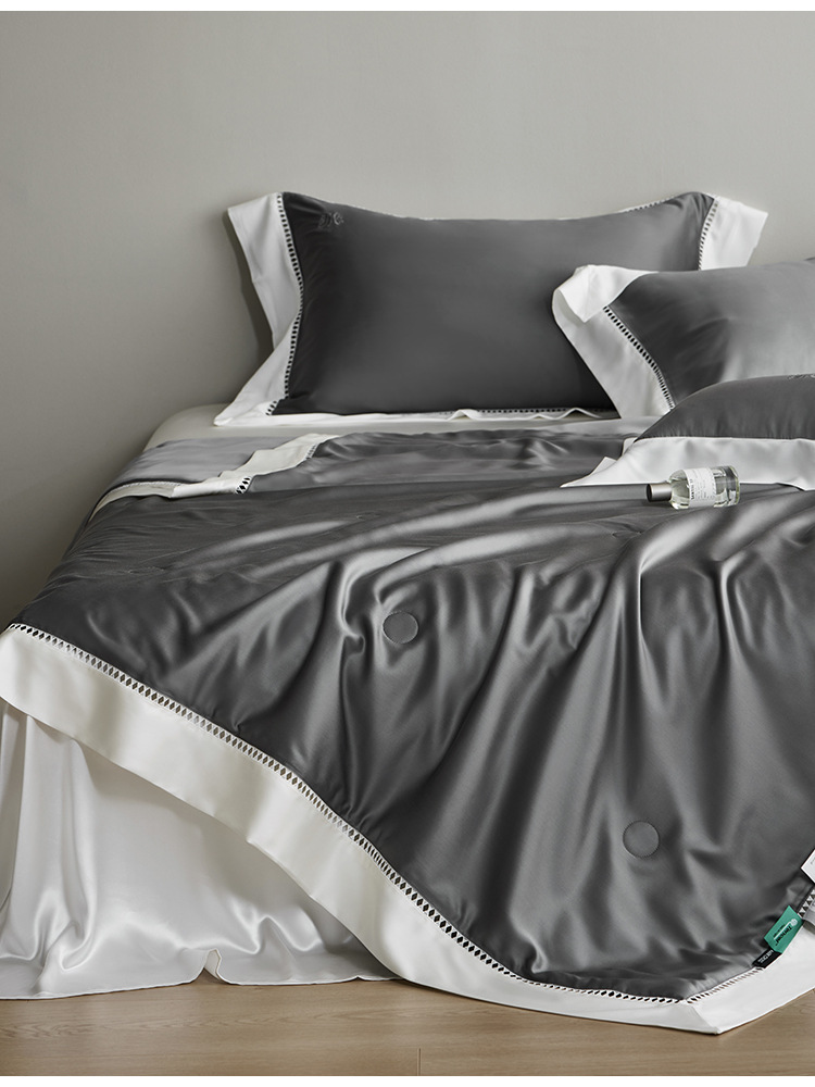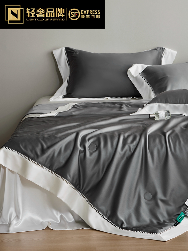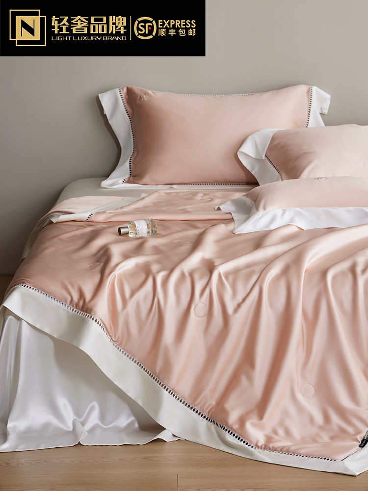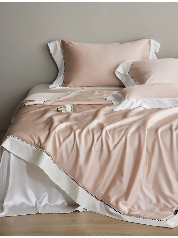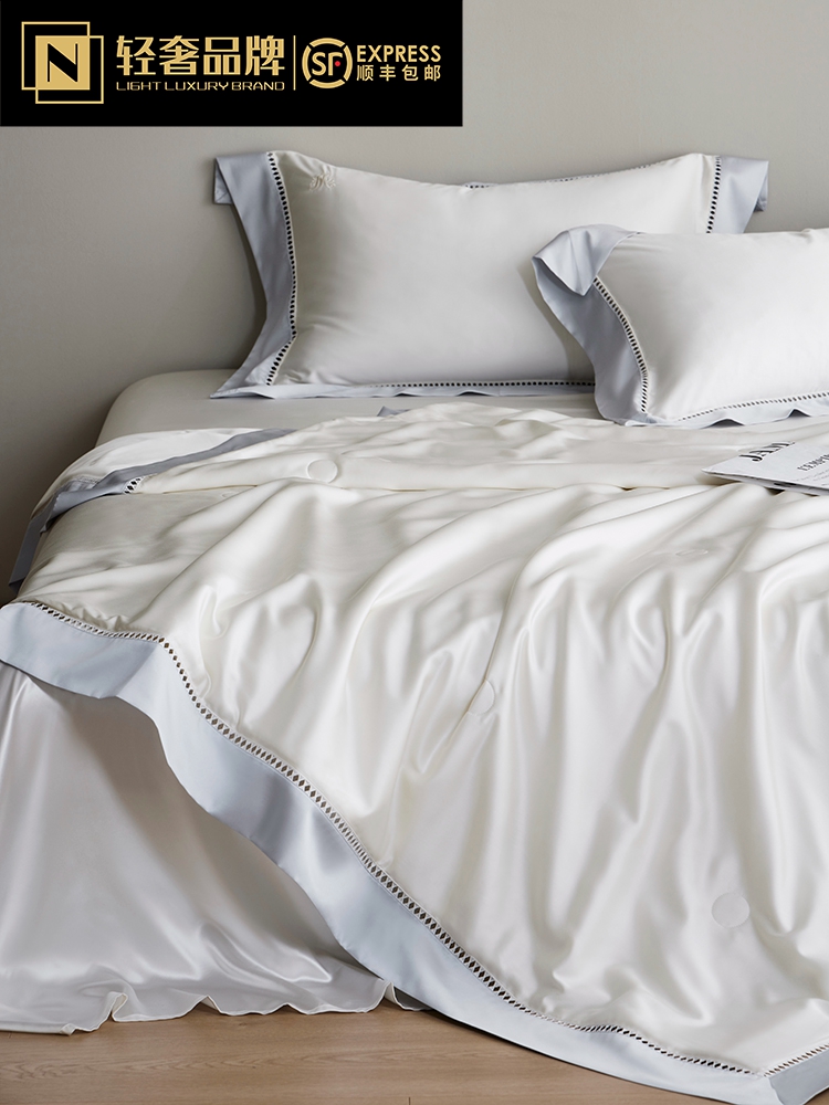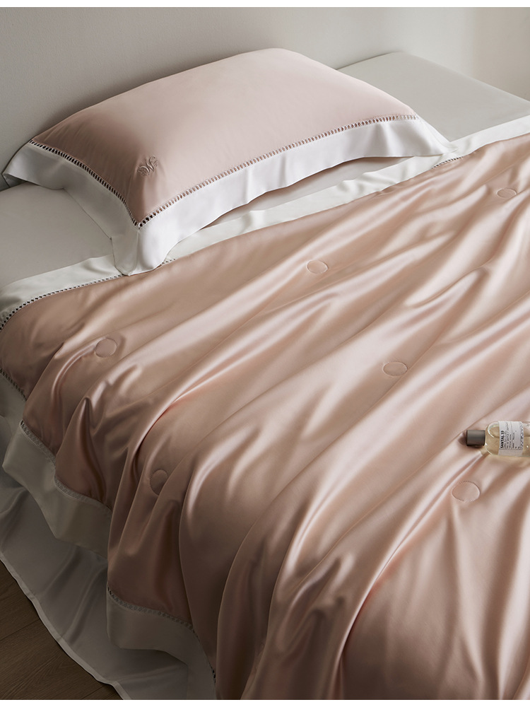 라이트 럭셔리 솔리드 컬러 100S 초극세 데니어 멀티스킨 텐셀 멀티스킨 실크 여름 쿨링 퀼트 4피스 세탁 가능한 더블 에어컨 퀼트스토어 가기