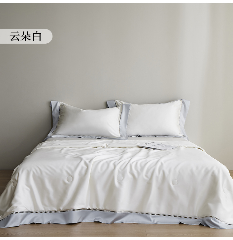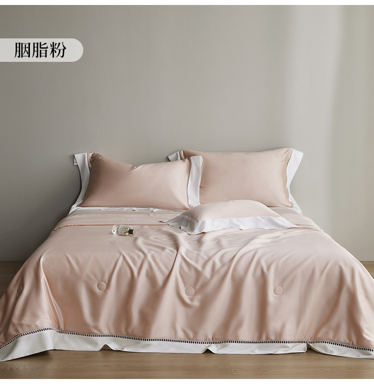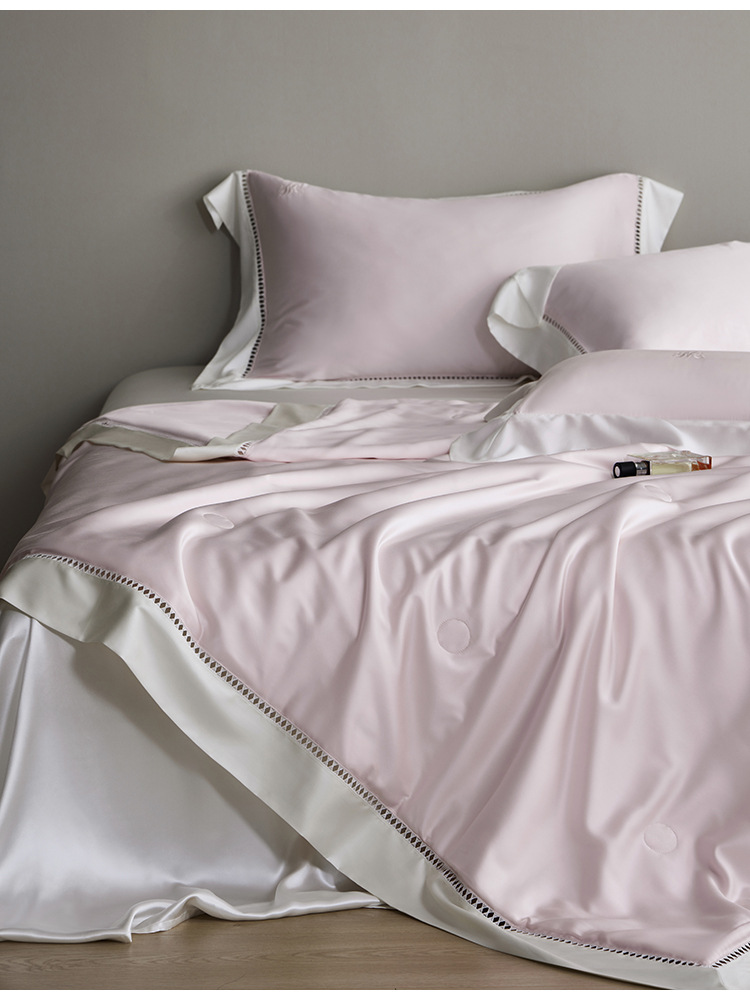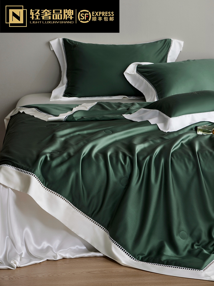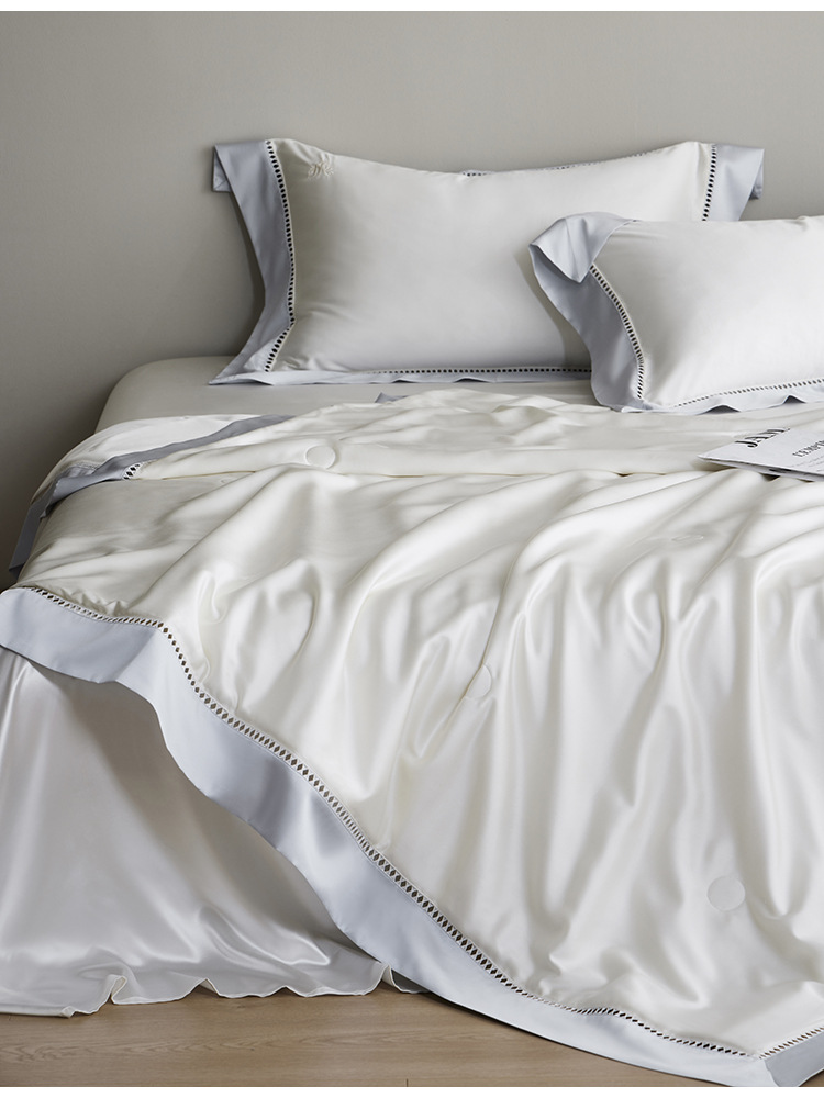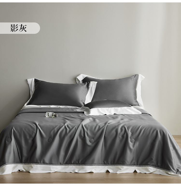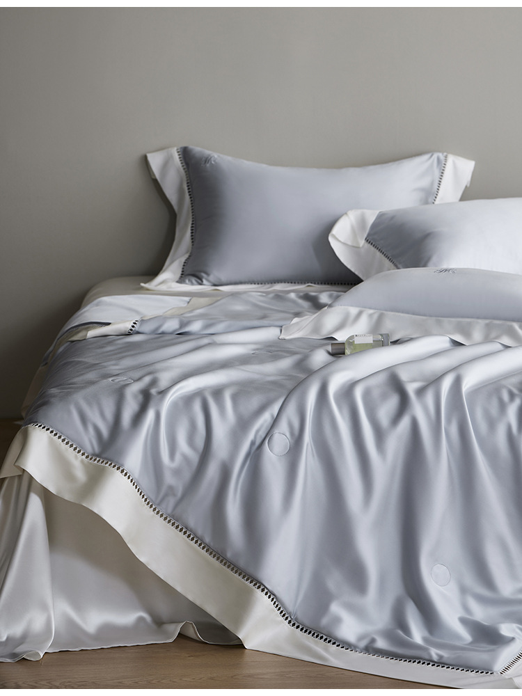 라이트 럭셔리 솔리드 컬러 100S 초극세 데니어 멀티스킨 텐셀 멀티스킨 실크 여름 쿨링 퀼트 4피스 세탁 가능한 더블 에어컨 퀼트스토어 가기