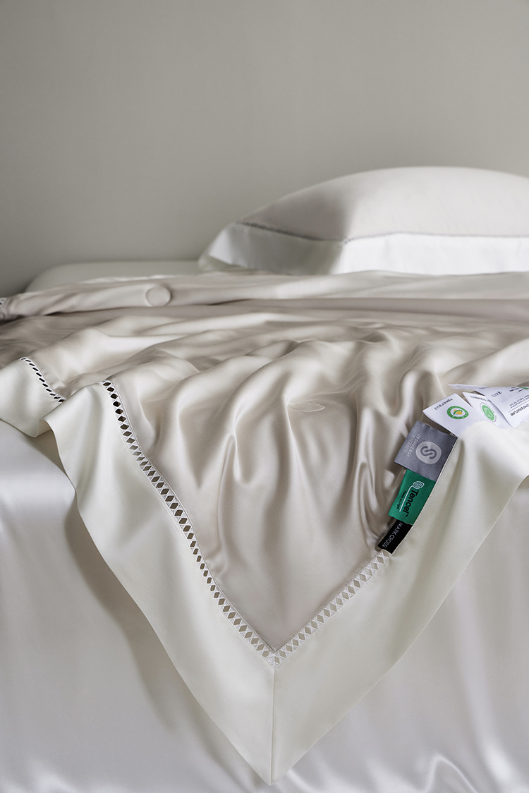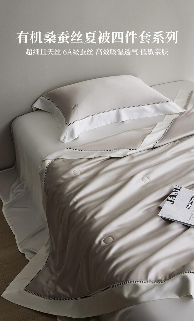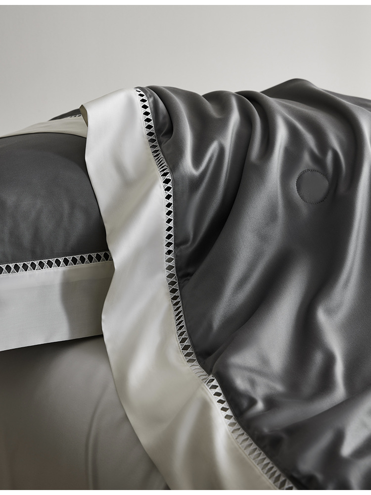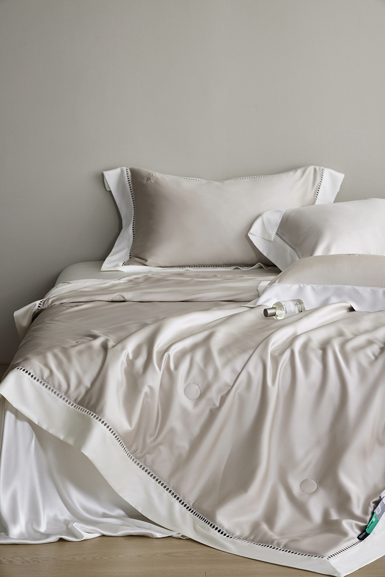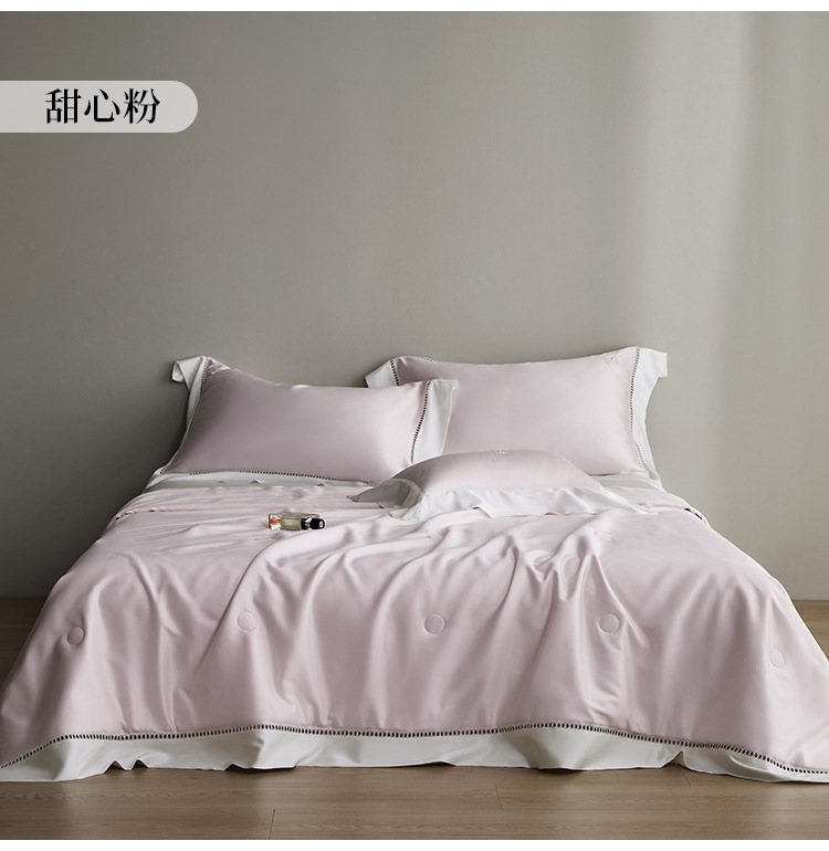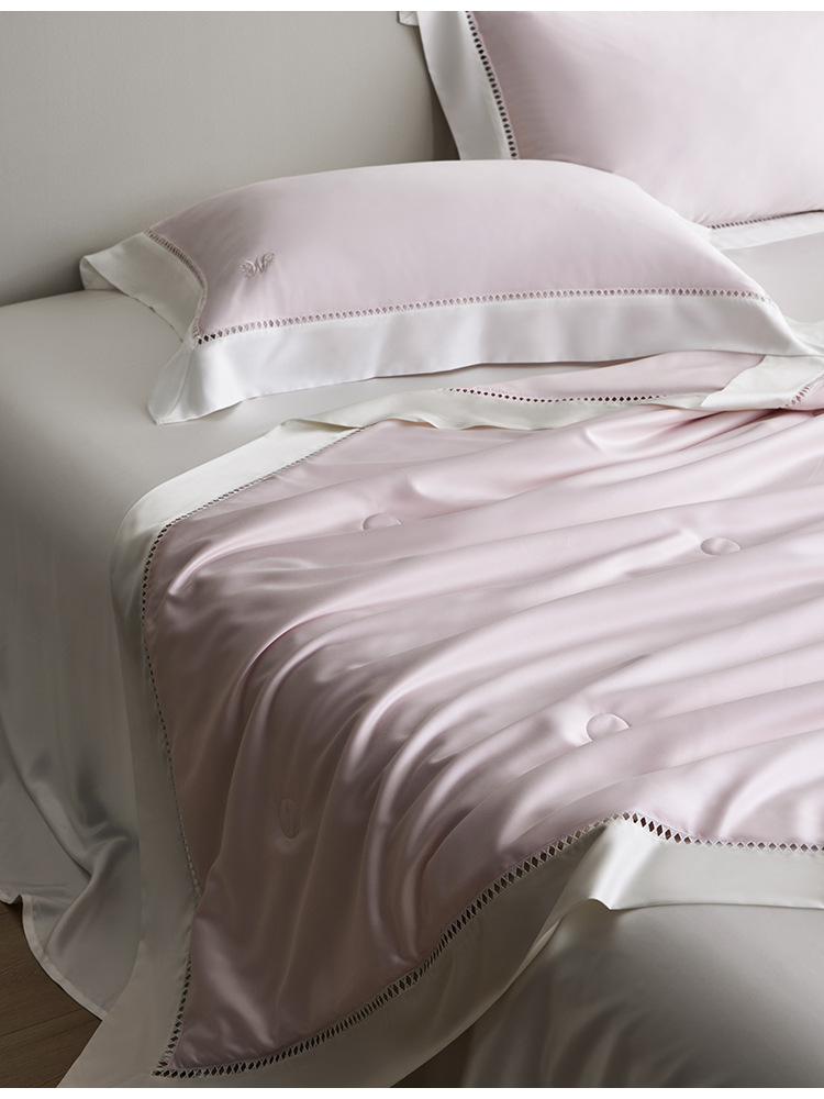 라이트 럭셔리 솔리드 컬러 100S 초극세 데니어 멀티스킨 텐셀 멀티스킨 실크 여름 쿨링 퀼트 4피스 세탁 가능한 더블 에어컨 퀼트스토어 가기