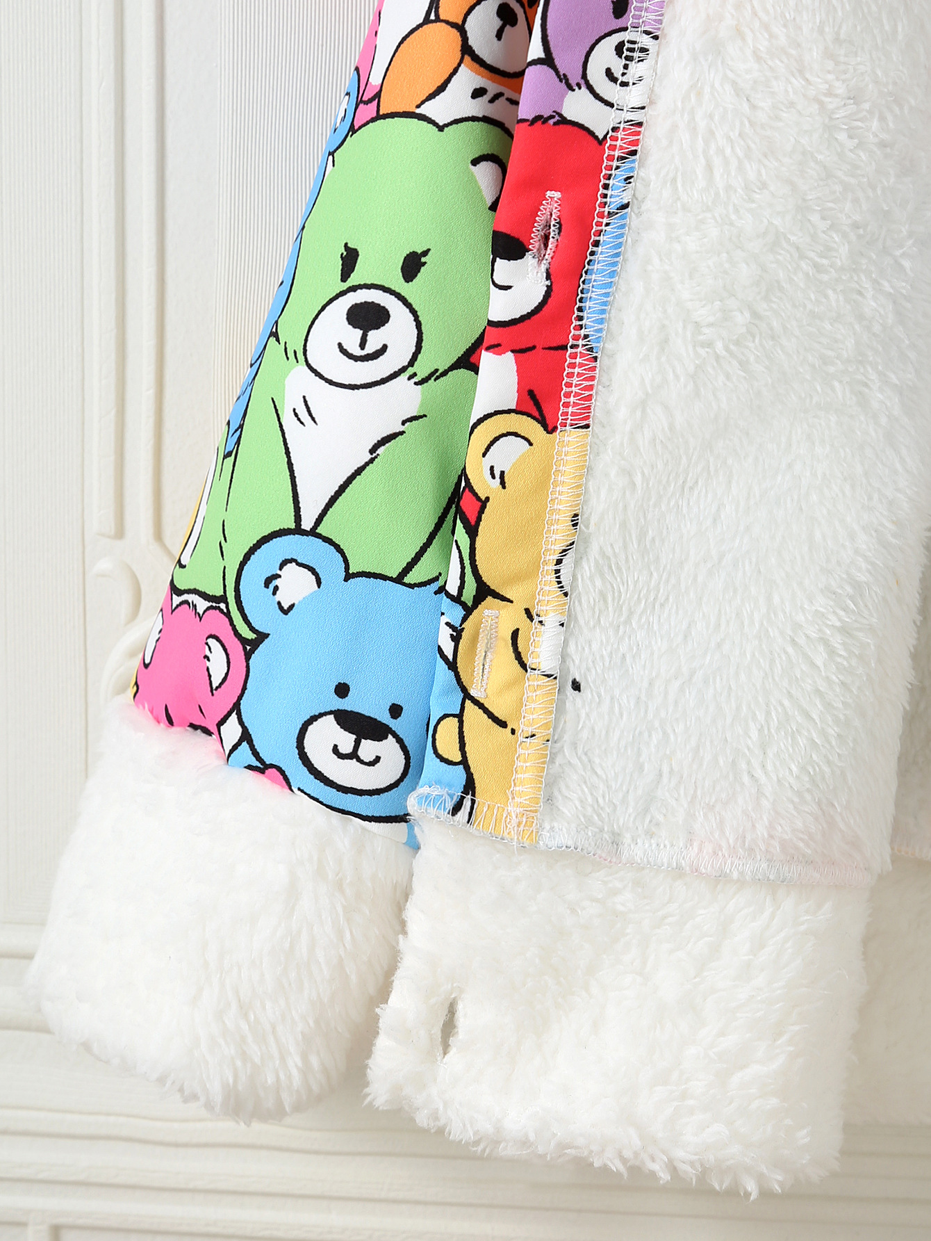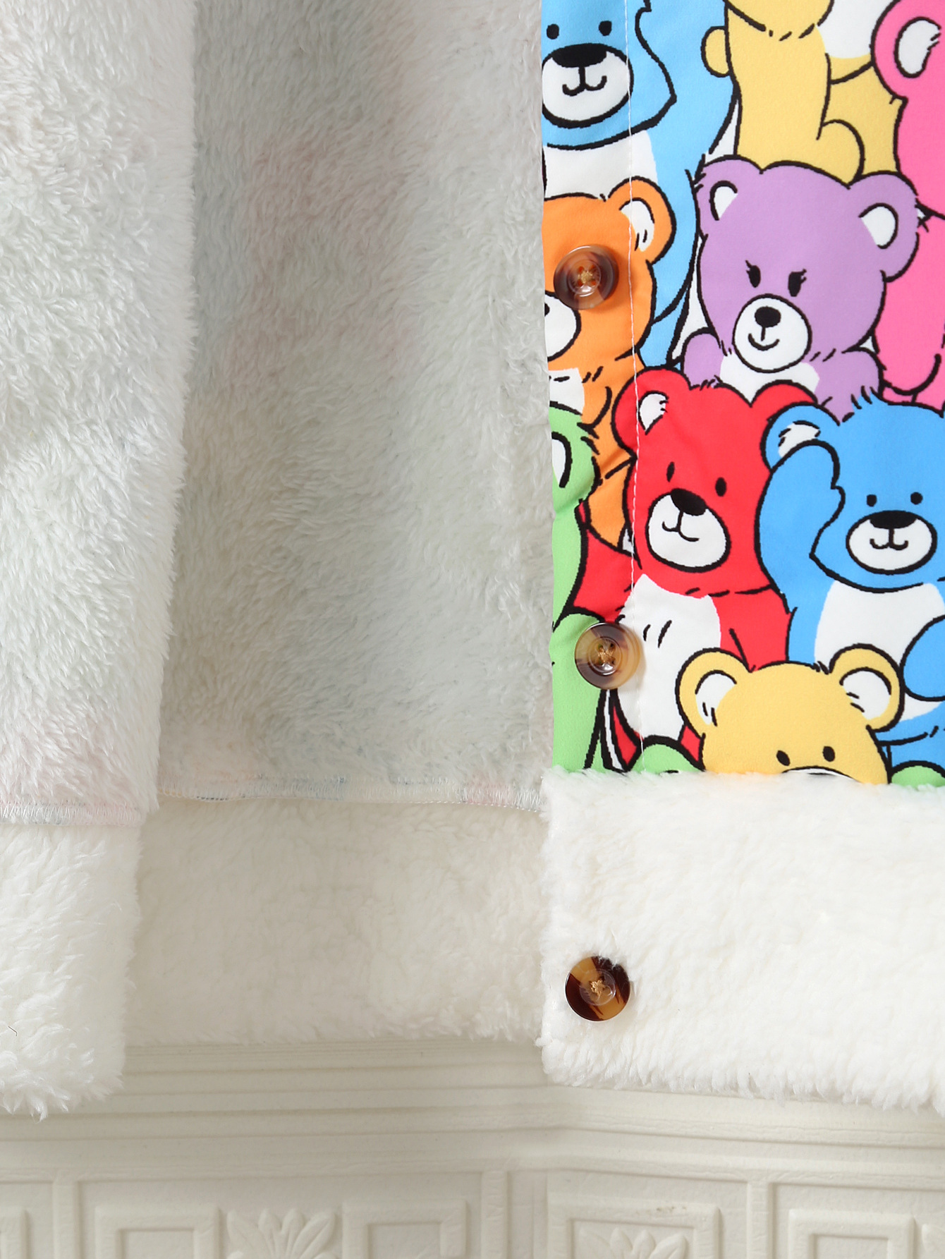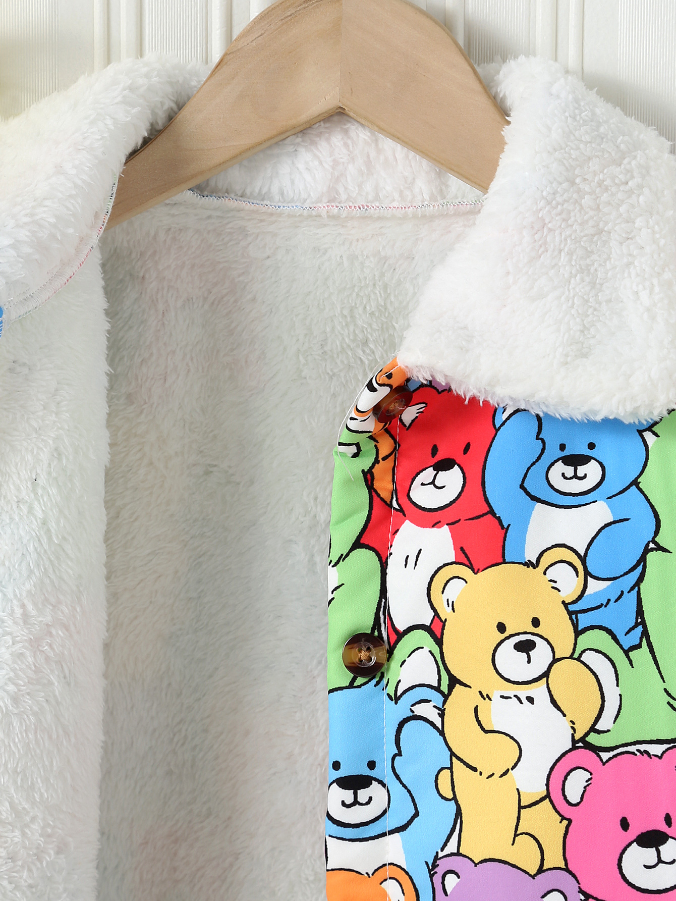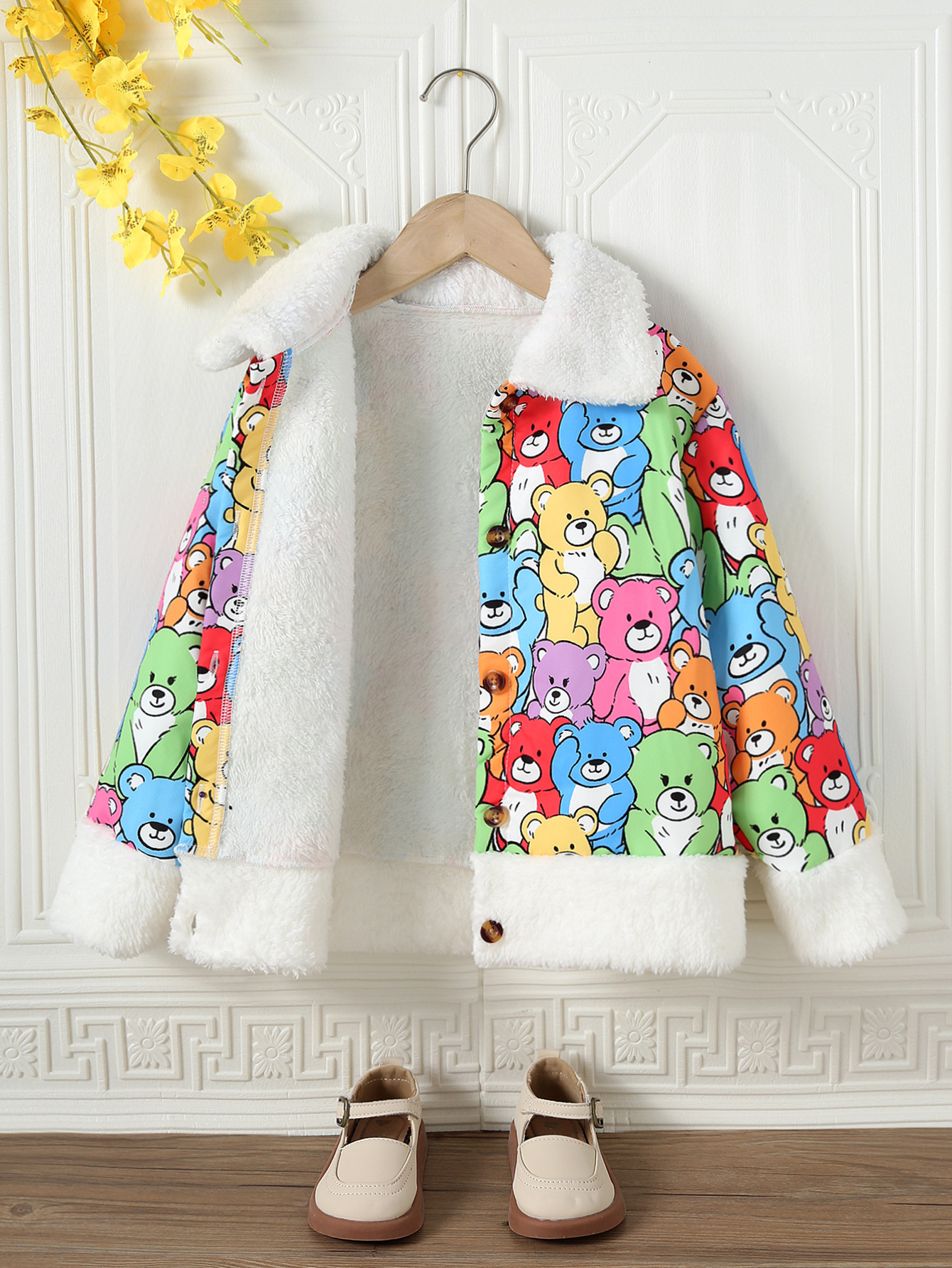가을, 겨울 소녀의 모피 옷깃과 벨벳 따뜻한 만화 귀여운 곰 프린트 싱글 브레스트 캐주얼 재킷스토어 가기