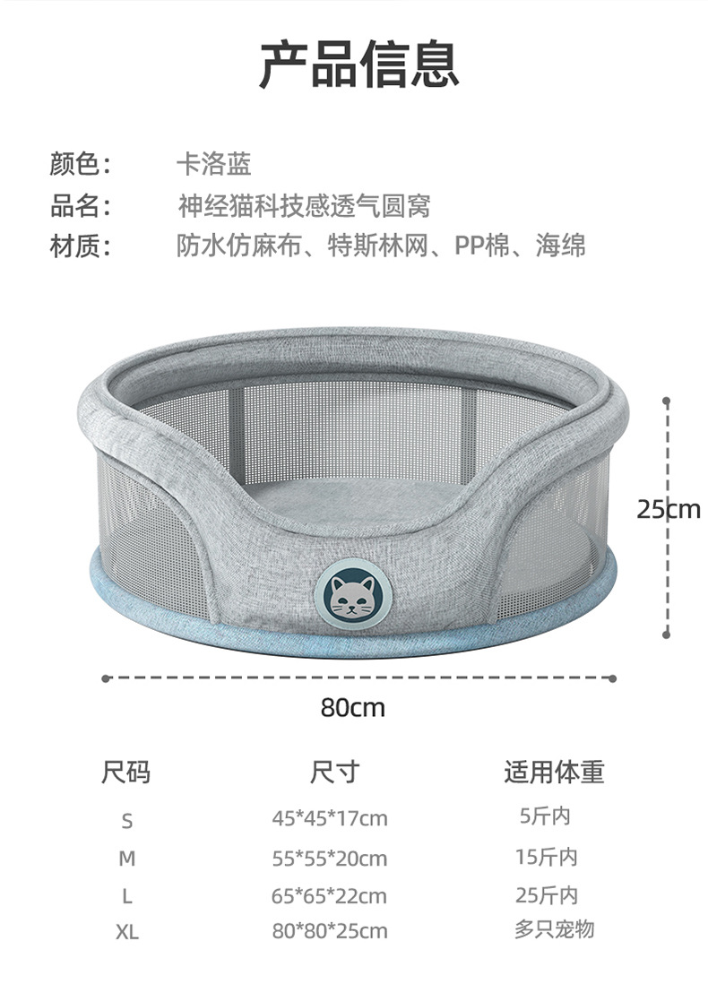 개 개집 봄과 여름 간단한 통기성 메쉬 둥근 개집 중소형 개 반 밀폐형 개 침대 고양이 개집 애완 동물 개집 용품스토어 가기