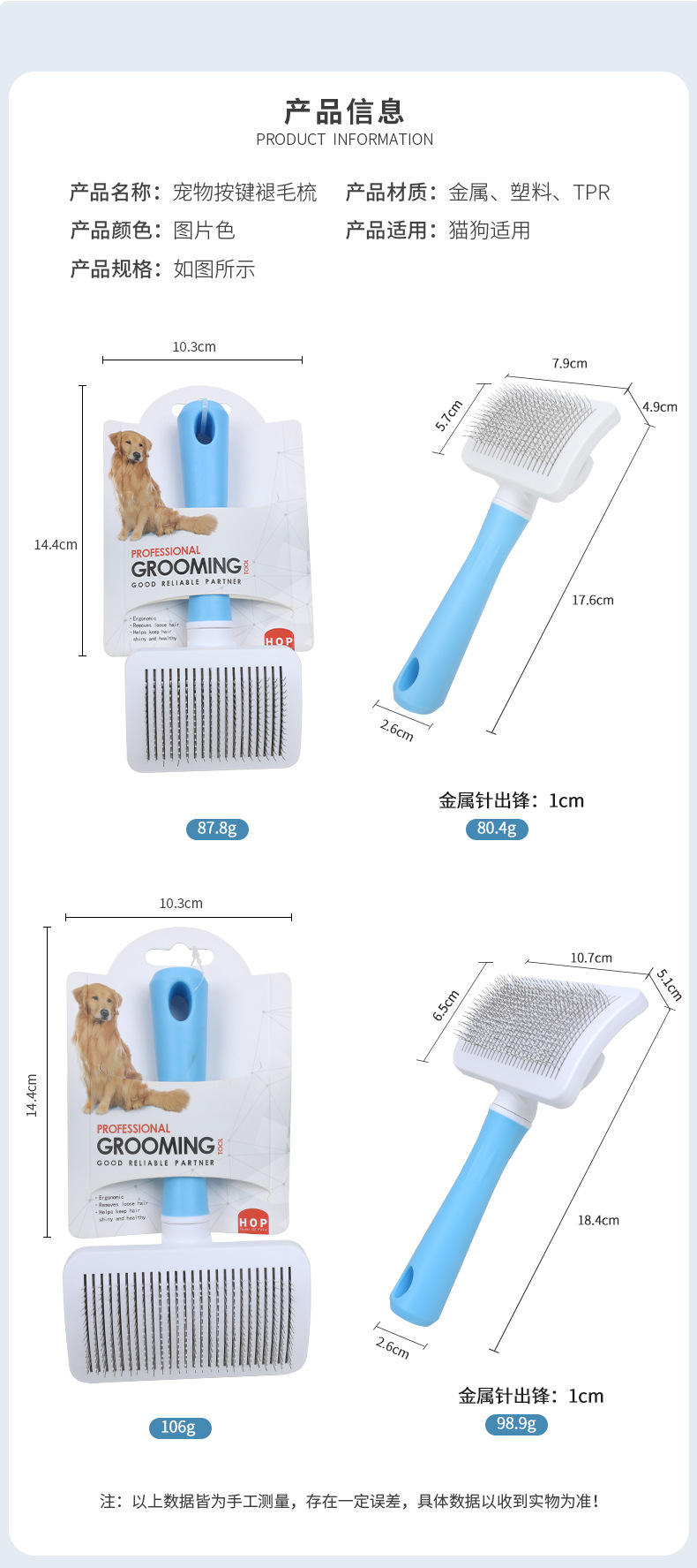 애완동물 버튼 털갈이 빗, 개 털갈이 빗, 고양이 빗, 미세바늘, 끈끈한 구슬, 털갈이 제거, 애완동물 용품 도매스토어 가기
