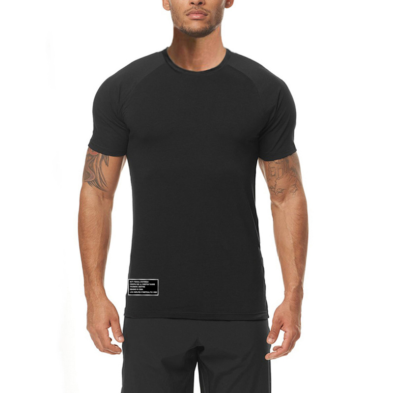 여름 신작 근육질 남성 속건성 타이츠 반팔 슬림 스트레치 트레이닝복 라운드 넥 바닥 셔츠 유럽과 미국 트렌드스토어 가기