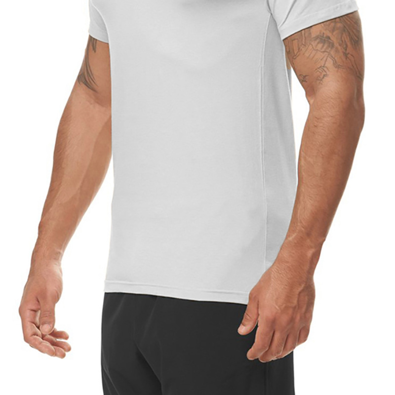여름 신작 근육질 남성 속건성 타이츠 반팔 슬림 스트레치 트레이닝복 라운드 넥 바닥 셔츠 유럽과 미국 트렌드