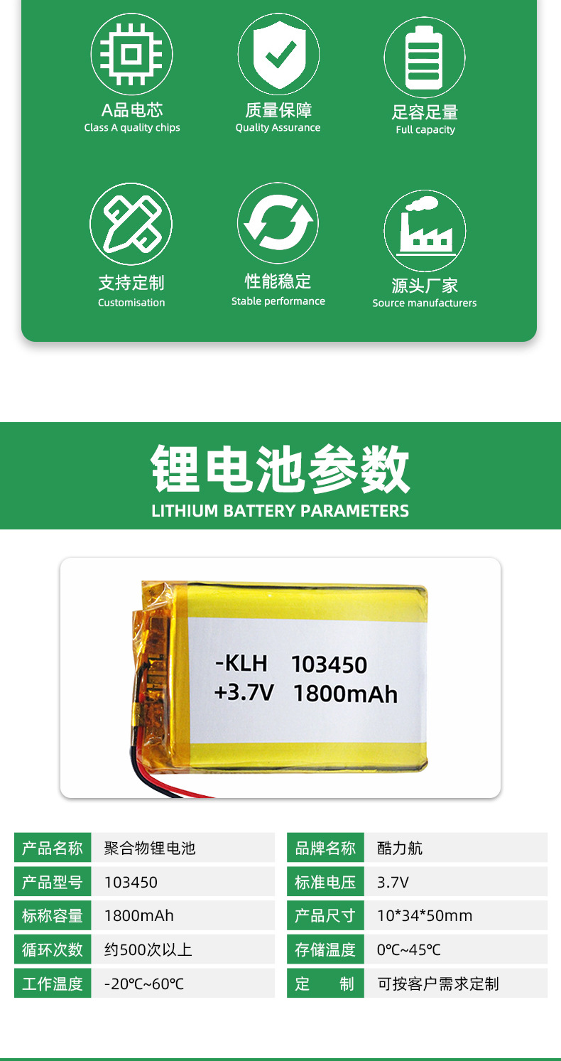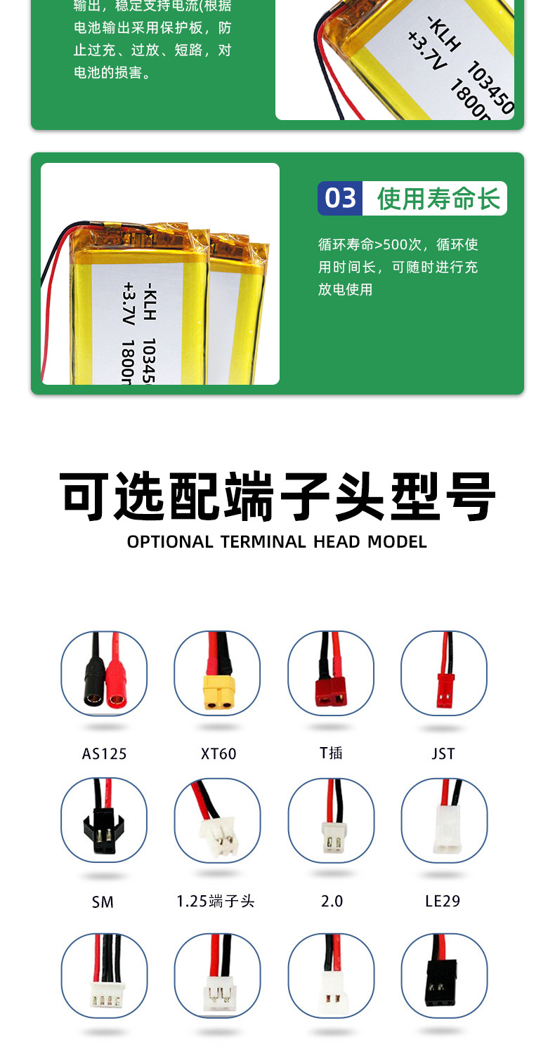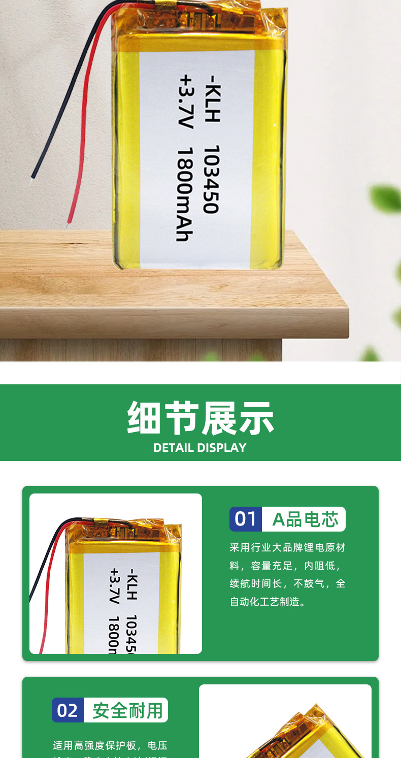 103450 폴리머 리튬 배터리 1800mAh 의료 미용 기기 3.7V 이어폰 배터리 소프트 팩 모바일 전원 공급 장치스토어 가기