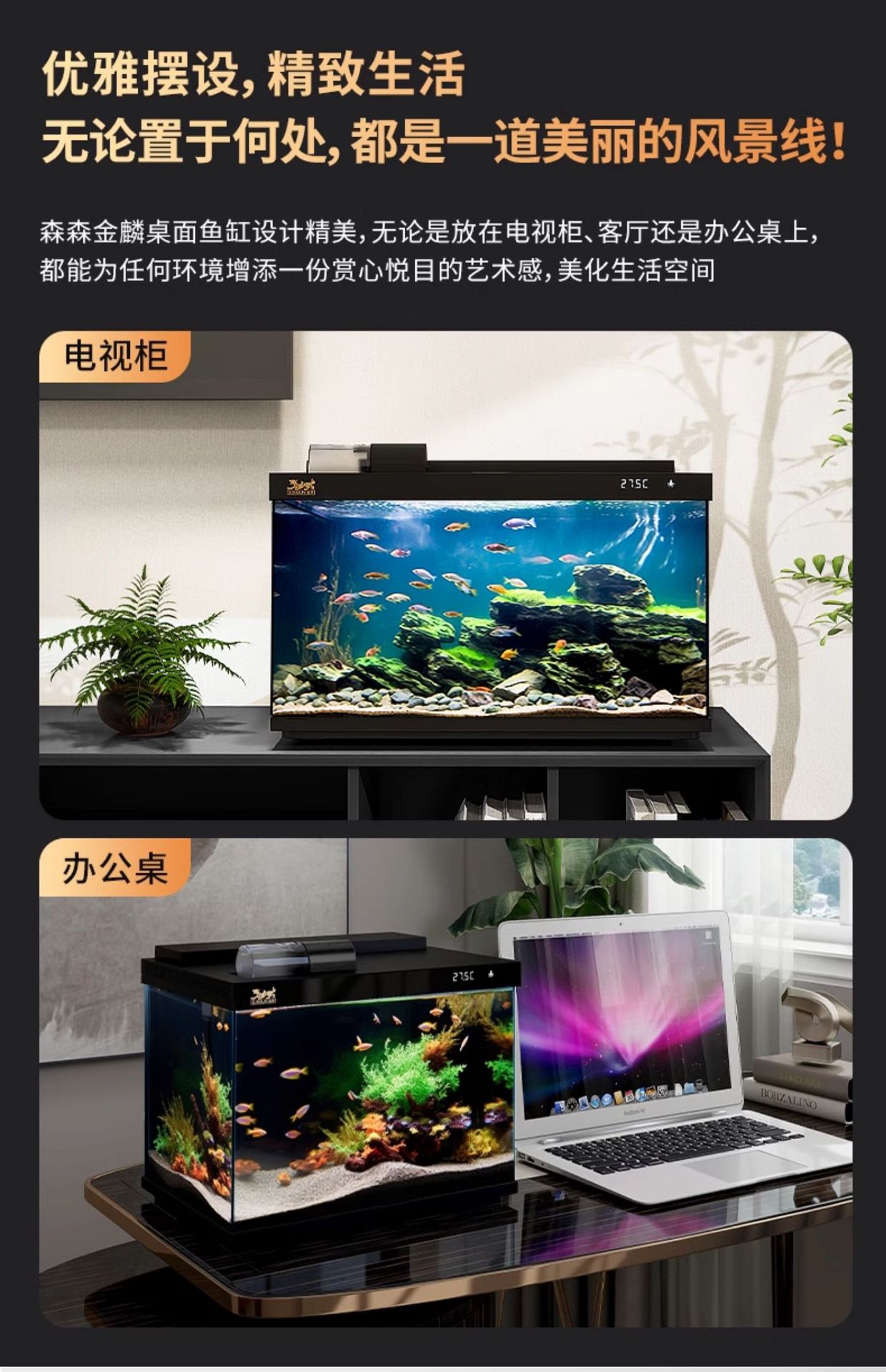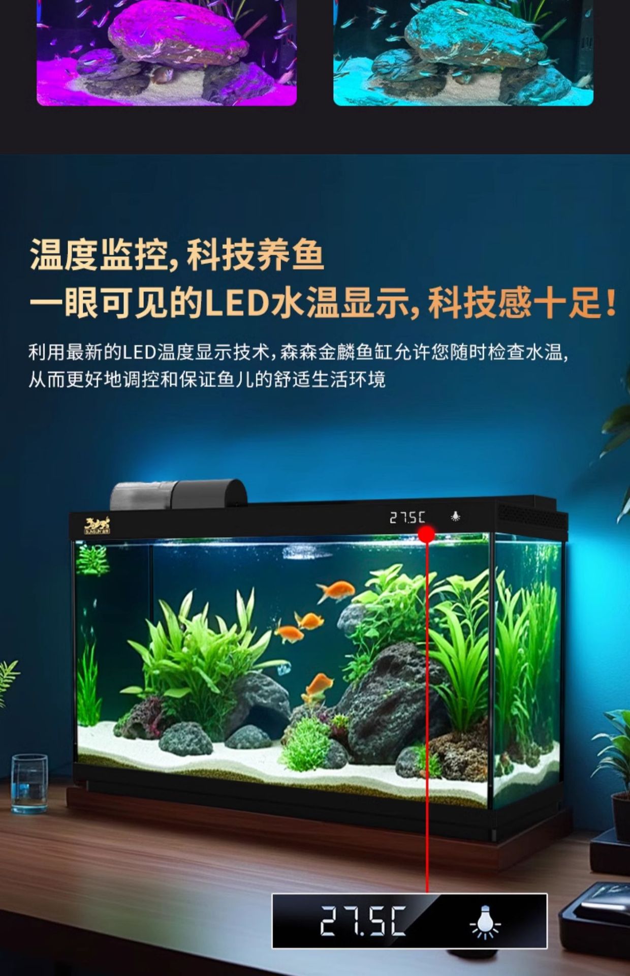 지능형 수조 필터 산소 발생기 일체형 초백색 유리 거실 소형 가정용 수족관 2025 새로운 스타일스토어 가기