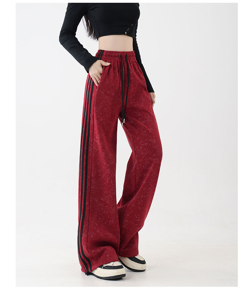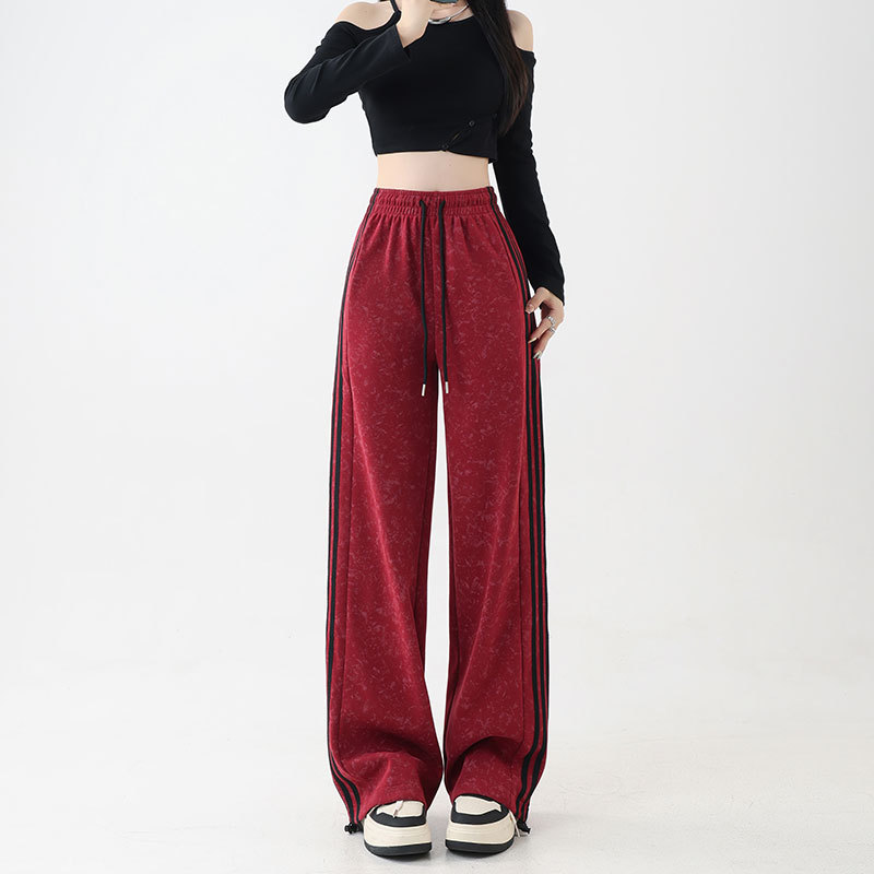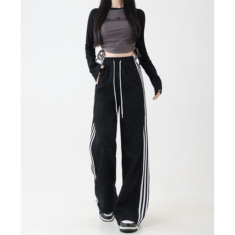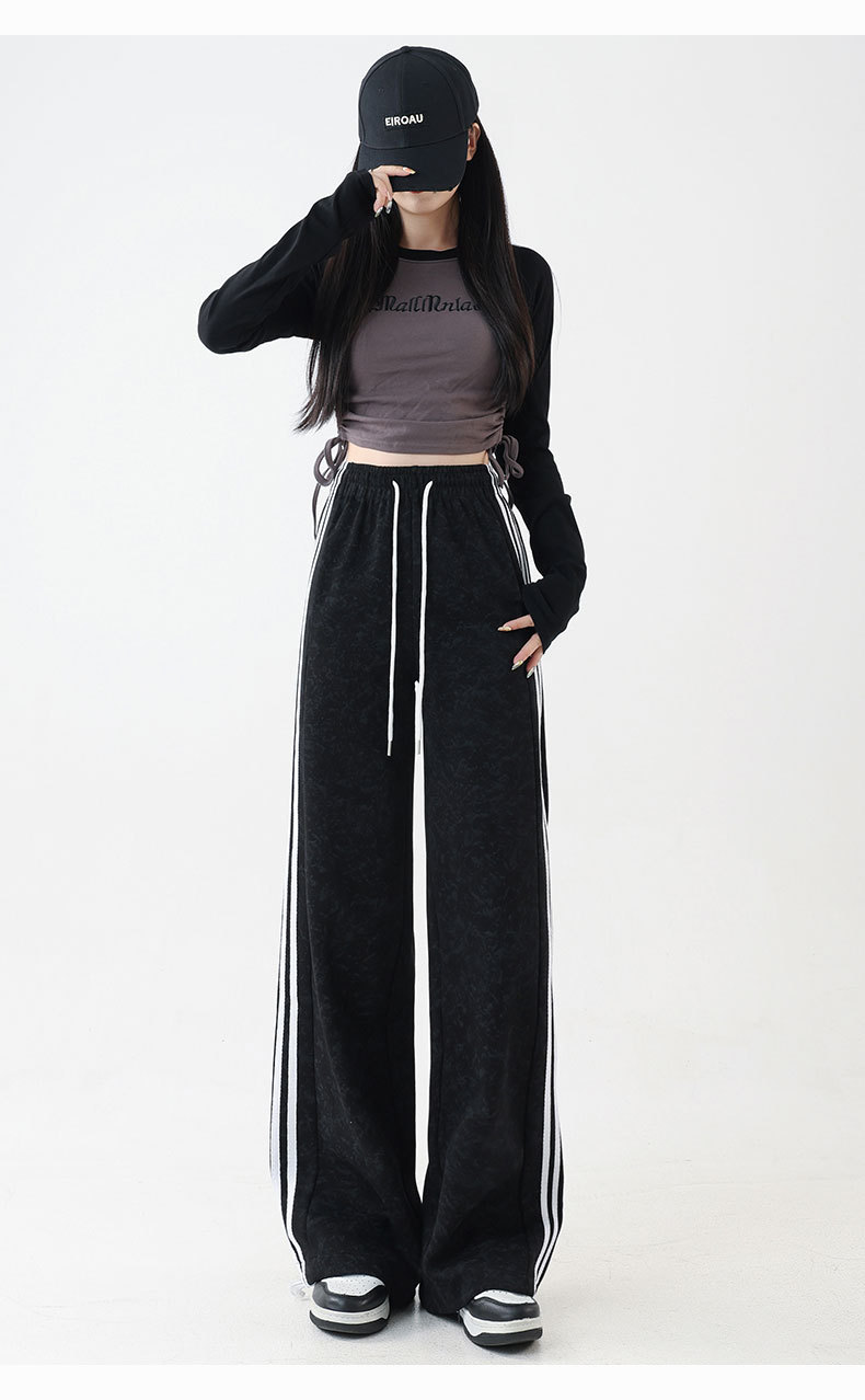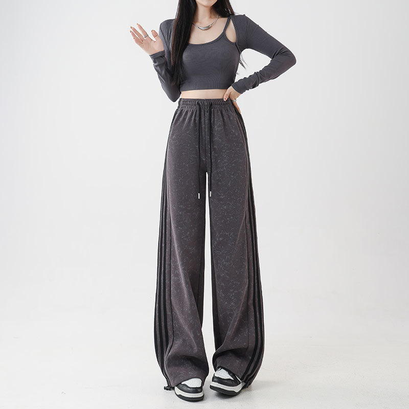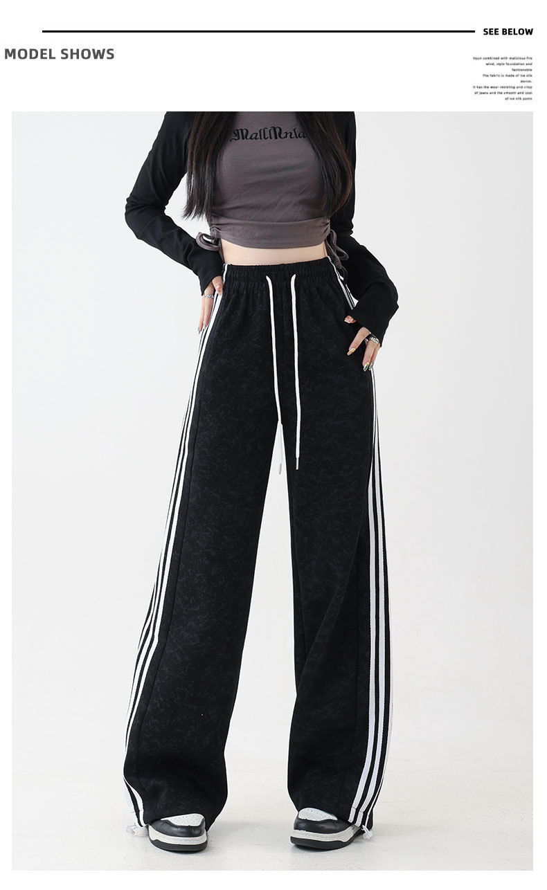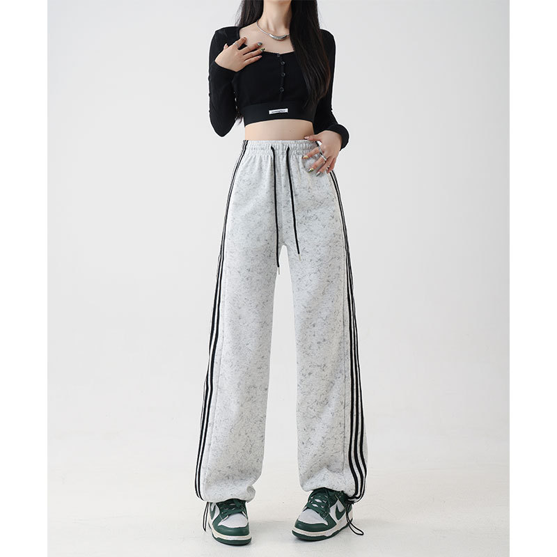 스트라이프 팬츠 봄 가을 하이웨이스트 루즈핏 스트레이트 캐주얼 팬츠 스플라이스 슬림핏 와이드 팬츠 여성용 드레이프 캐주얼 만능 팬츠