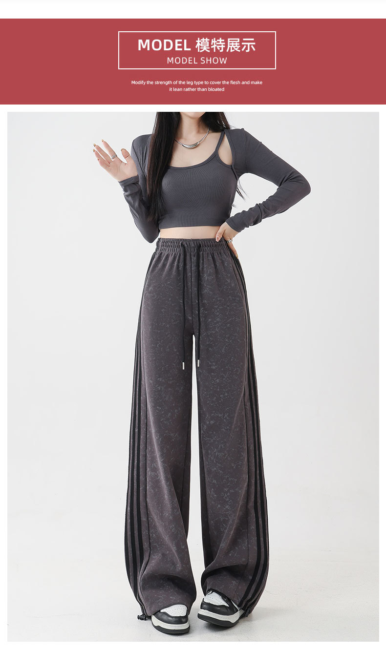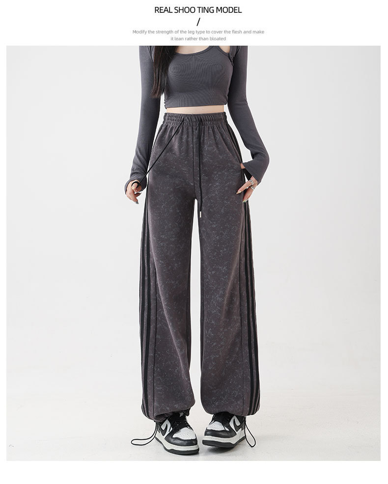 스트라이프 팬츠 봄 가을 하이웨이스트 루즈핏 스트레이트 캐주얼 팬츠 스플라이스 슬림핏 와이드 팬츠 여성용 드레이프 캐주얼 만능 팬츠스토어 가기