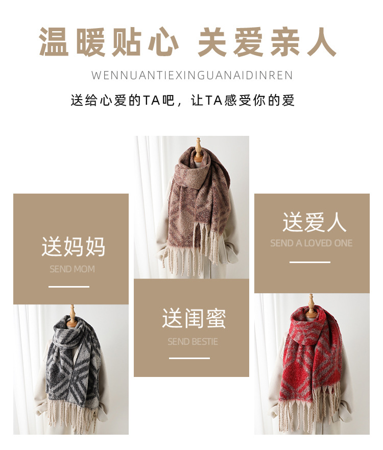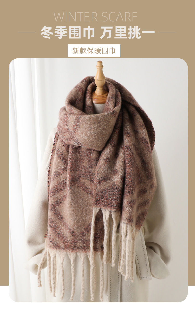 네이비 블루와 브라운 패턴의 기하학적 질감 모조 캐시미어 따뜻한 숄과 스카프 가을 겨울 패셔너블하고 다재다능한 태슬 통근 스카프스토어 가기