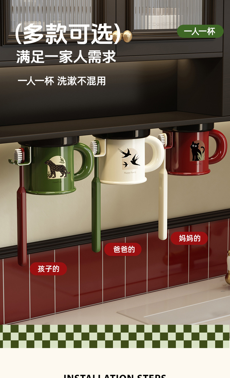 가정용 칫솔 컵 보관함 흡입 컵 홀더가있는 벽걸이 형 구강 세척제 컵 홀더 자기 욕실 세면 용품 세트 보관함스토어 가기