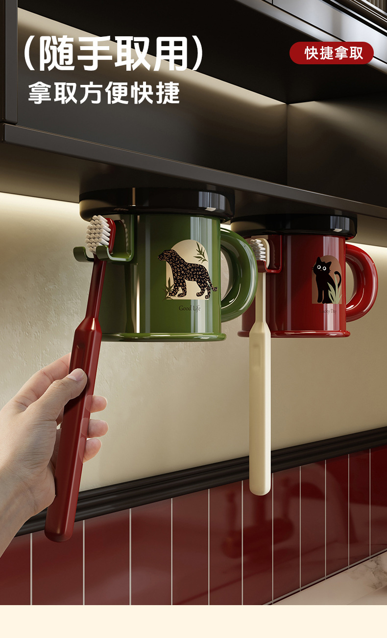 가정용 칫솔 컵 보관함 흡입 컵 홀더가있는 벽걸이 형 구강 세척제 컵 홀더 자기 욕실 세면 용품 세트 보관함