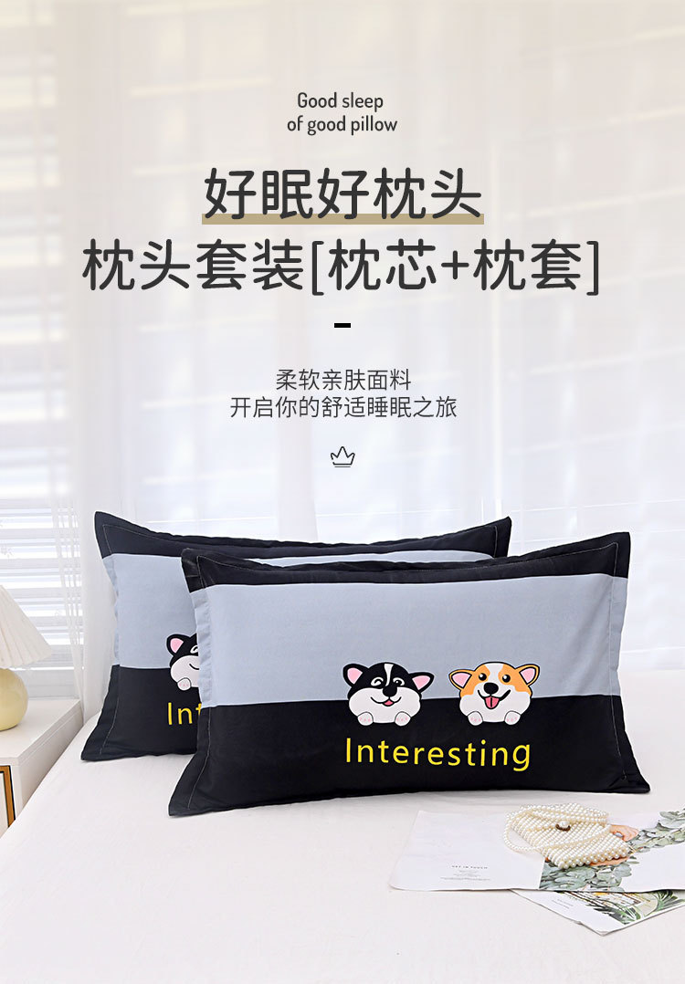 베개 커버가 있는 베개 코어, 경추 보호, 수면 보조, 가정 기숙사 학생 성인 베개 남성용 한 쌍