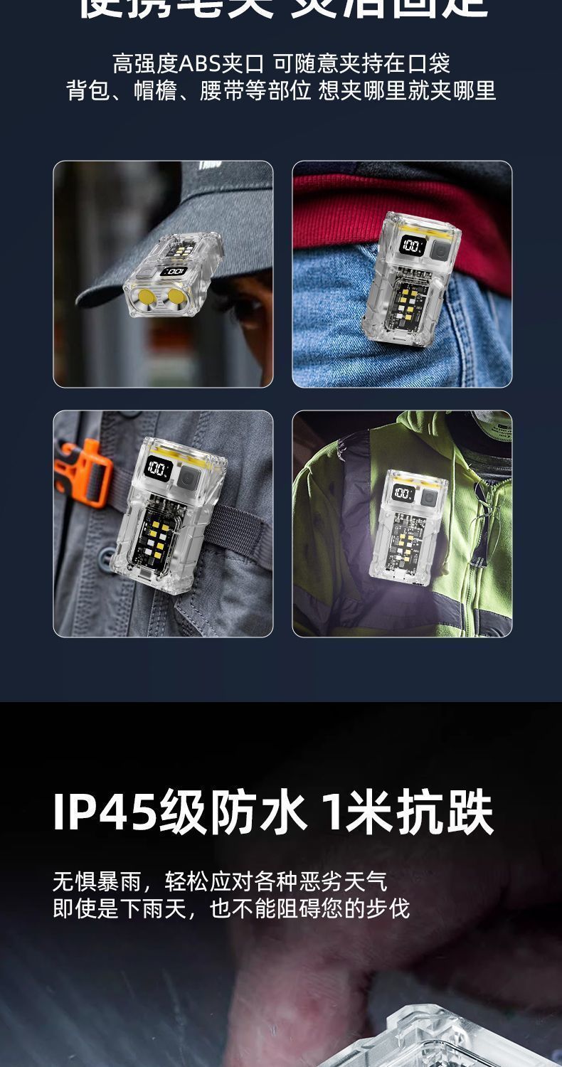 LED 미니 손전등, 강한 빛, 긴 배터리 수명, 클립 캡 램프, 야외 휴대용 다기능 야간 조명 cob 작업 램프스토어 가기