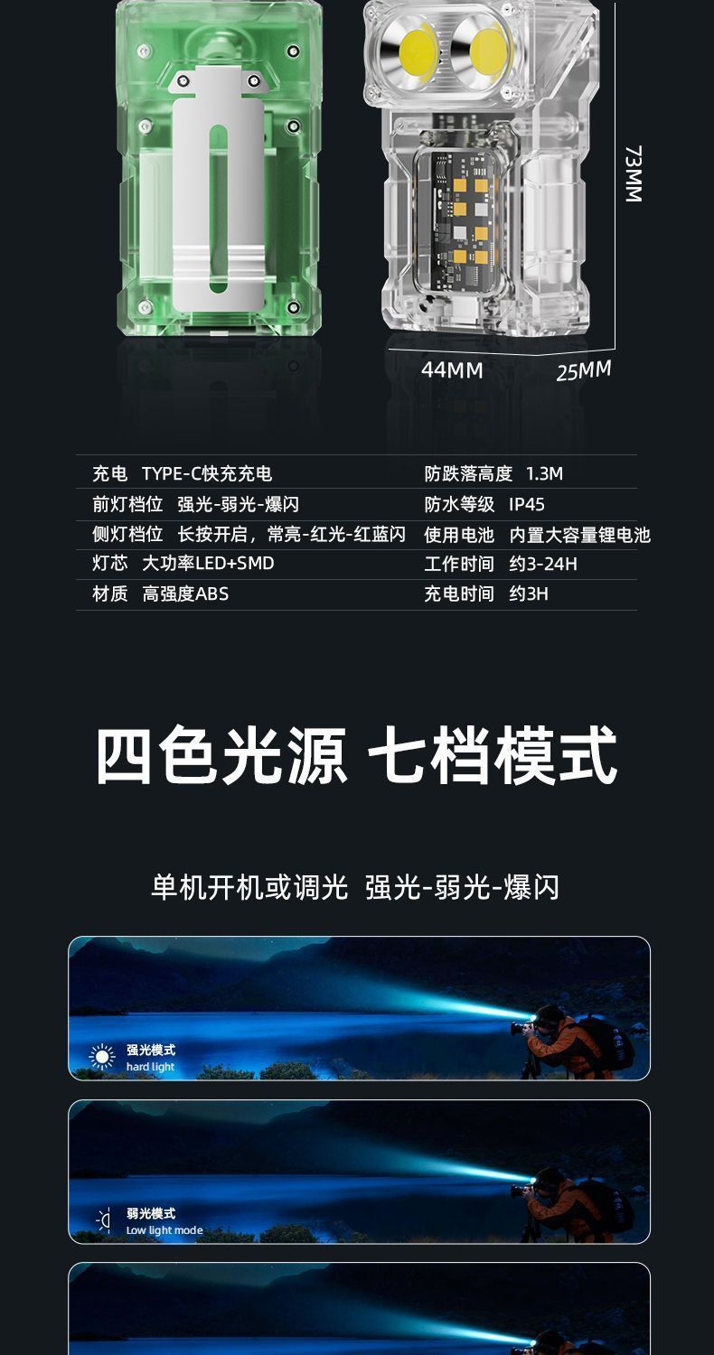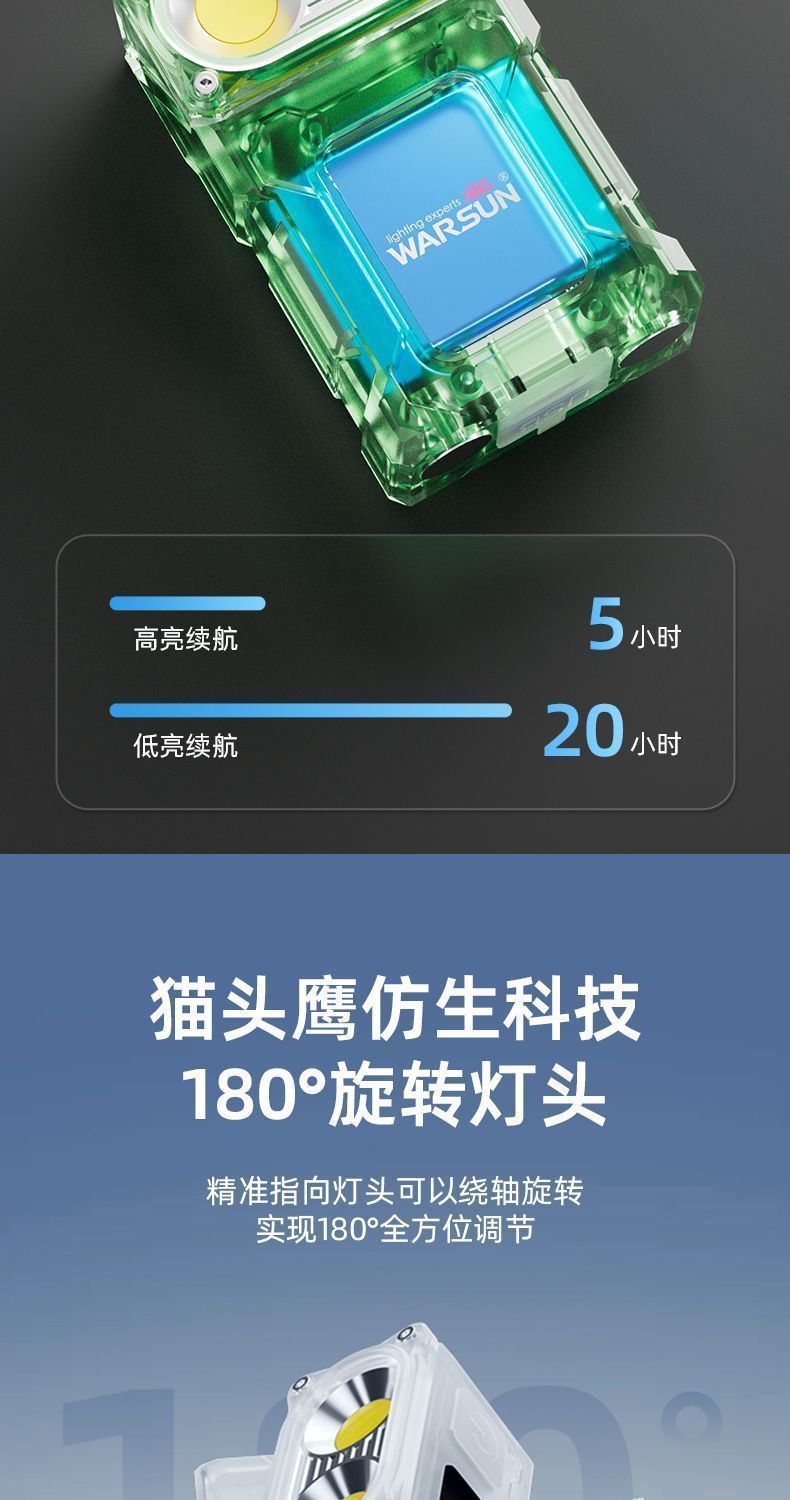 LED 미니 손전등, 강한 빛, 긴 배터리 수명, 클립 캡 램프, 야외 휴대용 다기능 야간 조명 cob 작업 램프