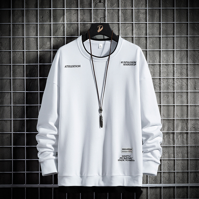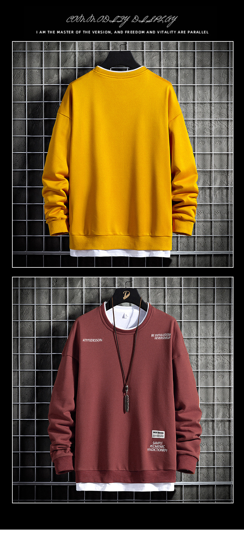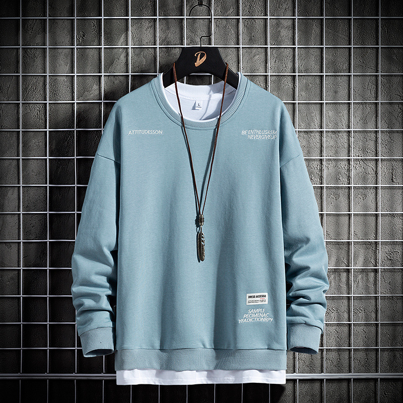 봄, 가을 남성용 무료 배송 라운드 넥 스웨트 셔츠 새로운 트렌디 긴팔 티셔츠 루즈하고 다재다능한 캐주얼하고 멋진 풀오버 한국어 버전스토어 가기