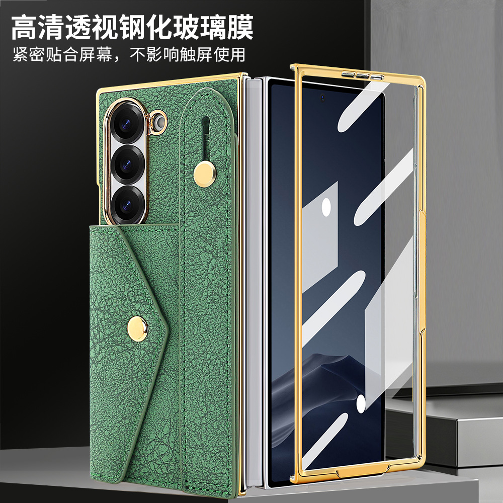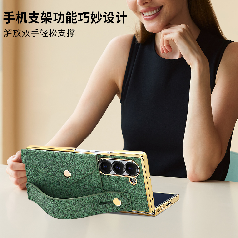 삼성 접이식 zFold6 휴대 전화 케이스 손목 스트랩 홀더 동전 카드 가방 Fold5 전기 도금 보호 가죽 케이스에 적합스토어 가기