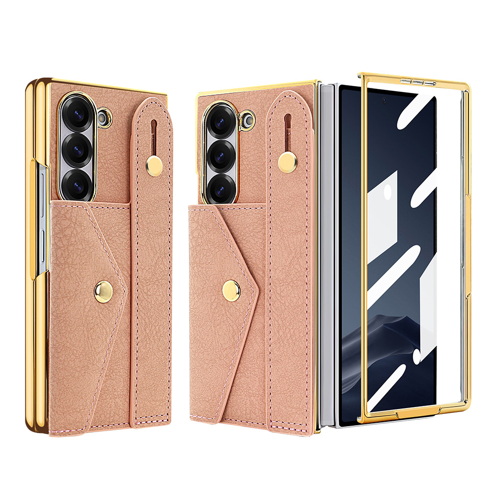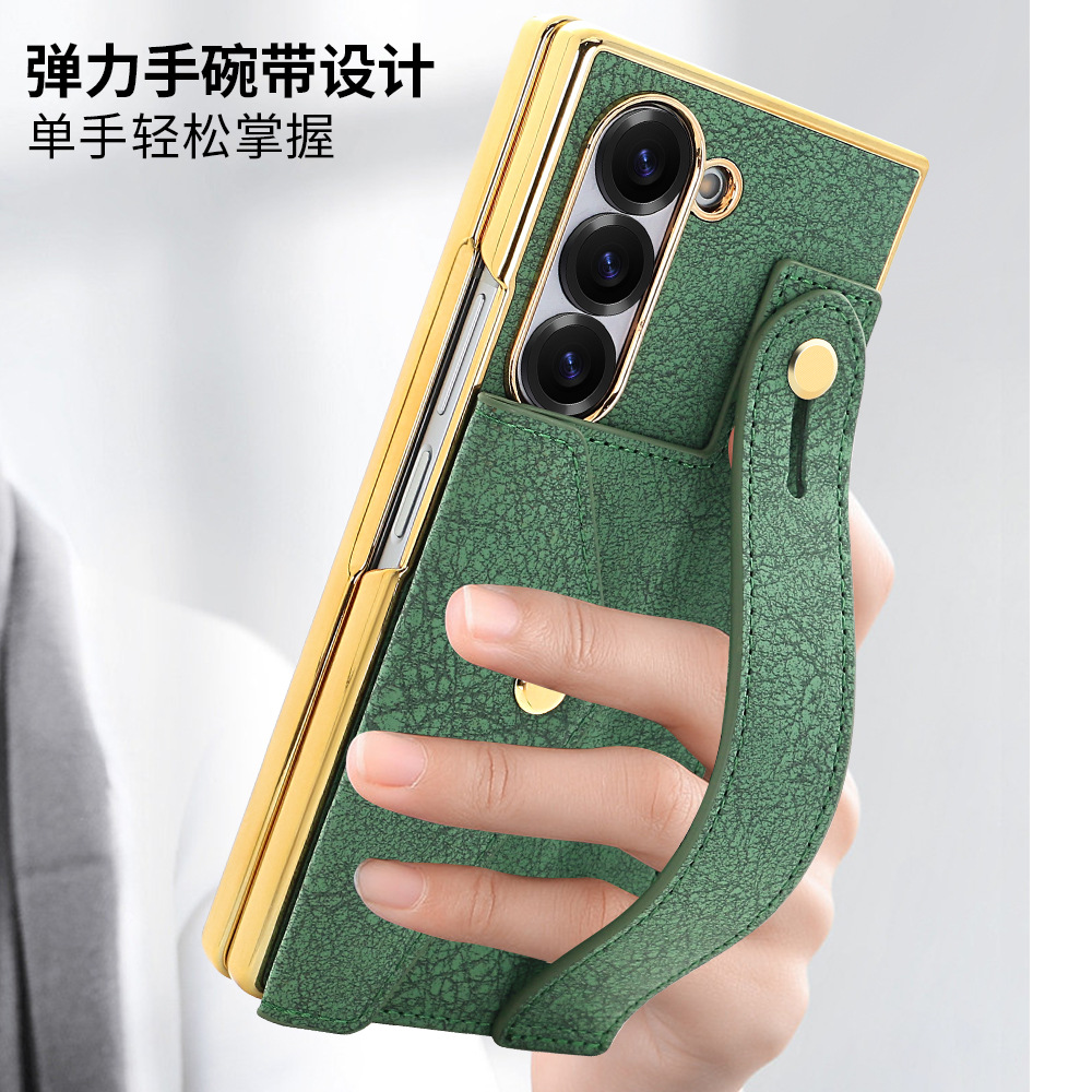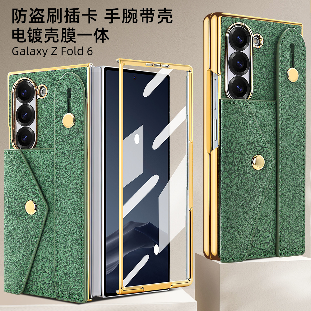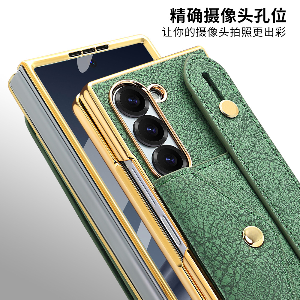 삼성 접이식 zFold6 휴대 전화 케이스 손목 스트랩 홀더 동전 카드 가방 Fold5 전기 도금 보호 가죽 케이스에 적합