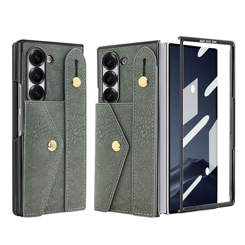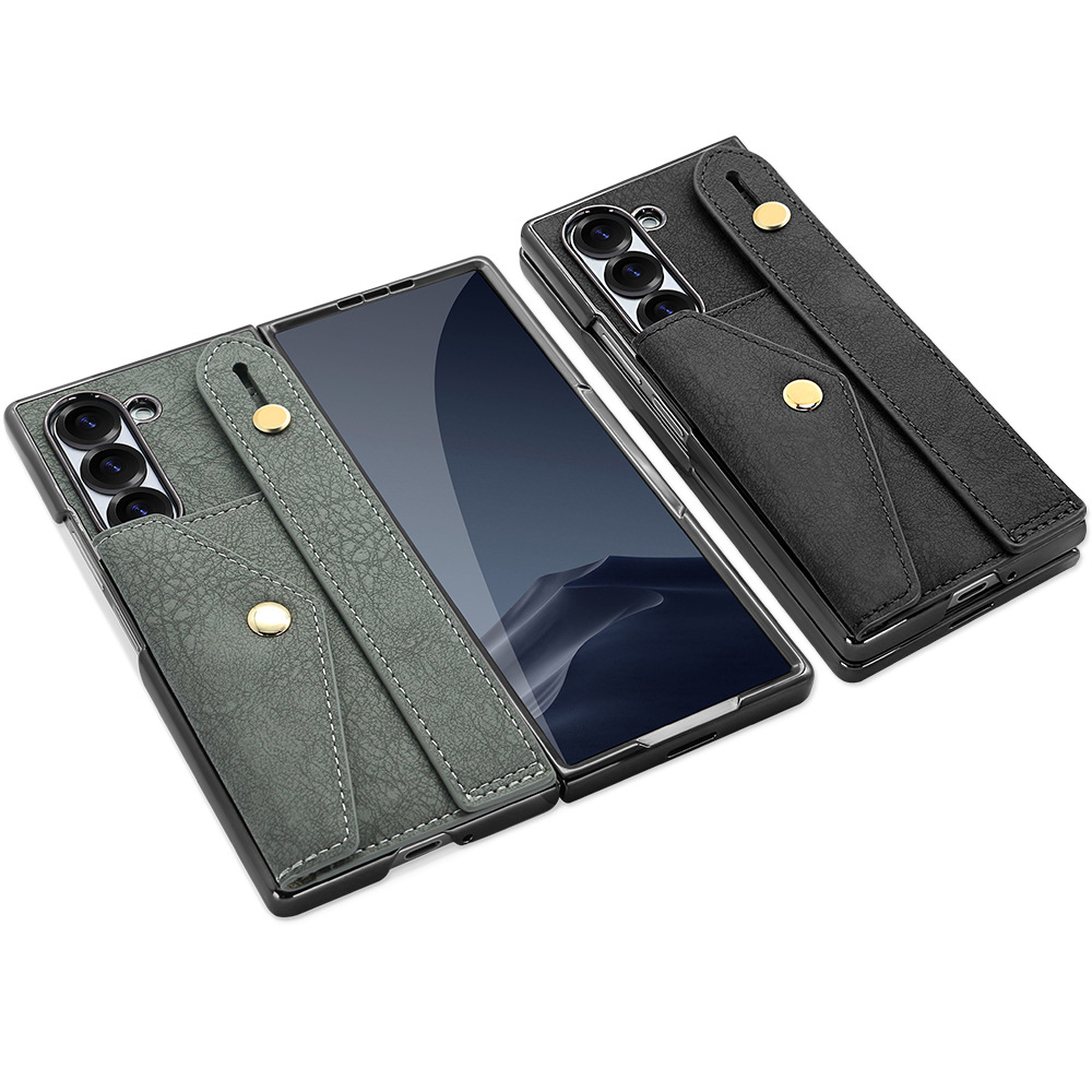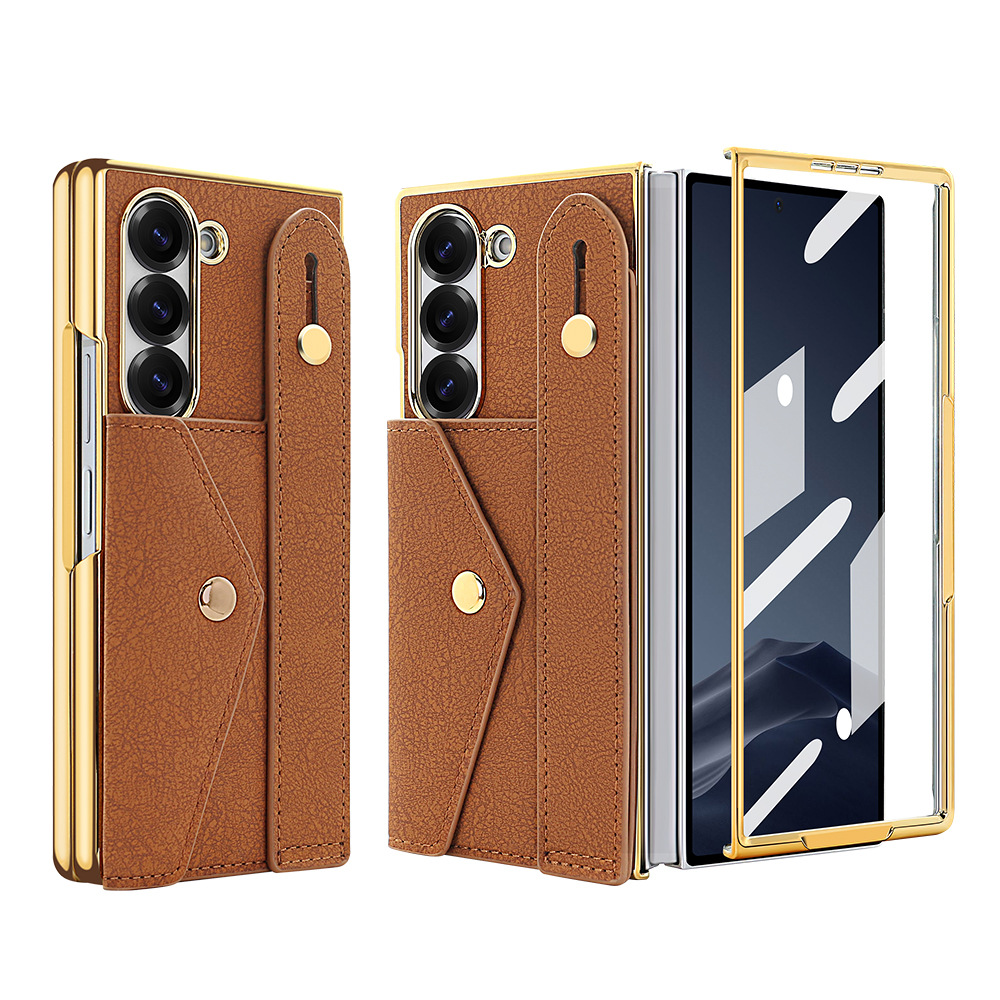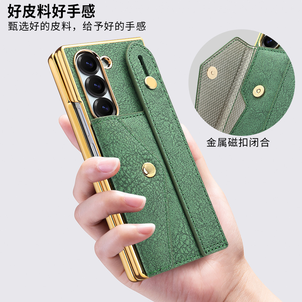 삼성 접이식 zFold6 휴대 전화 케이스 손목 스트랩 홀더 동전 카드 가방 Fold5 전기 도금 보호 가죽 케이스에 적합