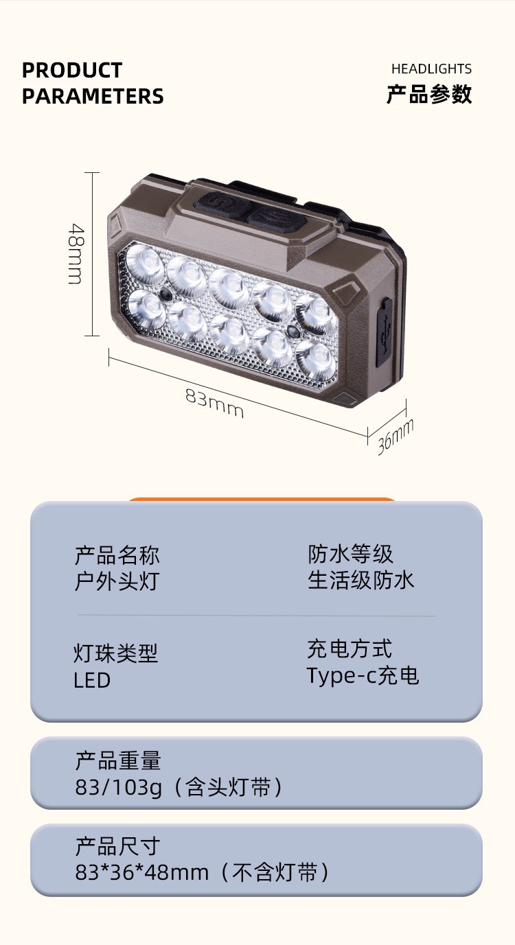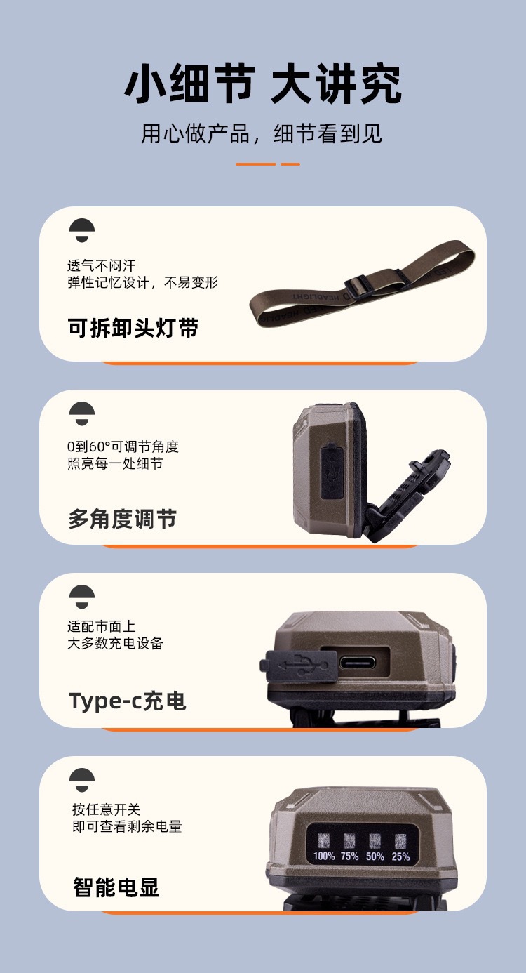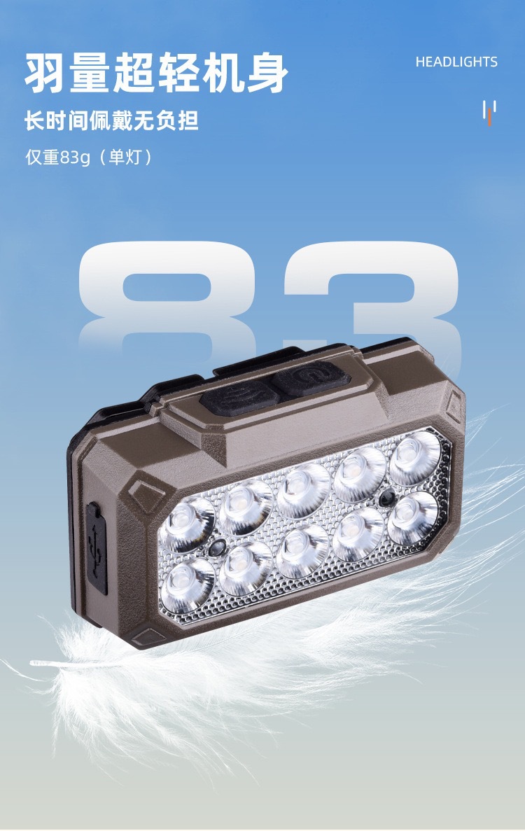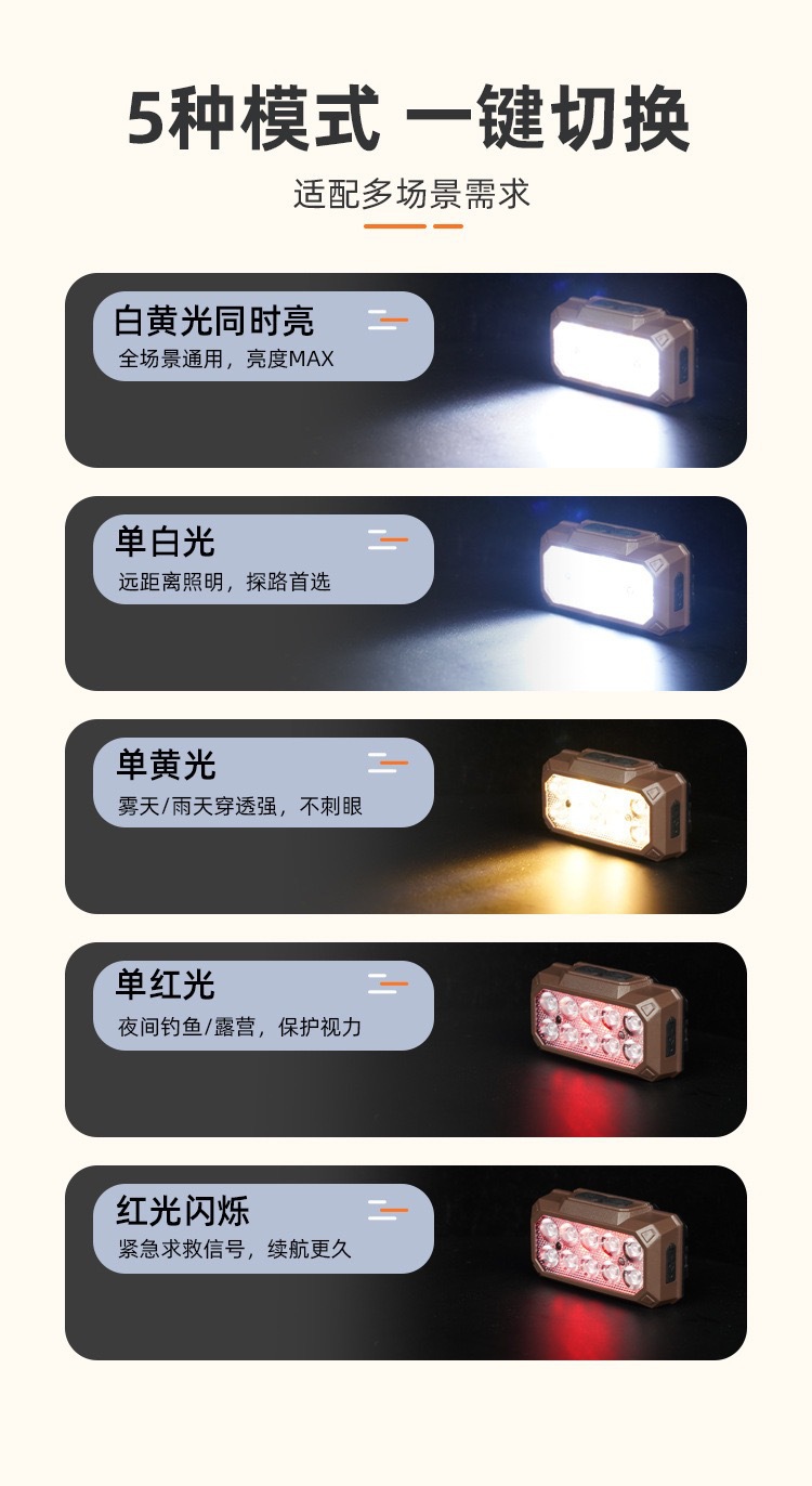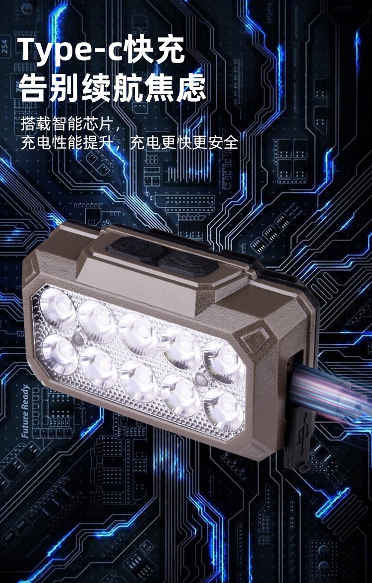 LED 밝은 전조등 슈퍼 밝은 유도 전조등 충전 밤 실행 경고 전조등 밤 낚시 모험 작업 조명