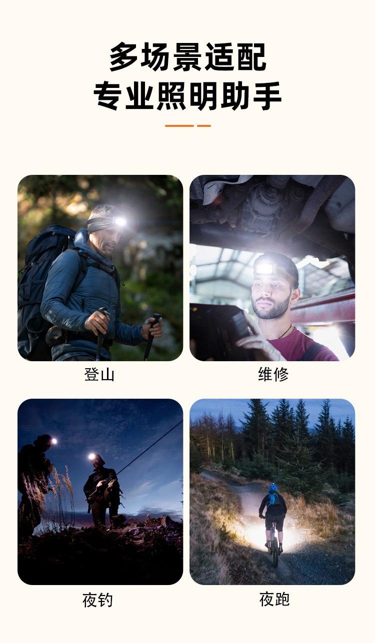 LED 밝은 전조등 슈퍼 밝은 유도 전조등 충전 밤 실행 경고 전조등 밤 낚시 모험 작업 조명스토어 가기