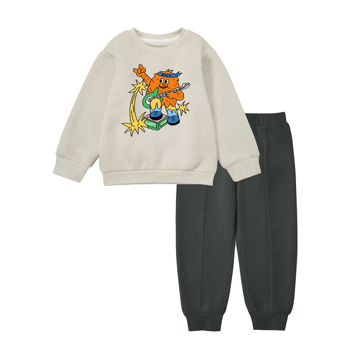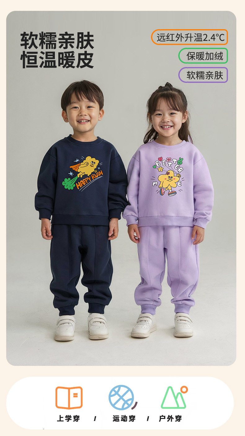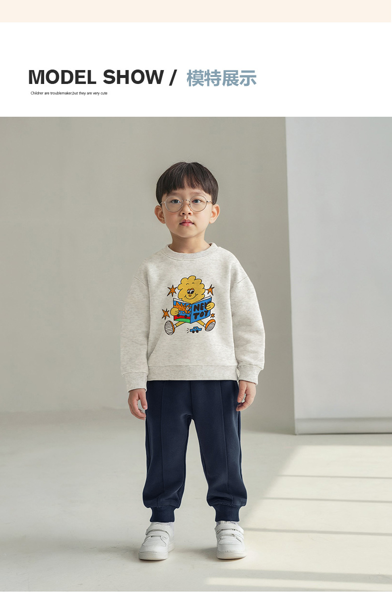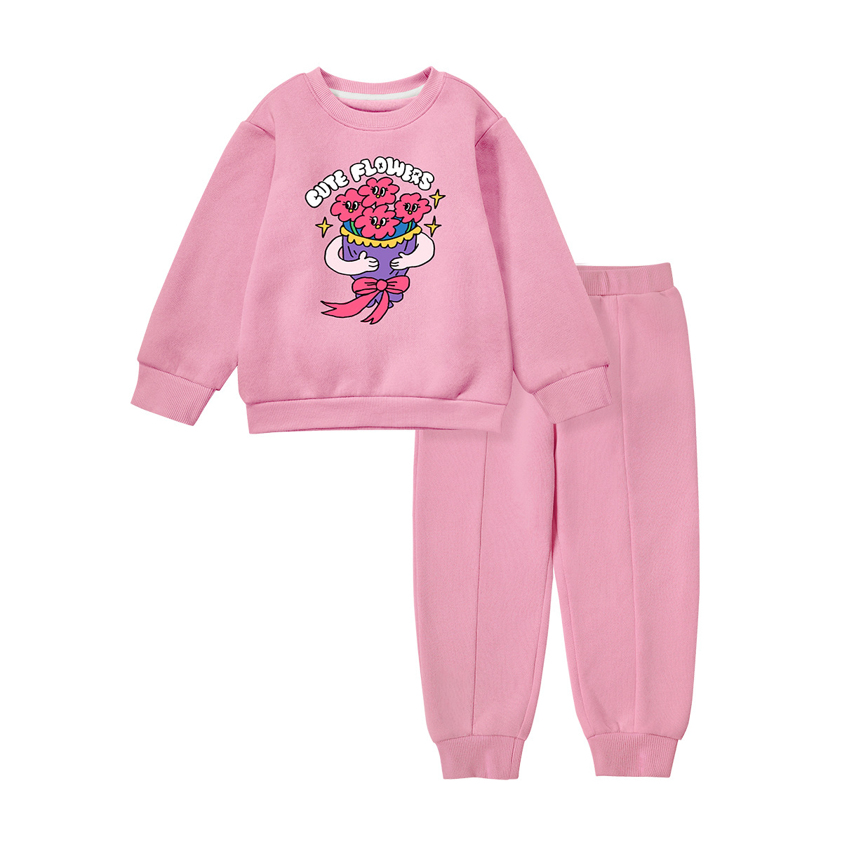 Minizone 어린이 운동복 정장 플러스 벨벳 양털 두꺼운 따뜻한 가을 겨울 라운드 넥 레깅스 스웨트 팬츠
