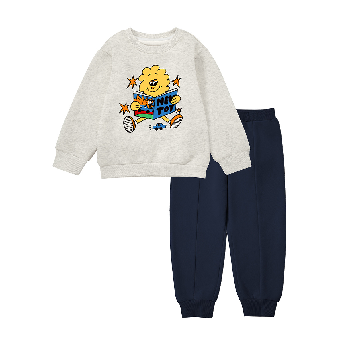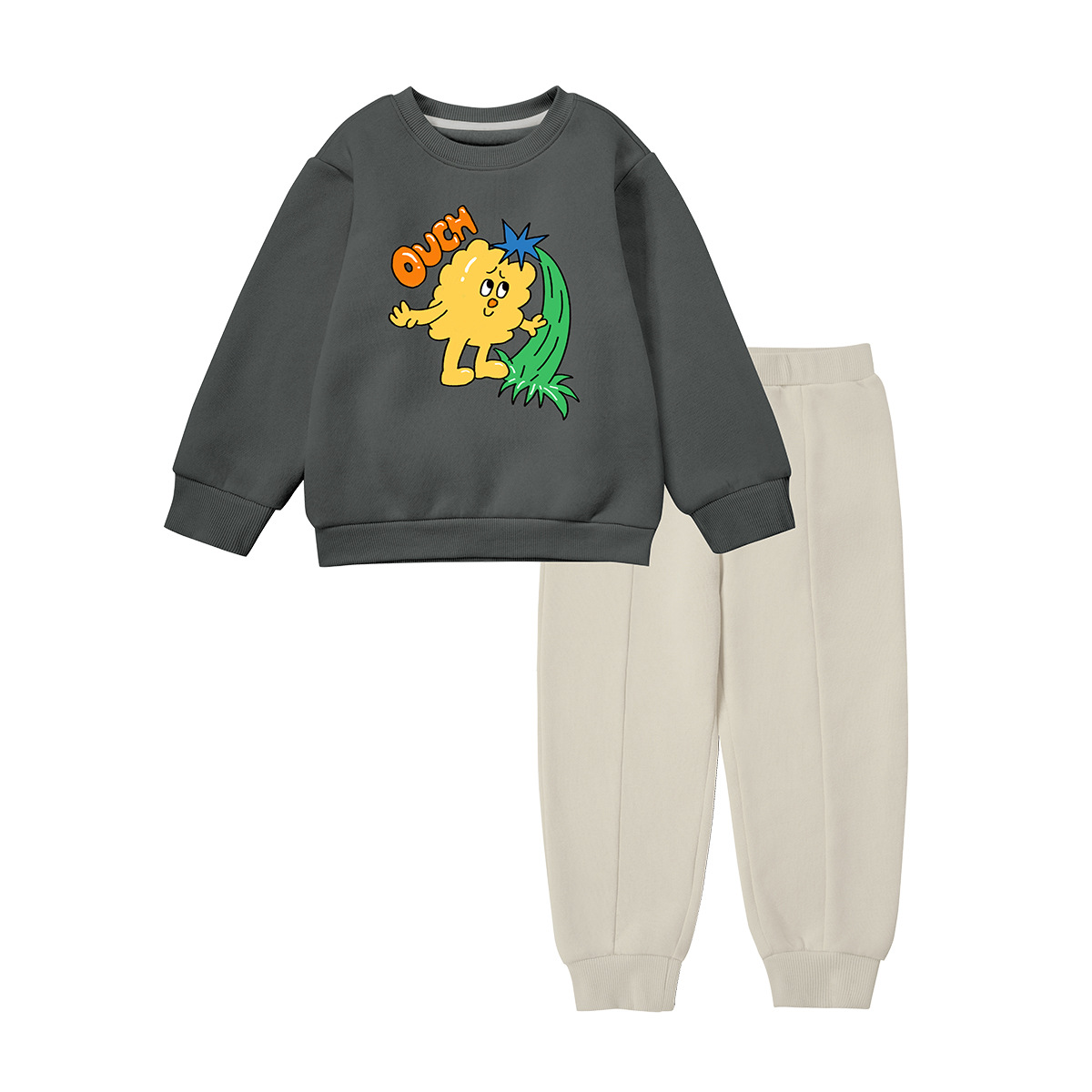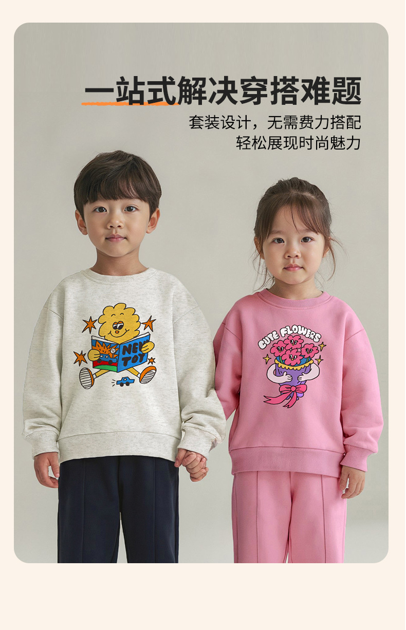Minizone 어린이 운동복 정장 플러스 벨벳 양털 두꺼운 따뜻한 가을 겨울 라운드 넥 레깅스 스웨트 팬츠