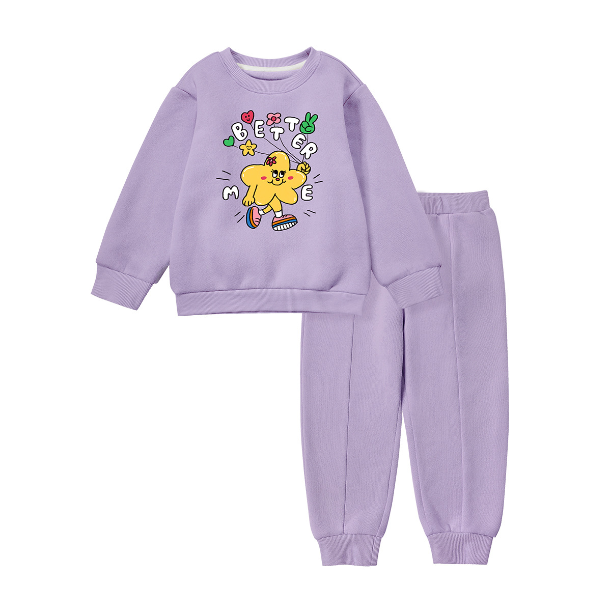 Minizone 어린이 운동복 정장 플러스 벨벳 양털 두꺼운 따뜻한 가을 겨울 라운드 넥 레깅스 스웨트 팬츠스토어 가기