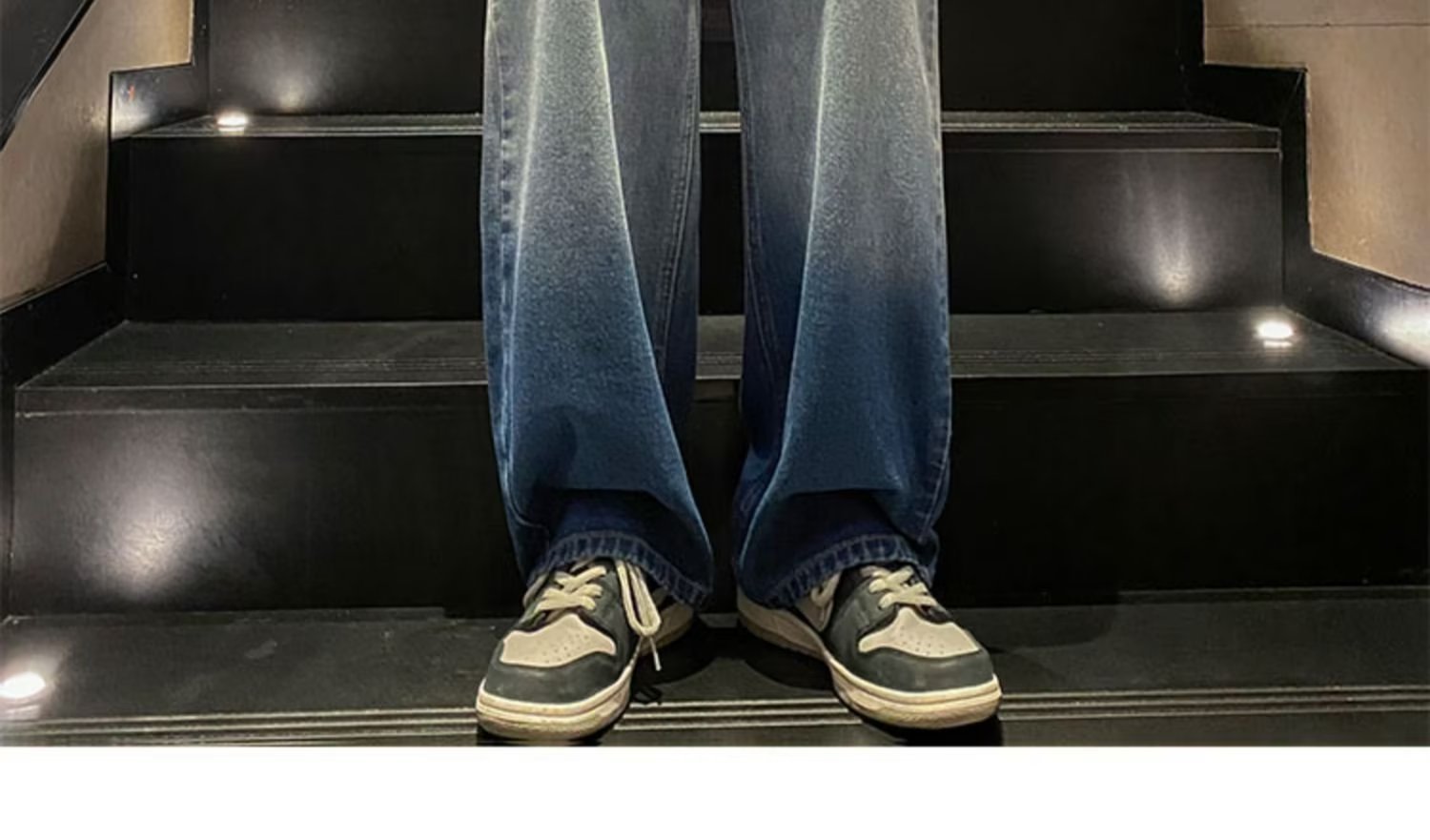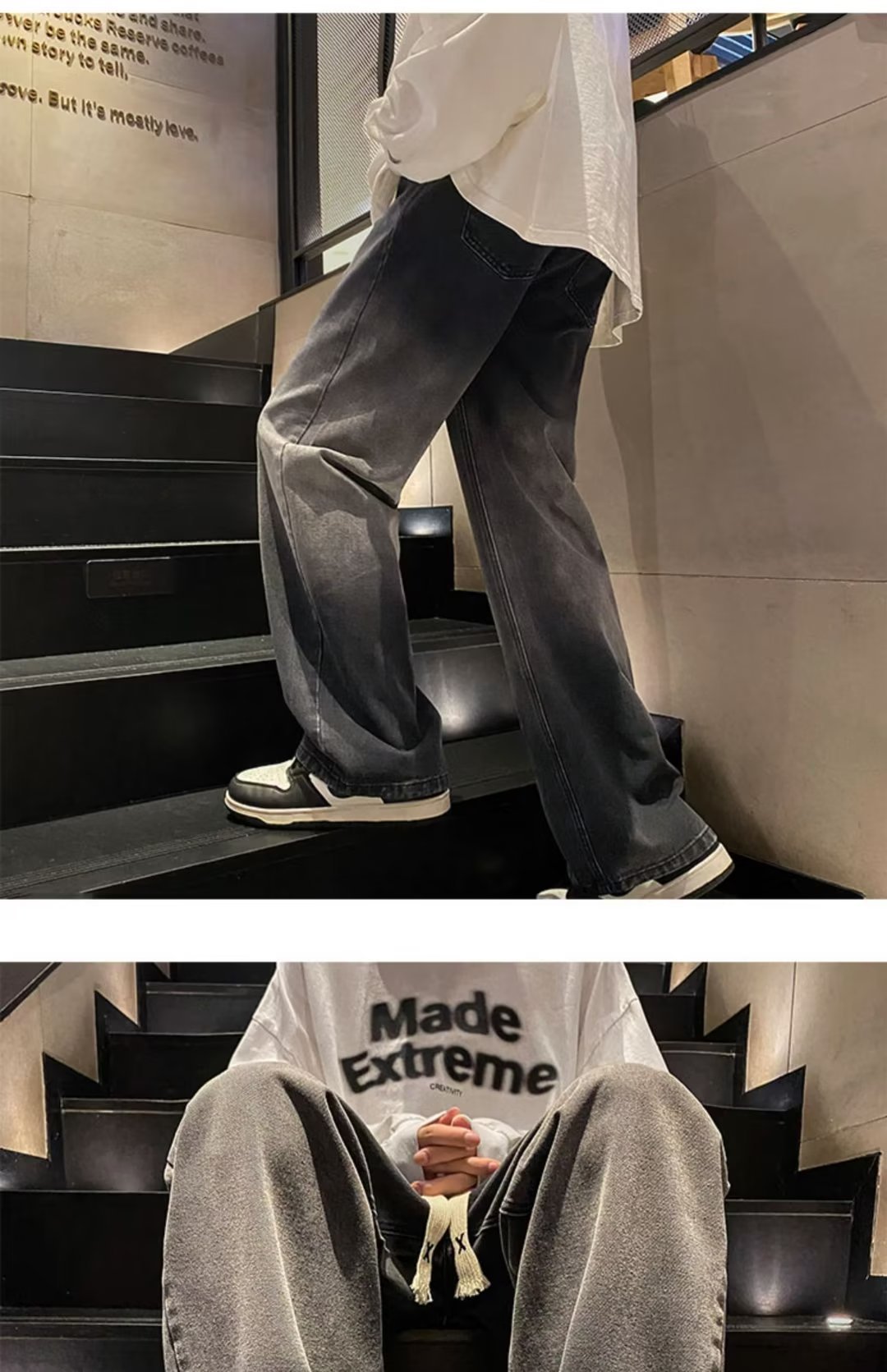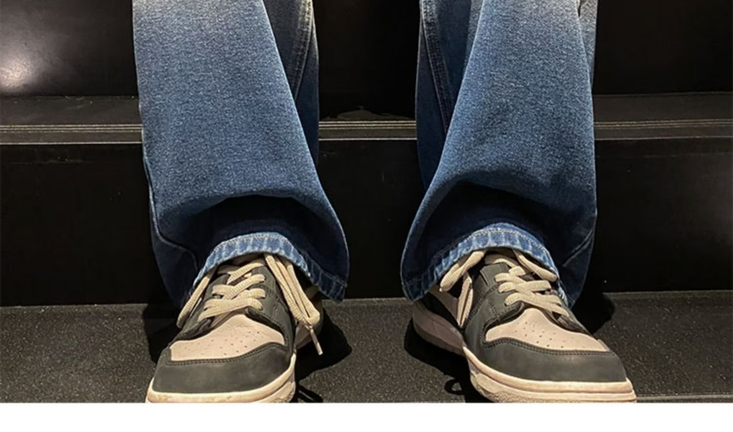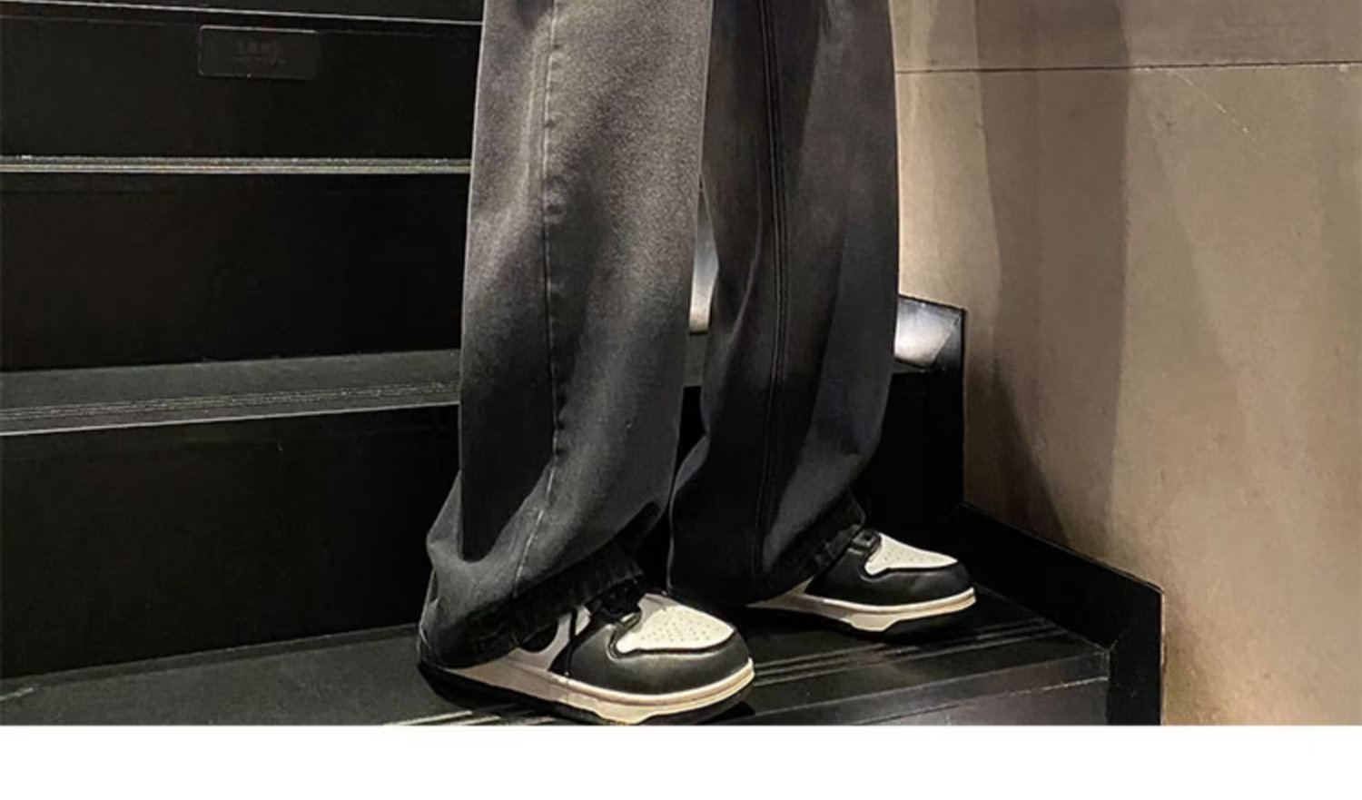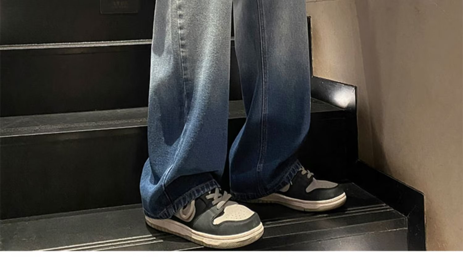 두꺼운 드로스트링 청바지 2024 봄, 가을 트렌디 아메리칸 루즈 스트레이트 와이드 팬츠 레트로 하이 스트리트 캐주얼 바지스토어 가기