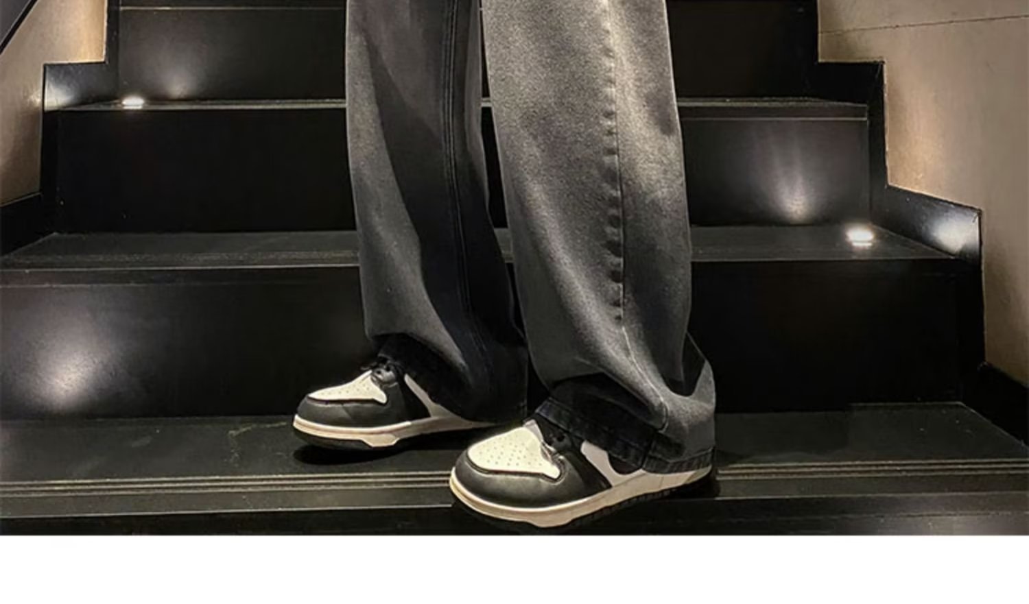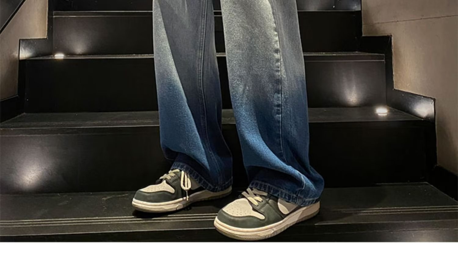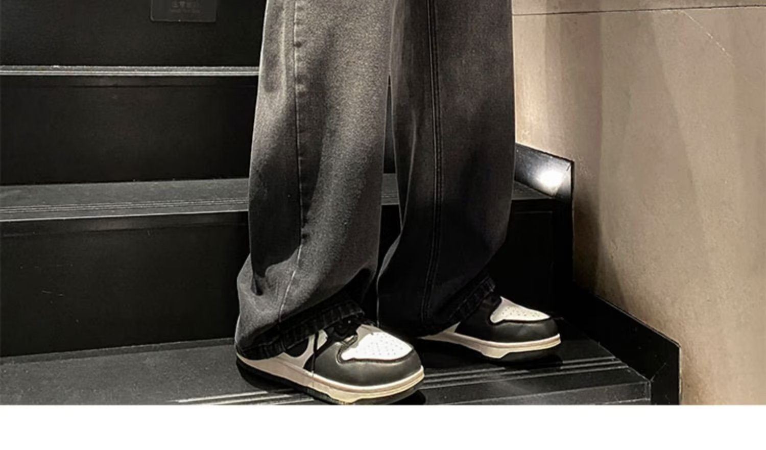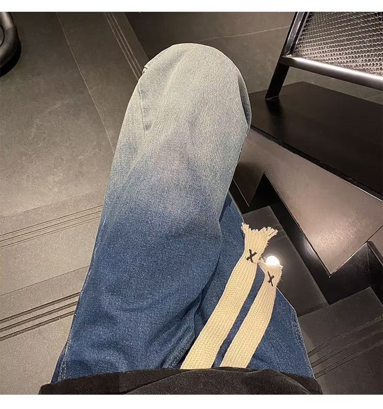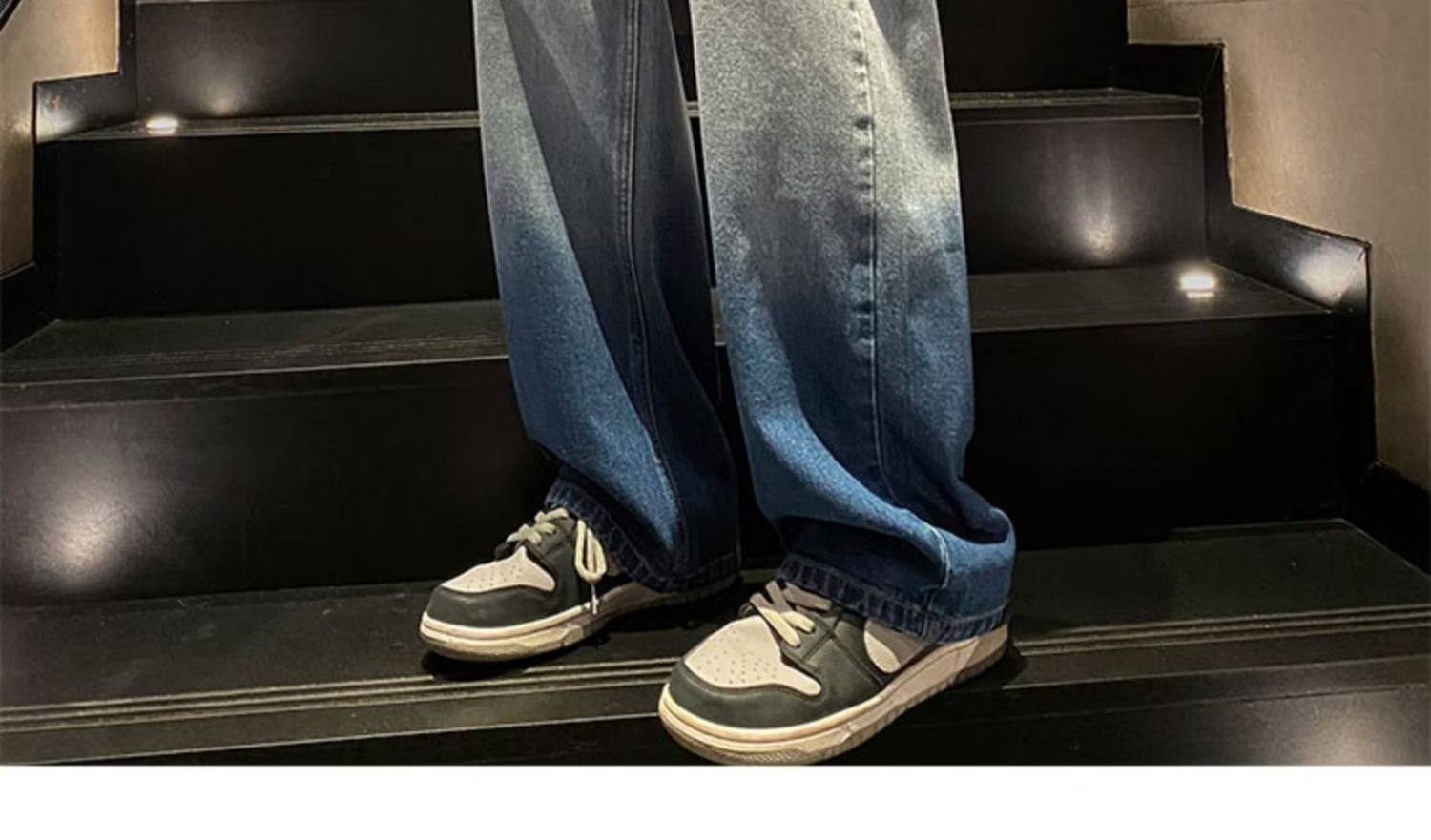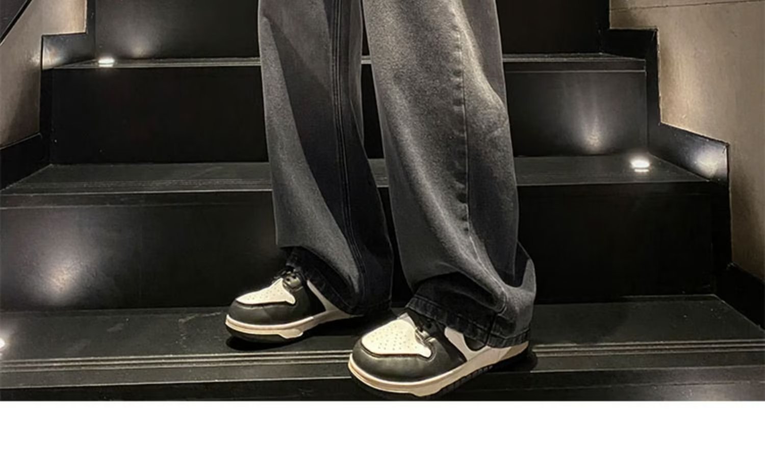두꺼운 드로스트링 청바지 2024 봄, 가을 트렌디 아메리칸 루즈 스트레이트 와이드 팬츠 레트로 하이 스트리트 캐주얼 바지스토어 가기