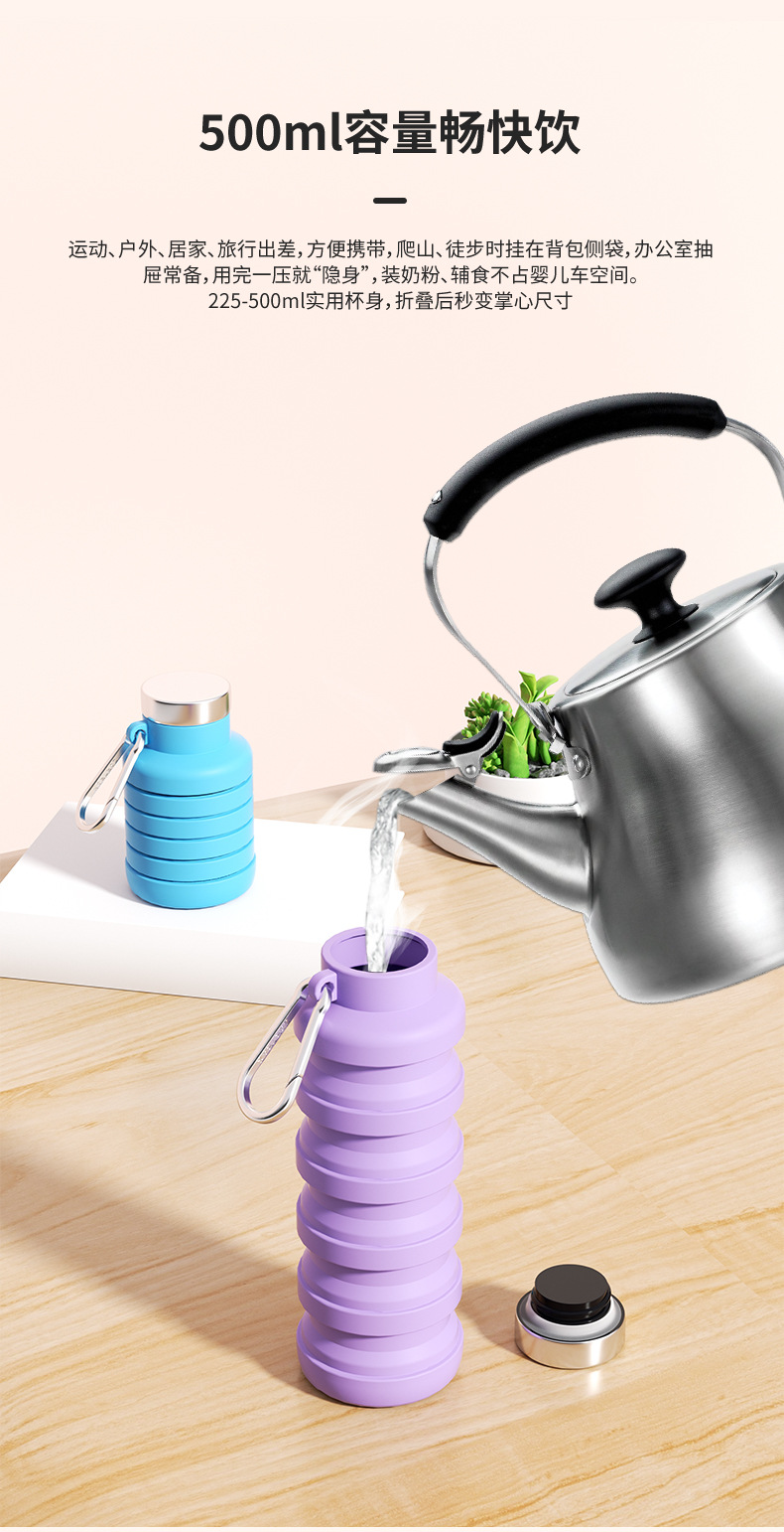 뜨거운 여름 실리콘 신축성있는 접이식 컵 휴대용 핸디 고온 저항하는 손 따뜻한 컵 야외 스포츠 물병 2025스토어 가기