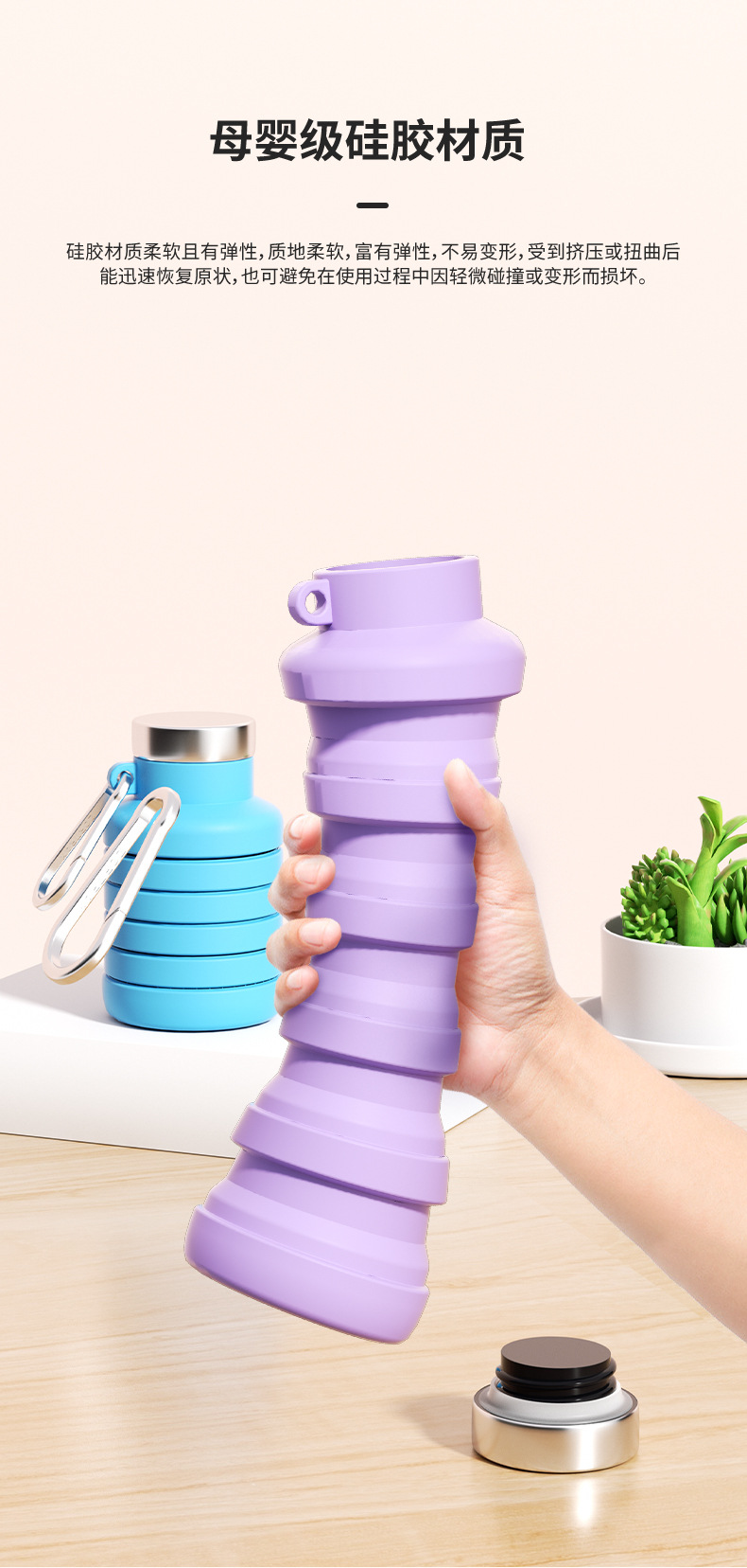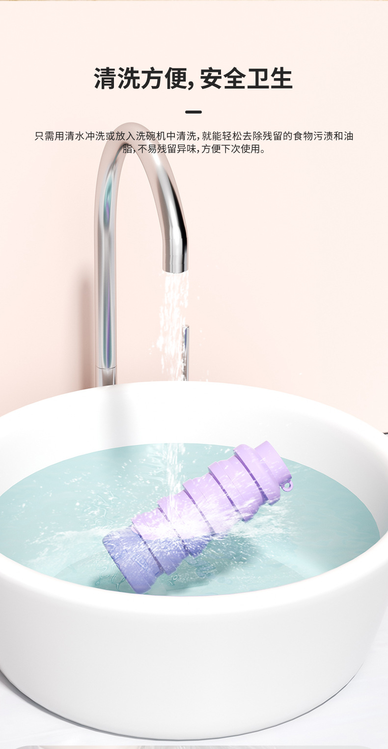 뜨거운 여름 실리콘 신축성있는 접이식 컵 휴대용 핸디 고온 저항하는 손 따뜻한 컵 야외 스포츠 물병 2025