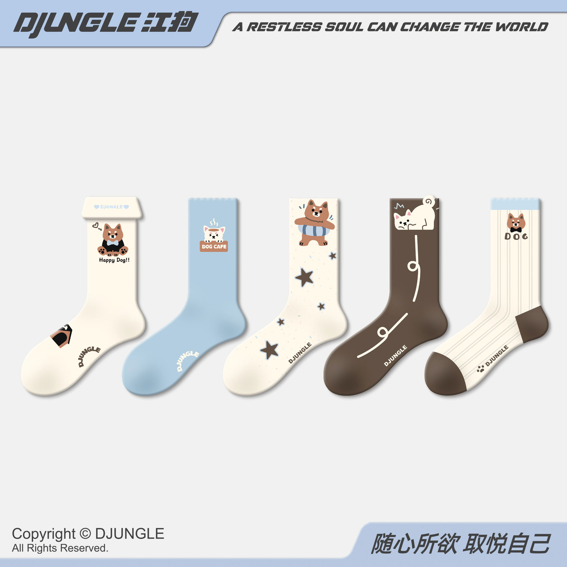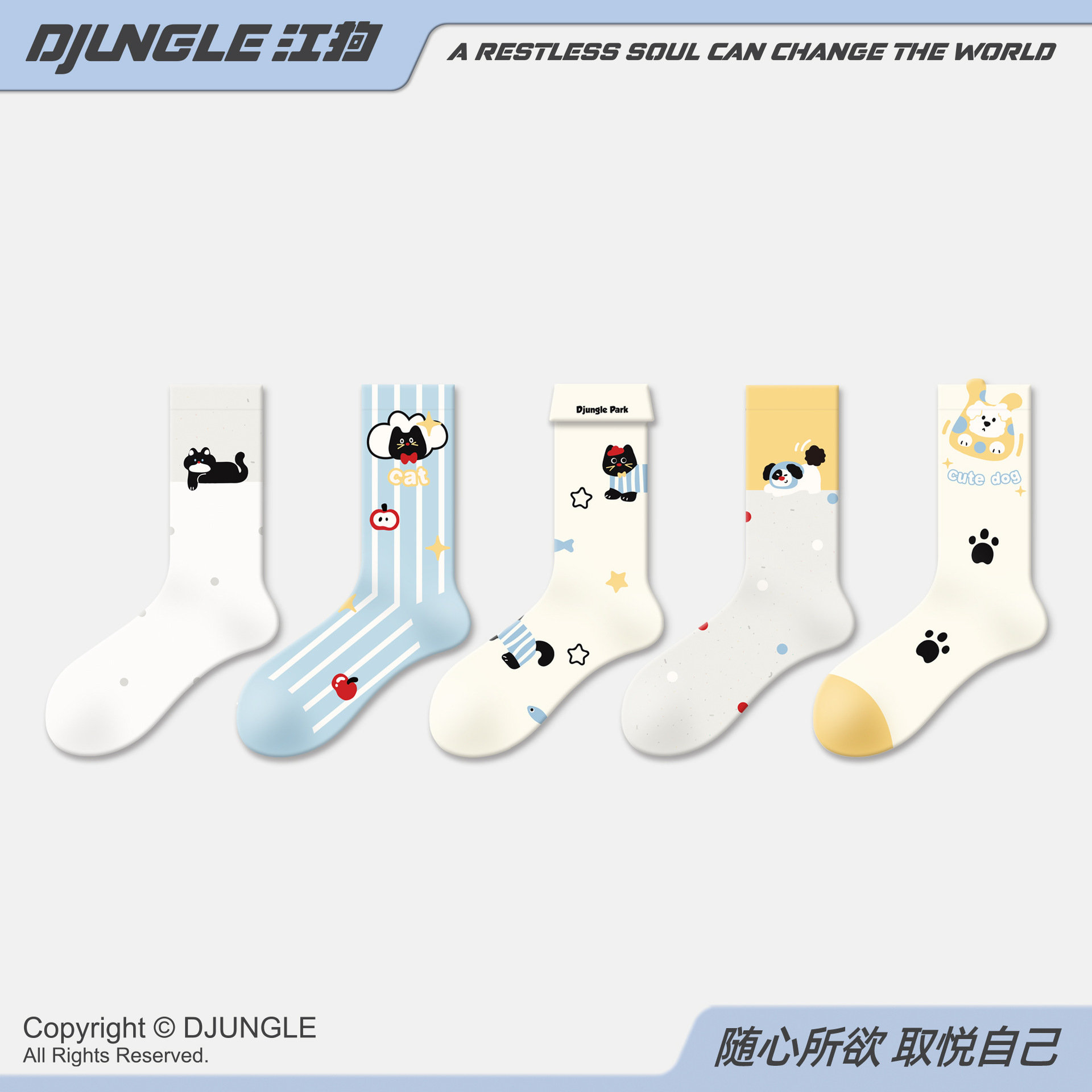 강아지 오리지널 양말 여성용 봄 가을 귀여운 고양이 일본식 만화 캐주얼 다용도 통기성 중목 양말 면 가을 겨울용