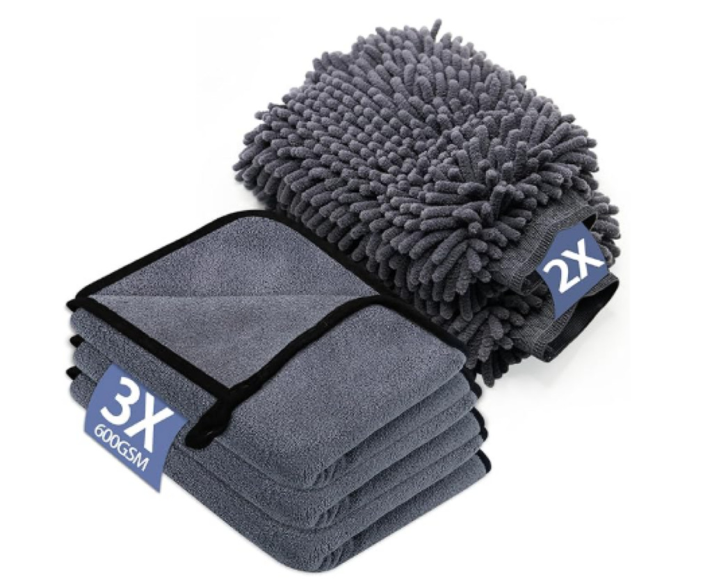 内含产品:复合毛巾3条+灰色雪尼尔擦车雪尼尔清洁巾2只