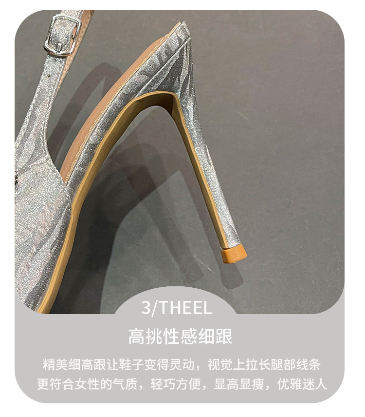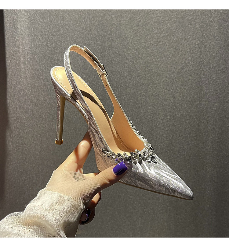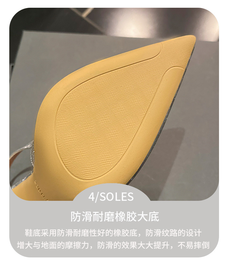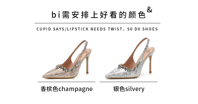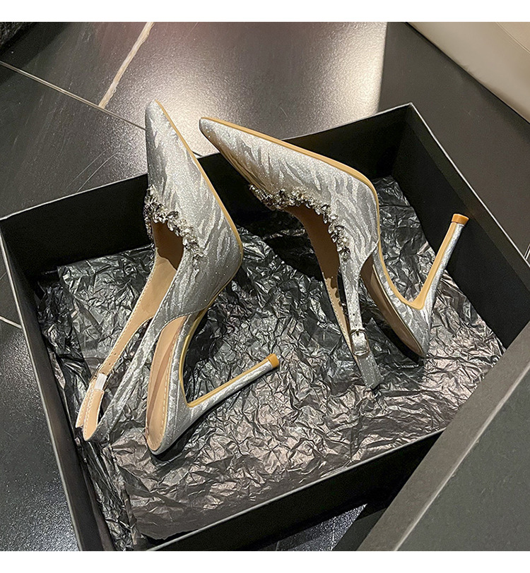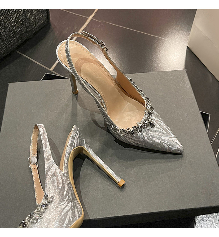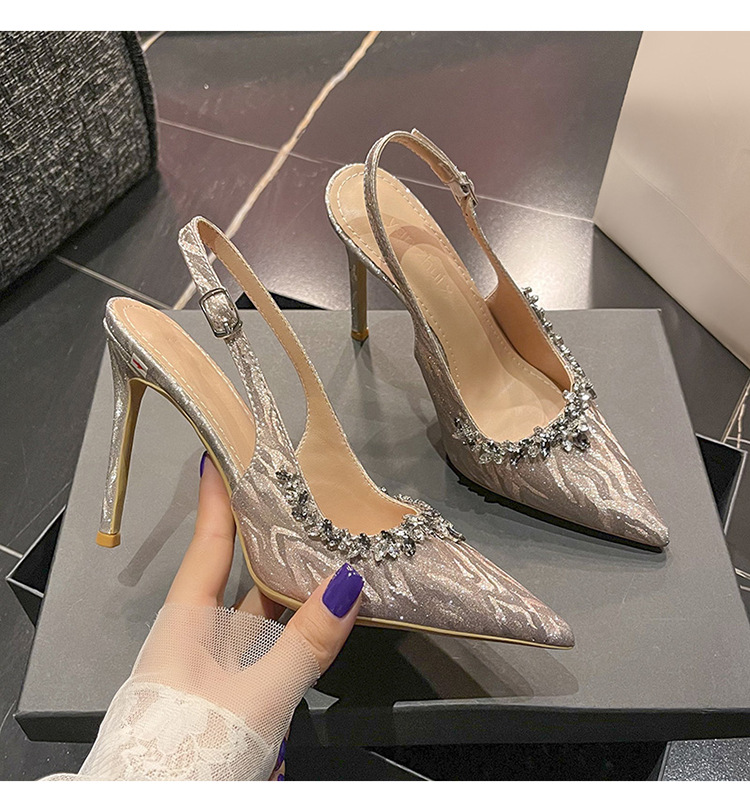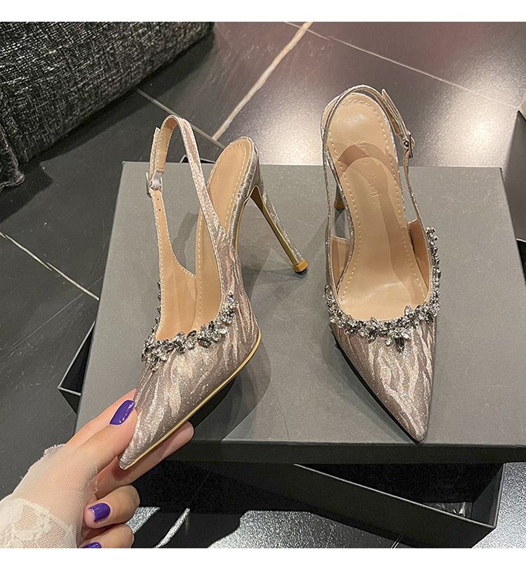 새로운 크리스탈 하이힐 포인팅 섹시한 로얄 자매 스타일 라인스톤 아름다운 우아한 한 단어 벨트 후면 빈 힐 샌들 여성용스토어 가기