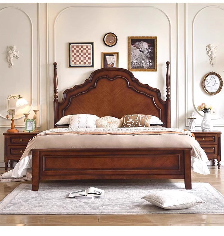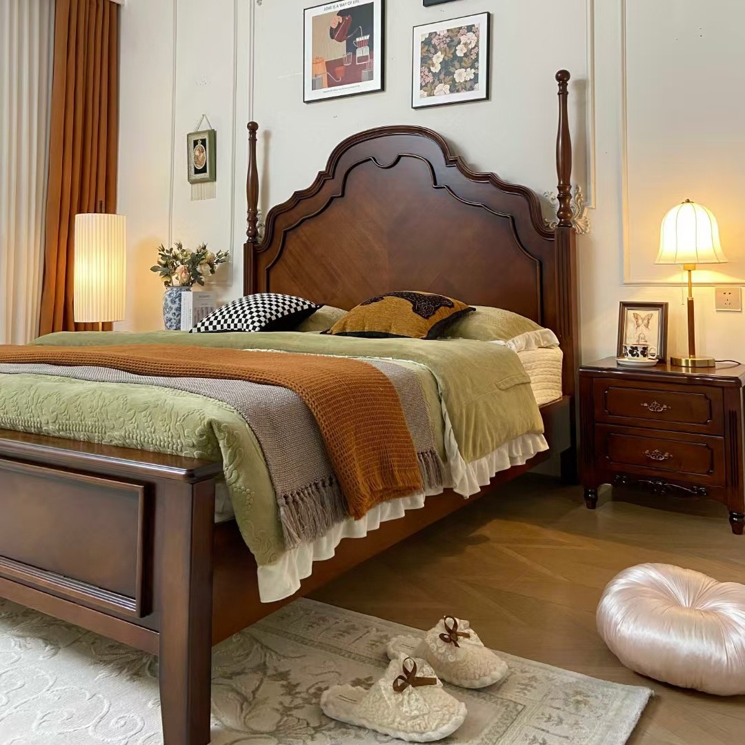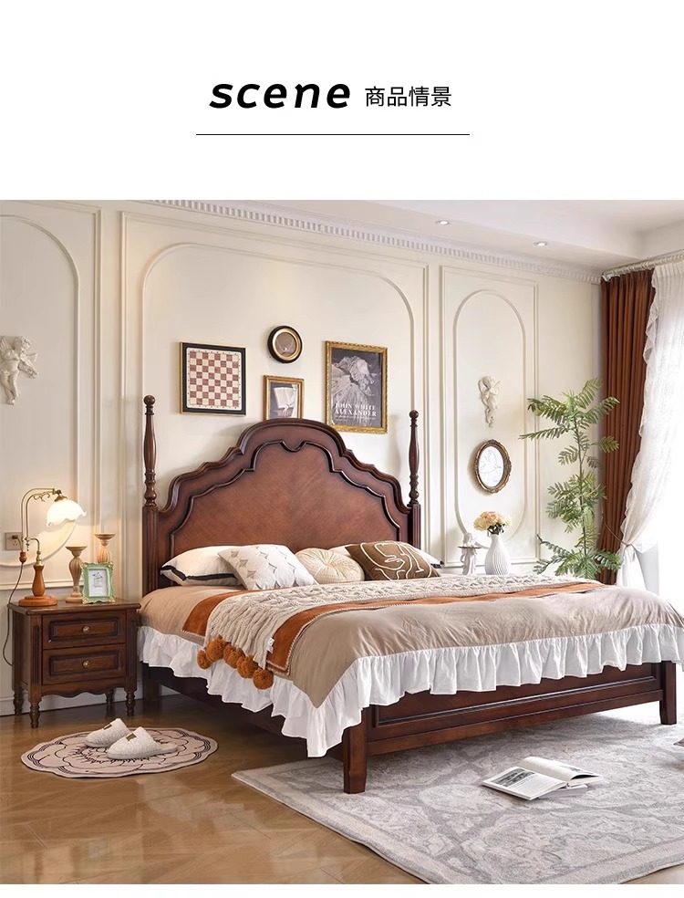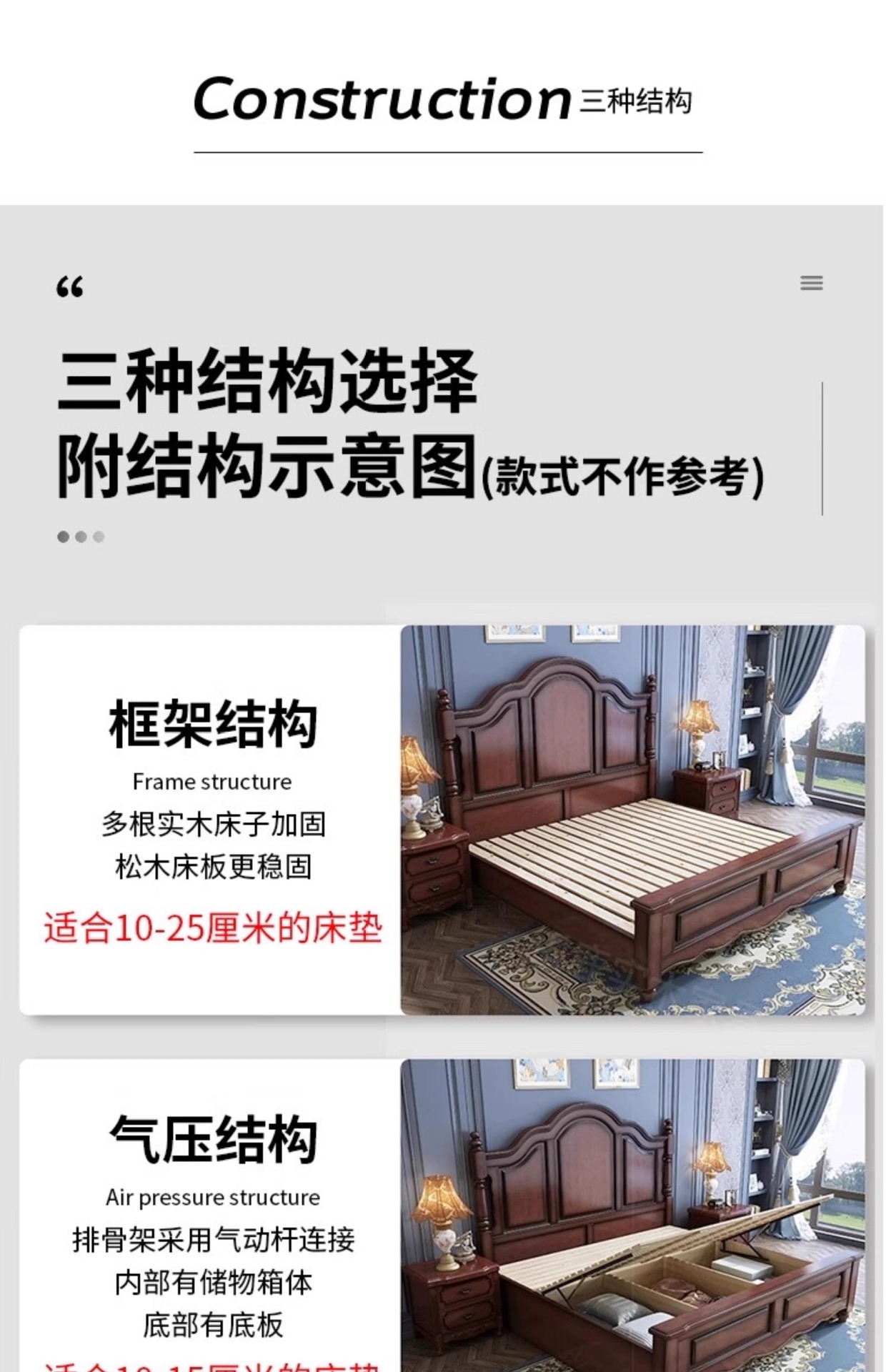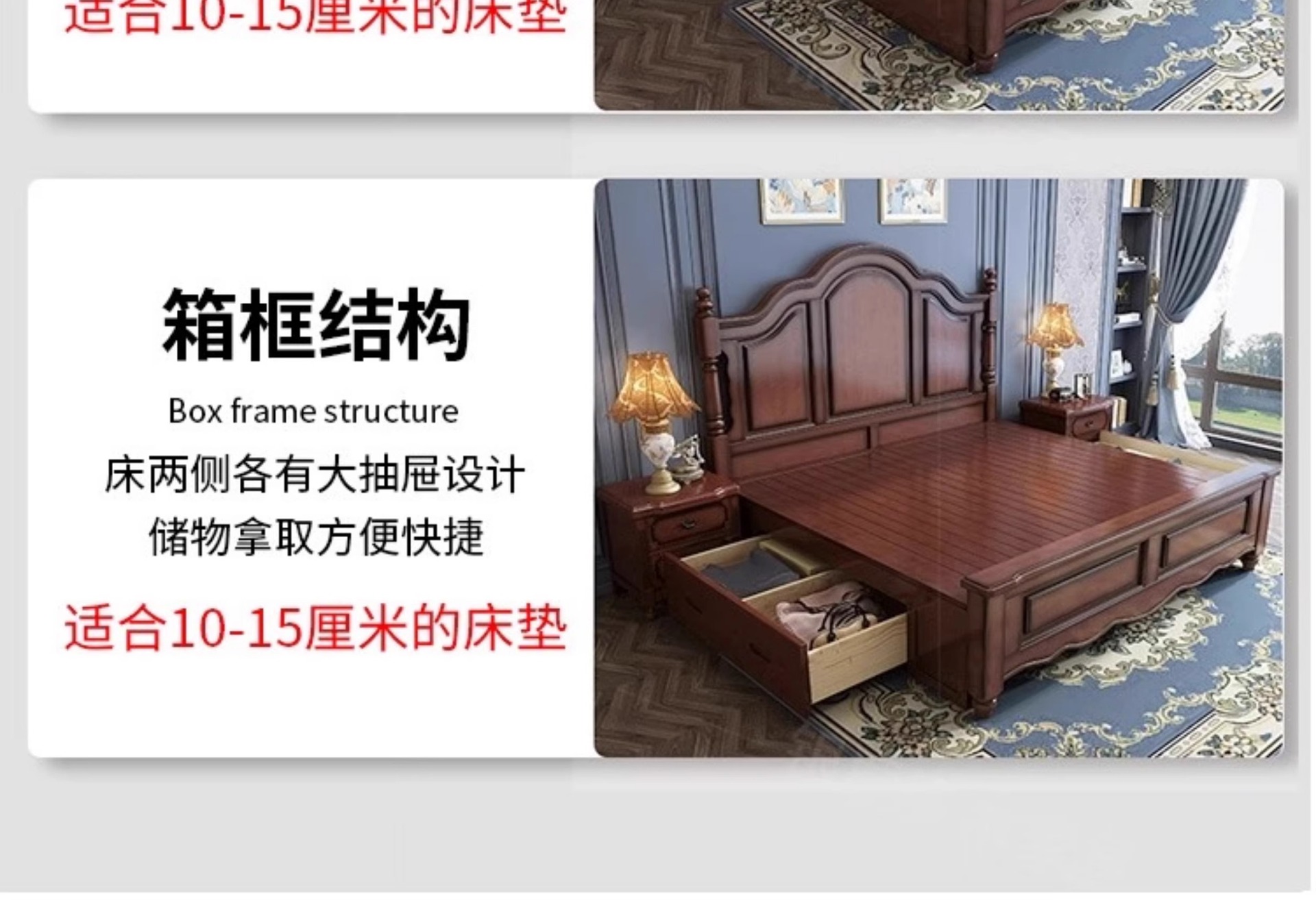 중세 스타일 단단한 나무 침대 색상 매칭 1.8m 더블 침대 미국 복고풍 마스터 침실 안나 침대 마스터 침실 하이 박스 수납 침대스토어 가기