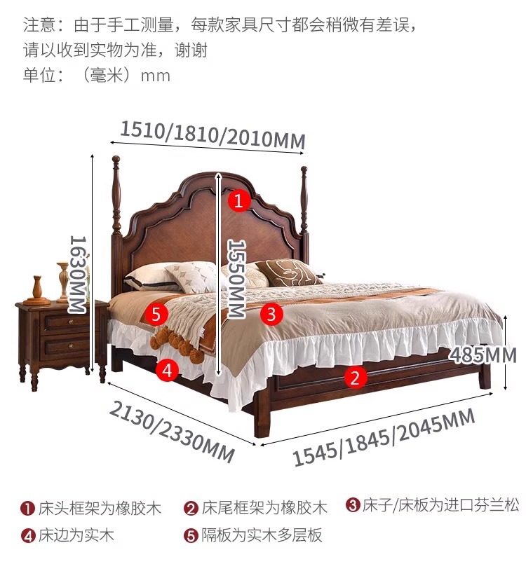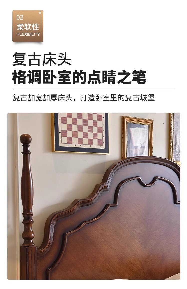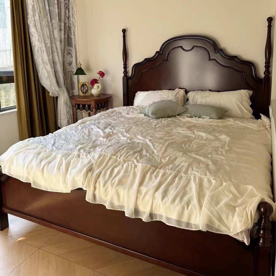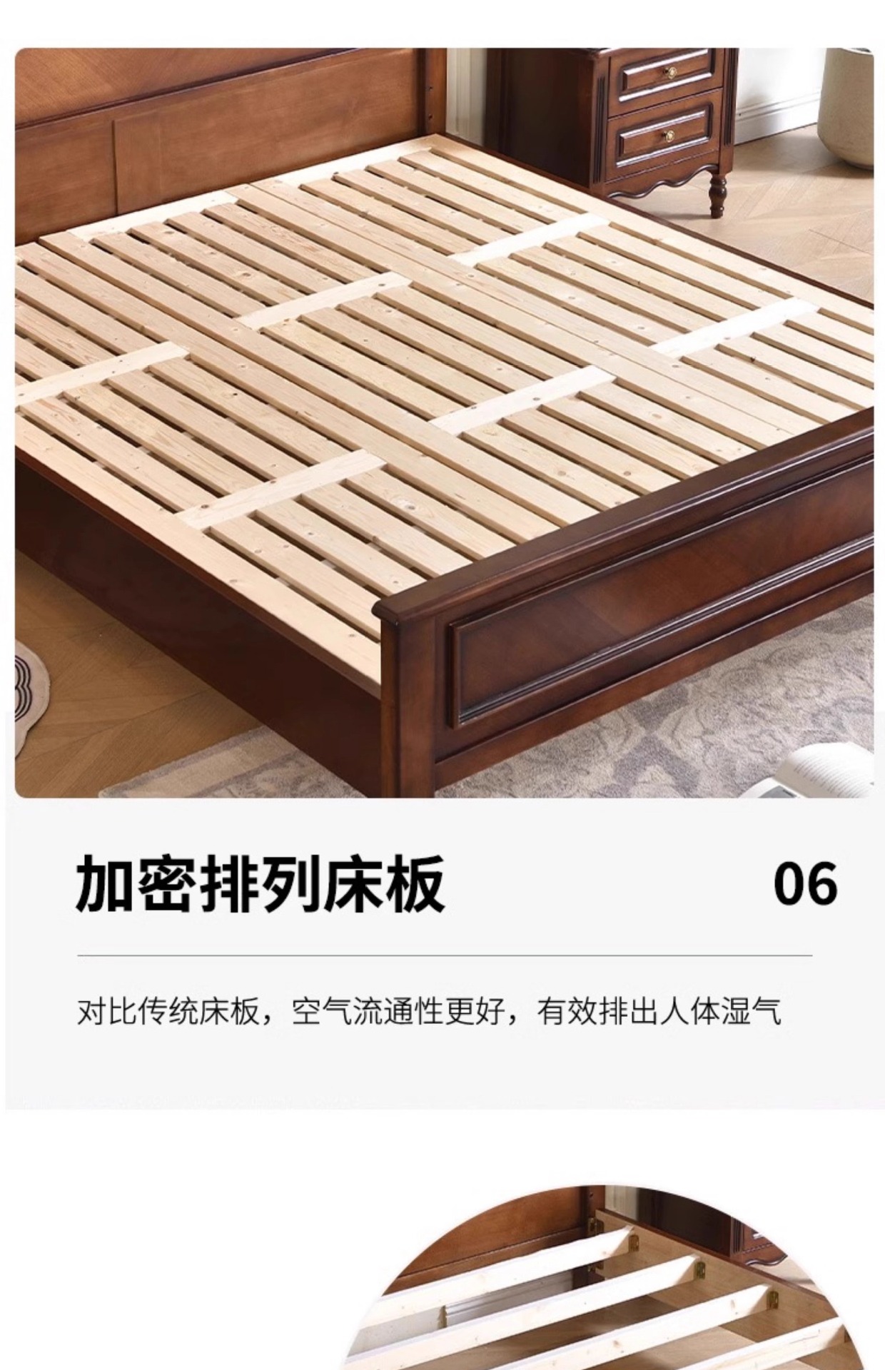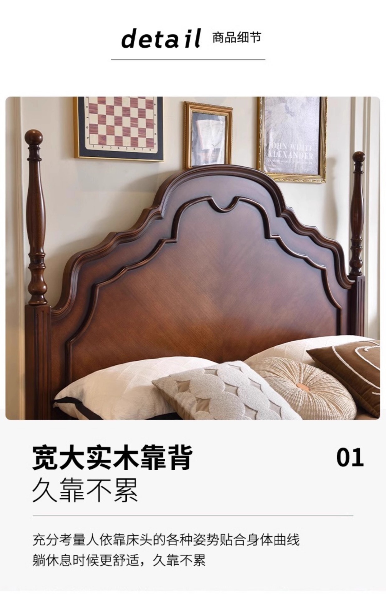 중세 스타일 단단한 나무 침대 색상 매칭 1.8m 더블 침대 미국 복고풍 마스터 침실 안나 침대 마스터 침실 하이 박스 수납 침대스토어 가기