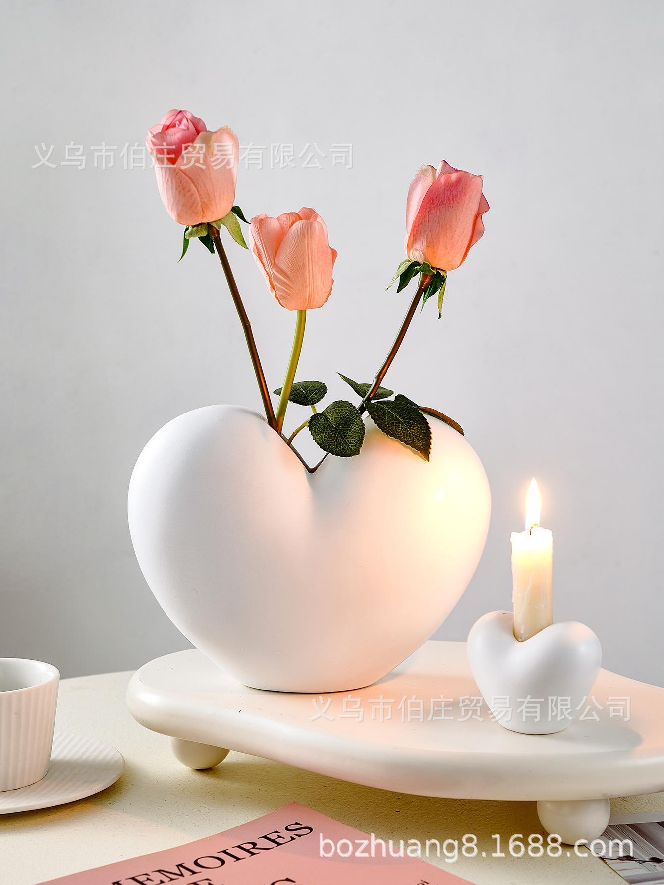 현대 미니멀리스트 사랑 모양의 데스크탑 장식 꽃병 수지 소재 홈 장식 꽃병 꽃 말린 꽃꽂이
