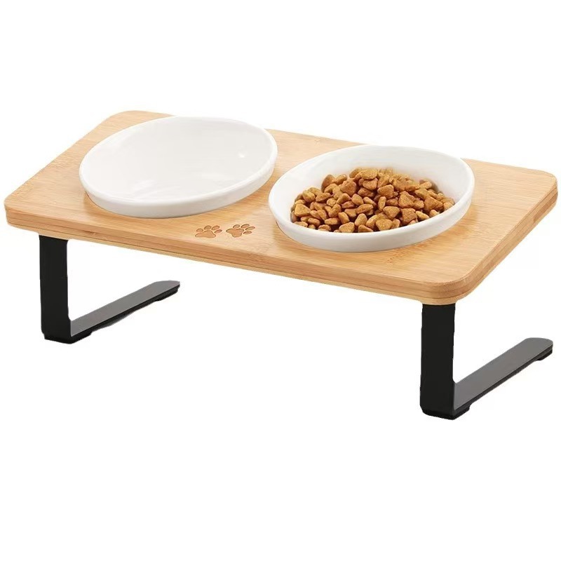 고양이 그릇 랙 나무 15도 기울어진 애완 동물 더블 그릇 먹이 랙 철과 나무 결합 개 식탁 넘어짐 방지 식기 랙스토어 가기