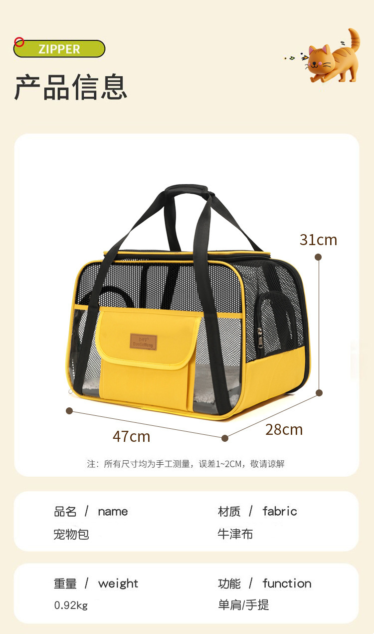 고양이 가방 대용량 휴대용 애완 동물 가방 도매 대외 무역 새로운 통기성 메쉬 휴대용 어깨 개 배낭