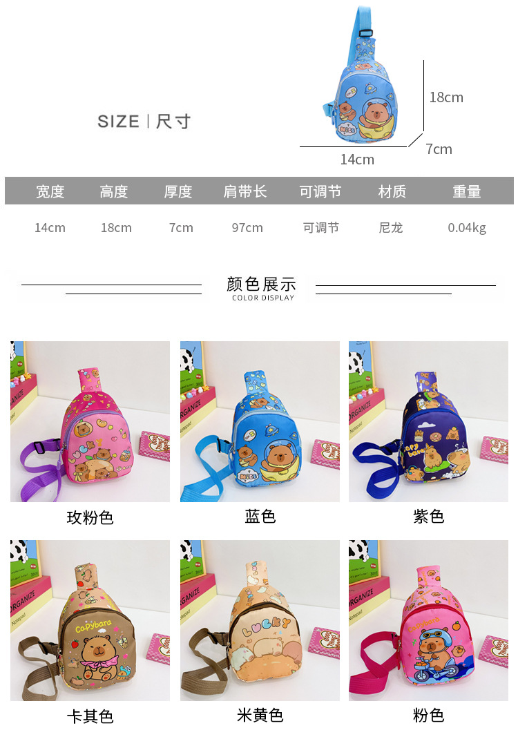 어린이 가슴 가방 만화 애니메이션 카피바라 인쇄 나들이 캐주얼 다목적 소녀 동전 액세서리 가방 소년 크로스 바디 백