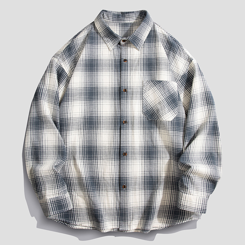 무료 배송 셔츠 남성용 격자 무늬 봄 겉옷 패션 트렌드 느슨한 긴팔 일본 셔츠 캐주얼 커플 같은 스타일스토어 가기