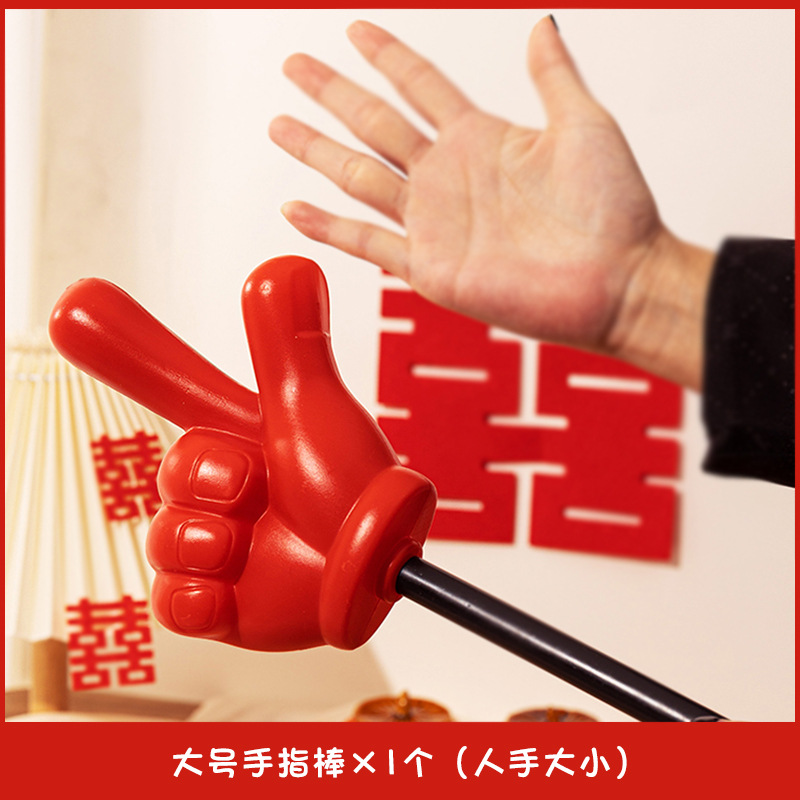 큰 손가락은 동쪽을 가리키고 서쪽을 바라보고 있습니다. 결혼식 게임 소품. 빨간 손가락 막대. 큰 엄지 손가락. 신랑 들러리를 속입니다.