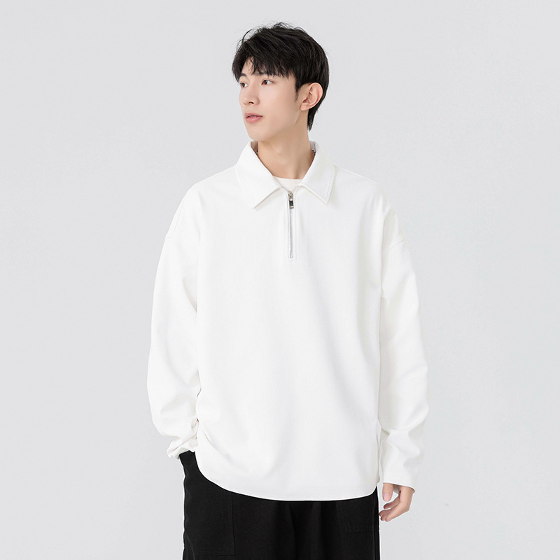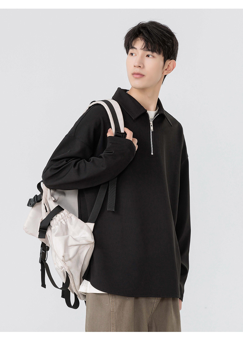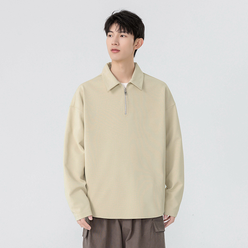 봄과 가을 남성용 무료 배송 다용도 스웨트 셔츠 새로운 느슨한 일본 복고풍 스타일 솔리드 컬러 하프 지퍼 캐주얼 긴 소매스토어 가기