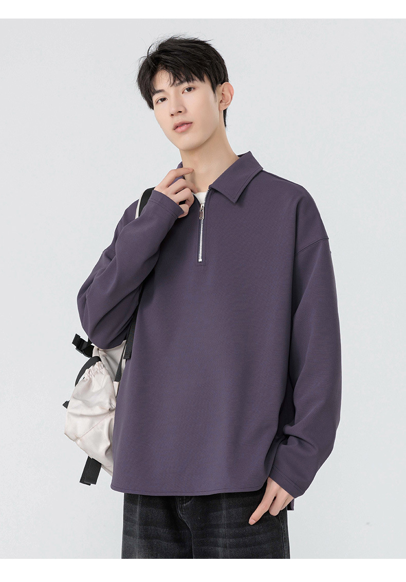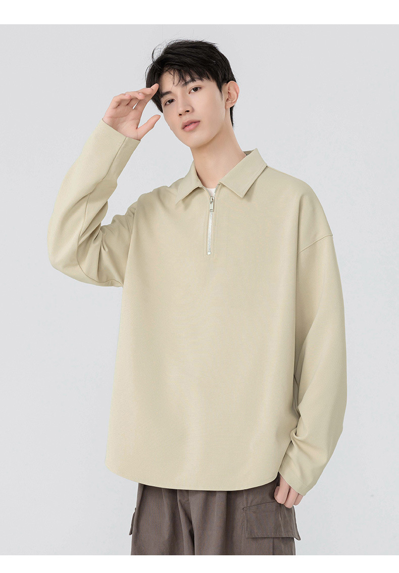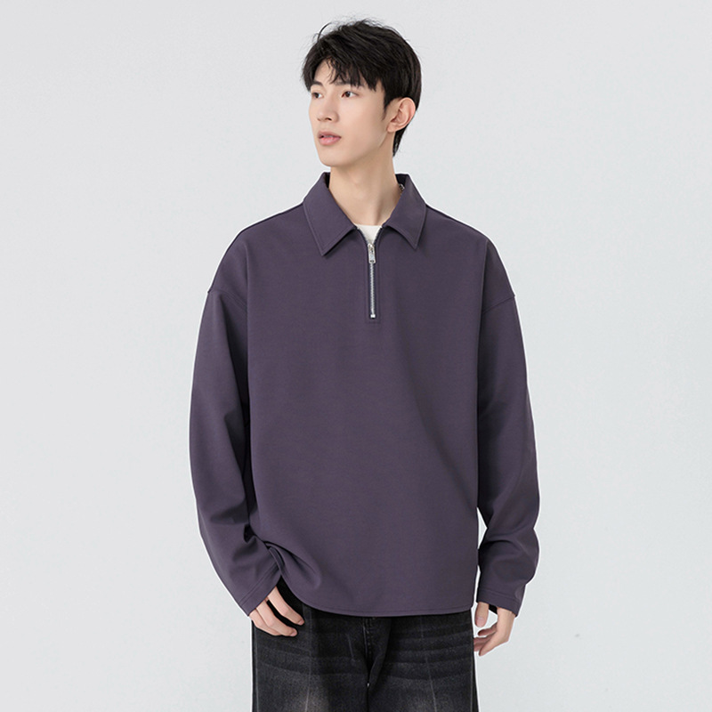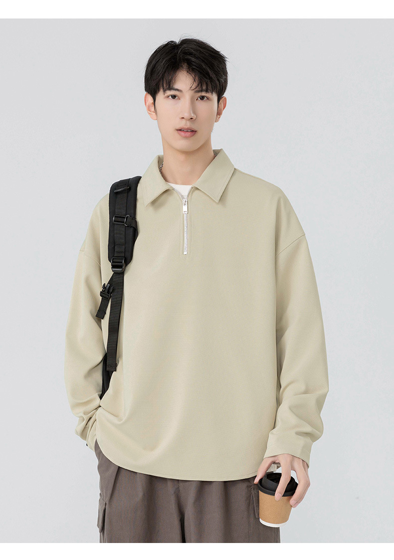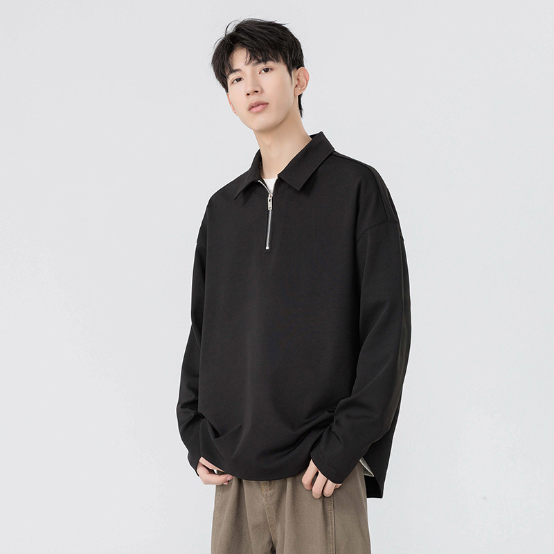 봄과 가을 남성용 무료 배송 다용도 스웨트 셔츠 새로운 느슨한 일본 복고풍 스타일 솔리드 컬러 하프 지퍼 캐주얼 긴 소매