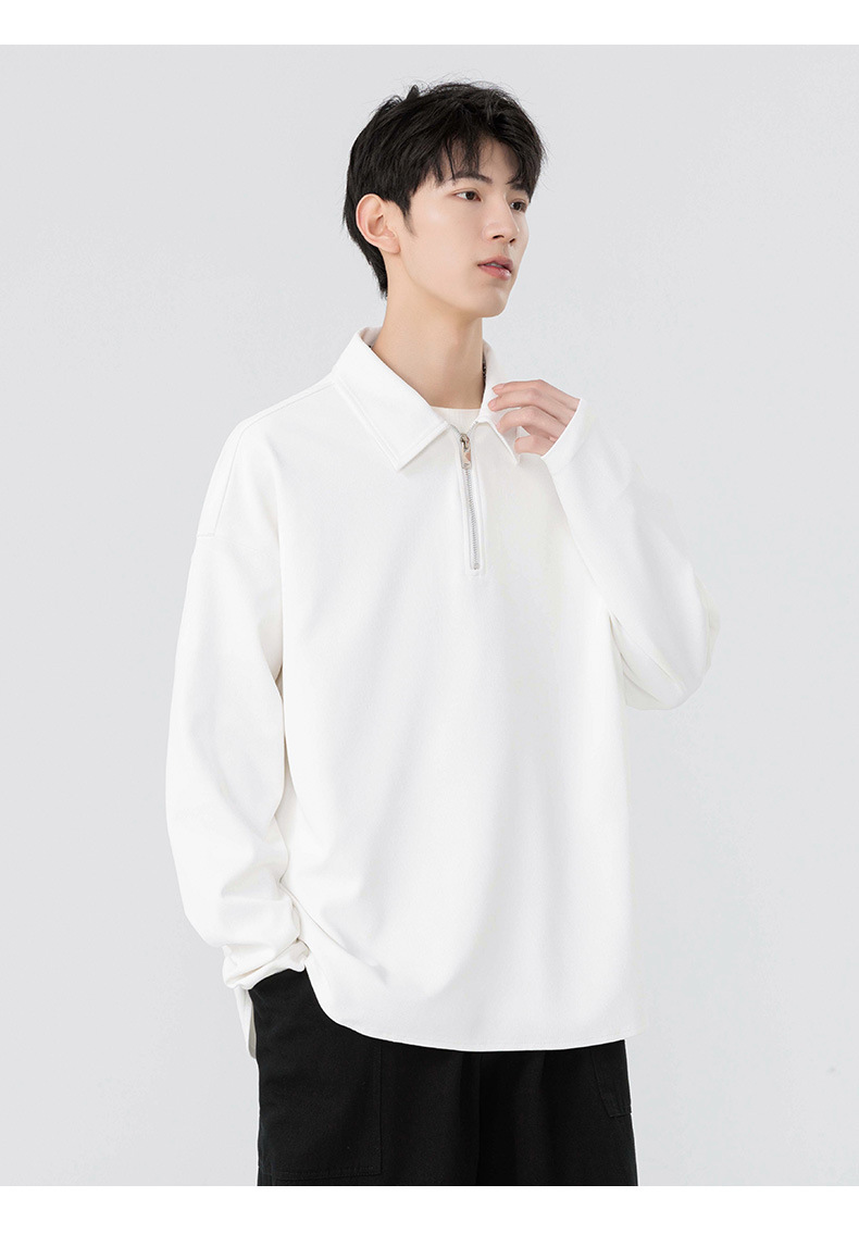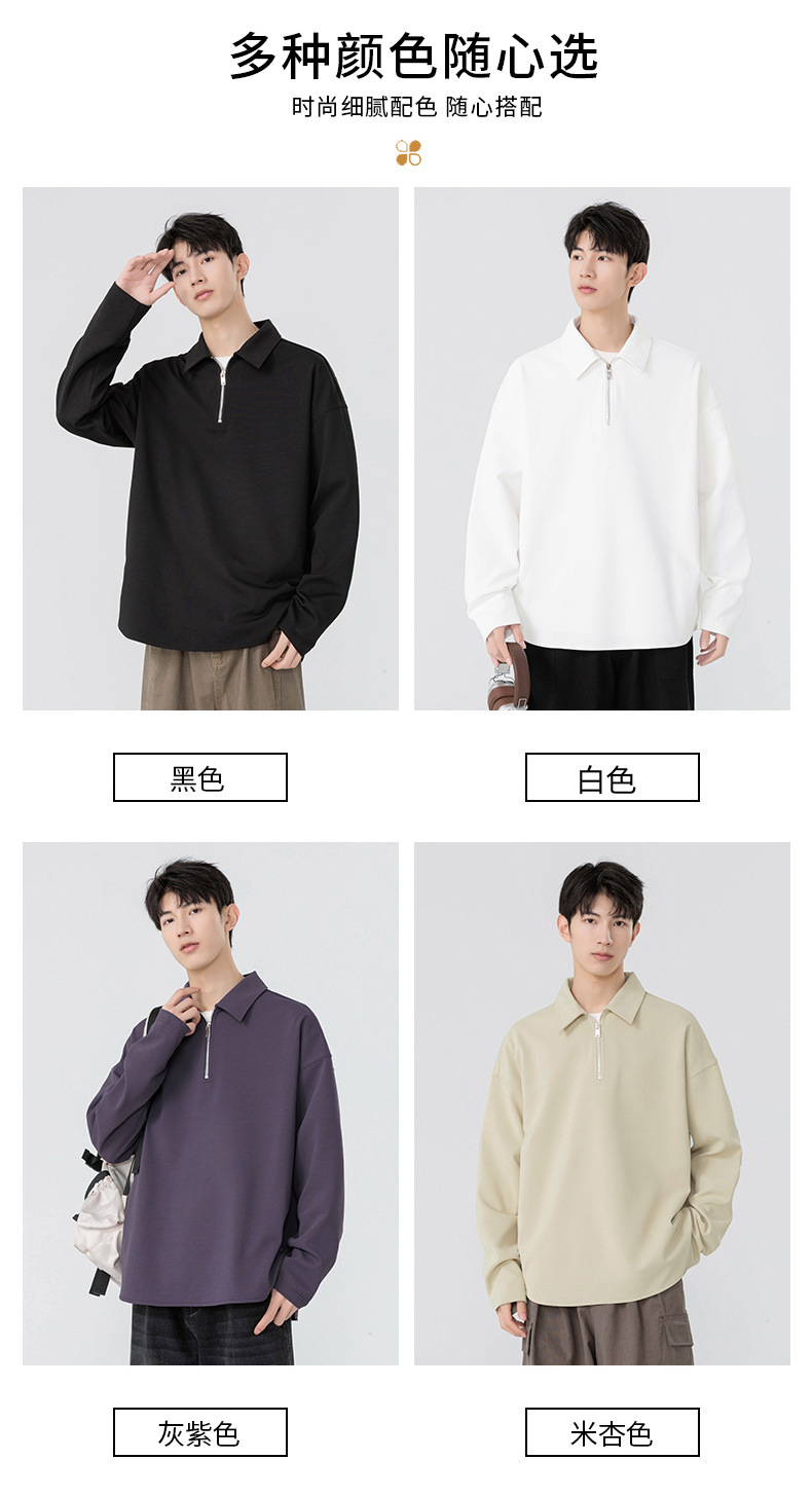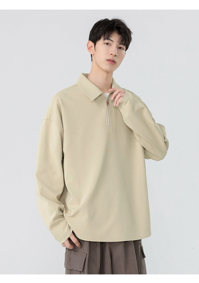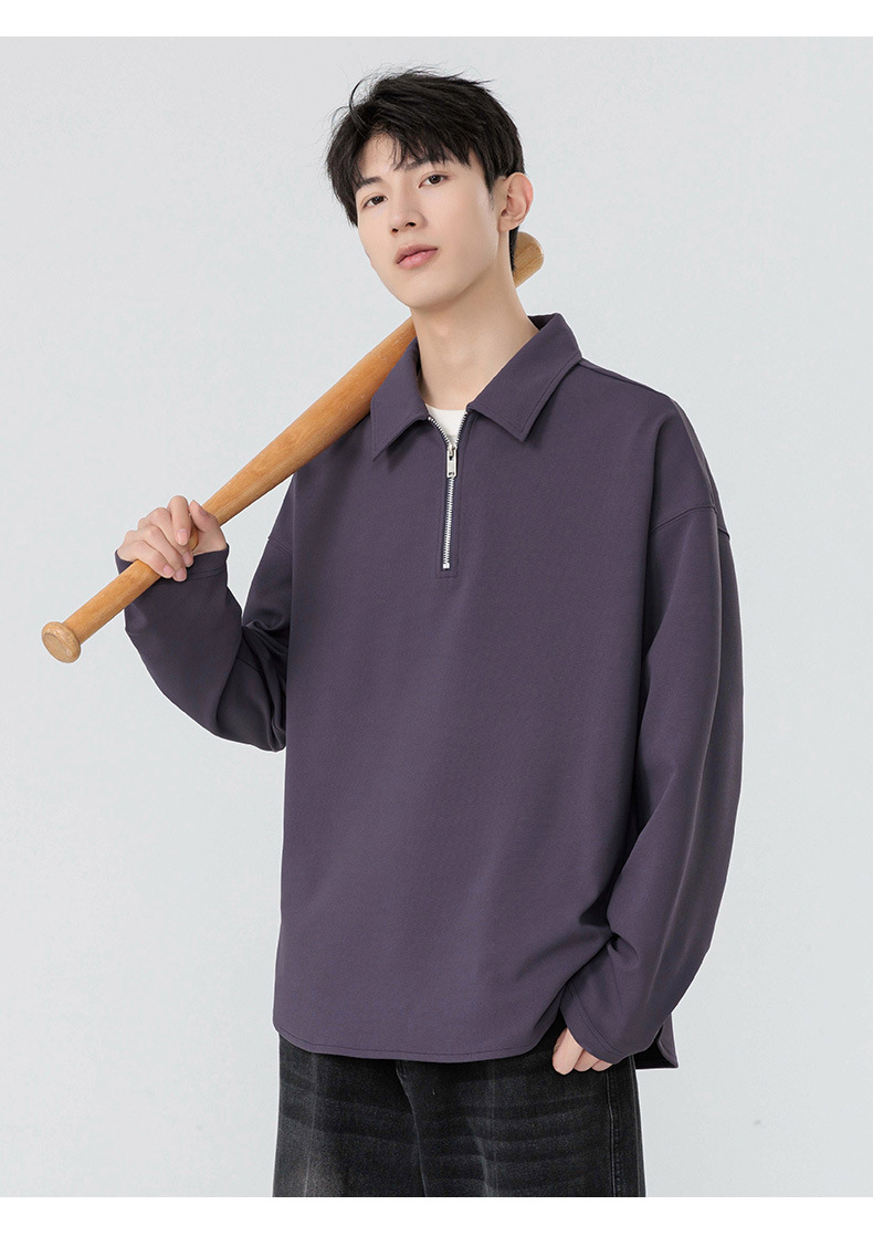 봄과 가을 남성용 무료 배송 다용도 스웨트 셔츠 새로운 느슨한 일본 복고풍 스타일 솔리드 컬러 하프 지퍼 캐주얼 긴 소매