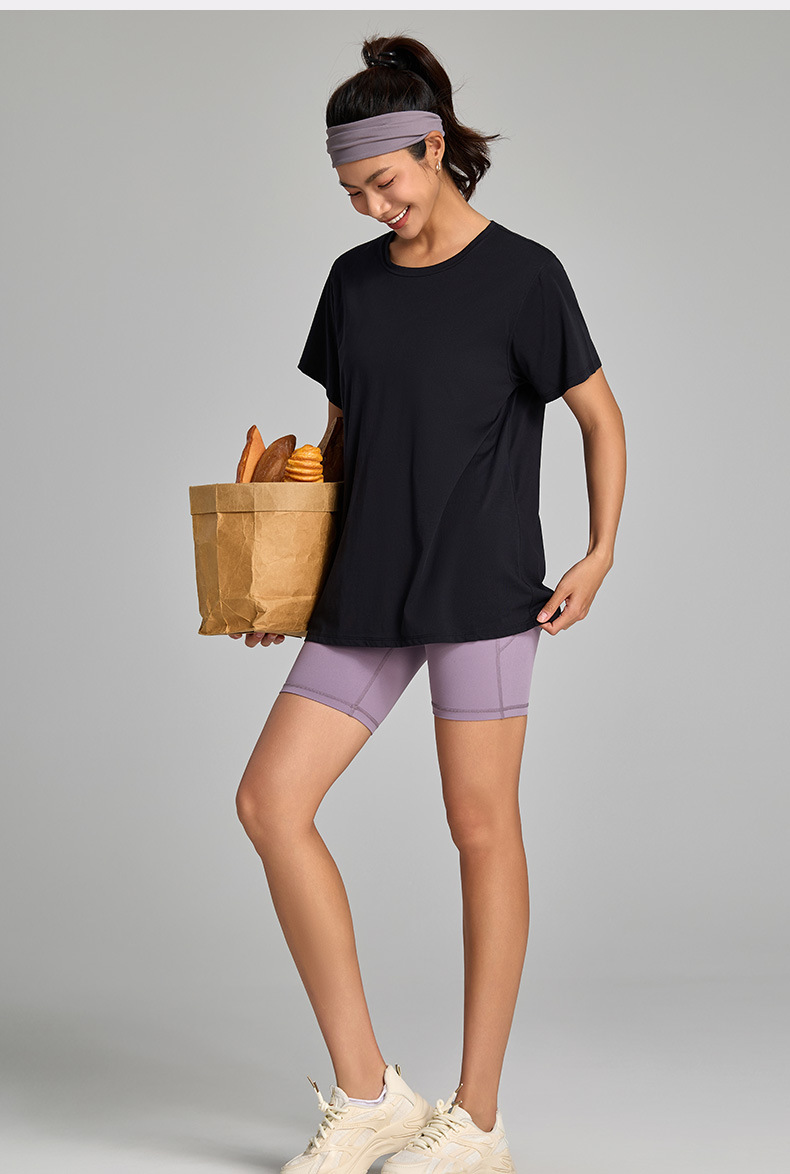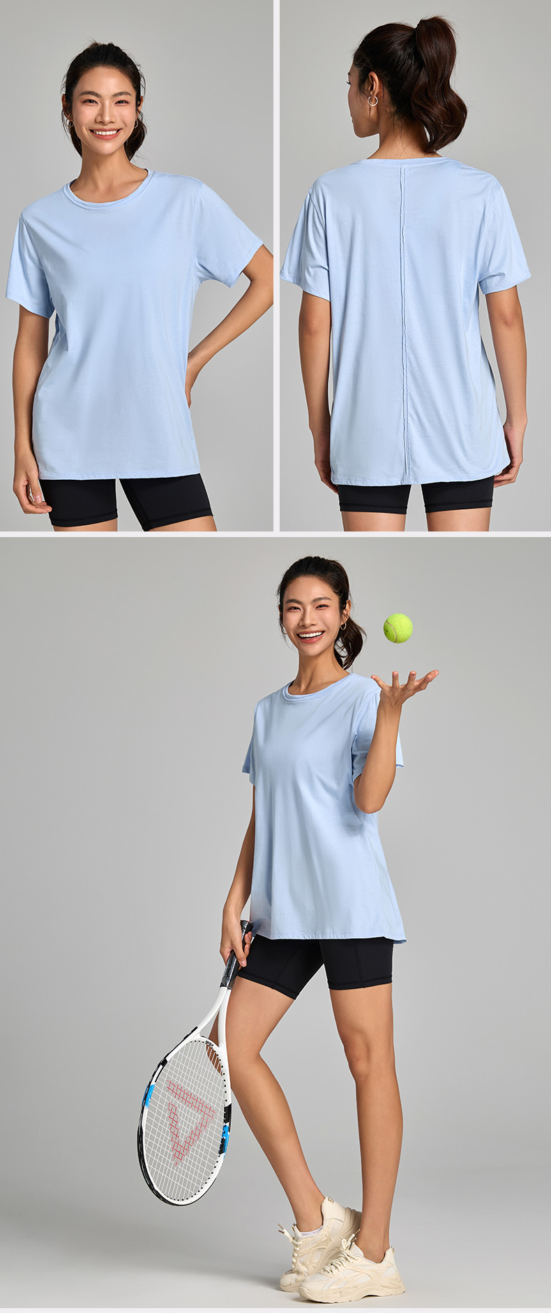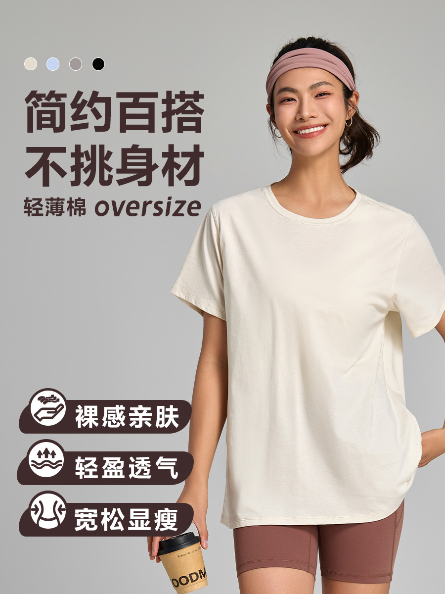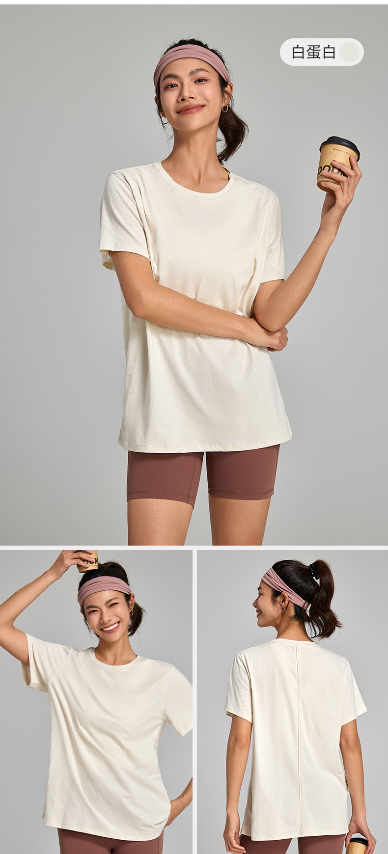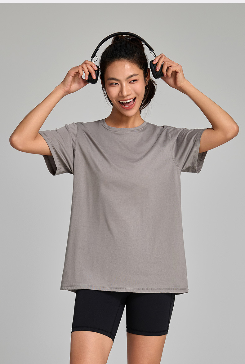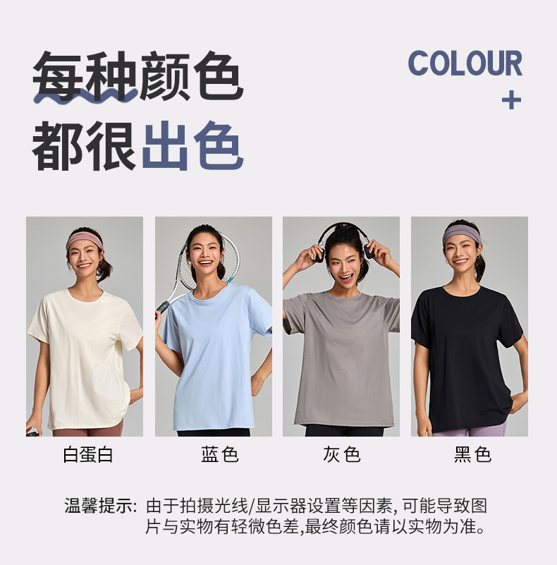 코튼 루즈 티셔츠 여름 시원한 빠른 건조 스포츠 탑 여성 솔리드 컬러 아이스 반팔 요가 피트니스 세트스토어 가기