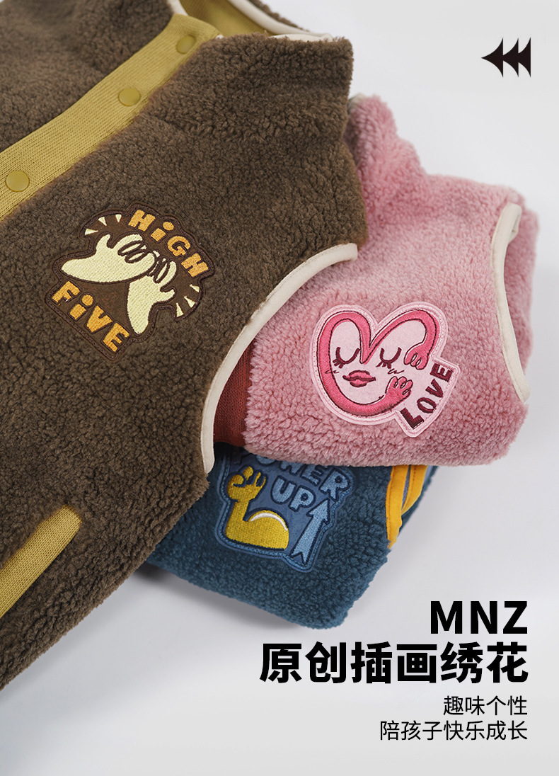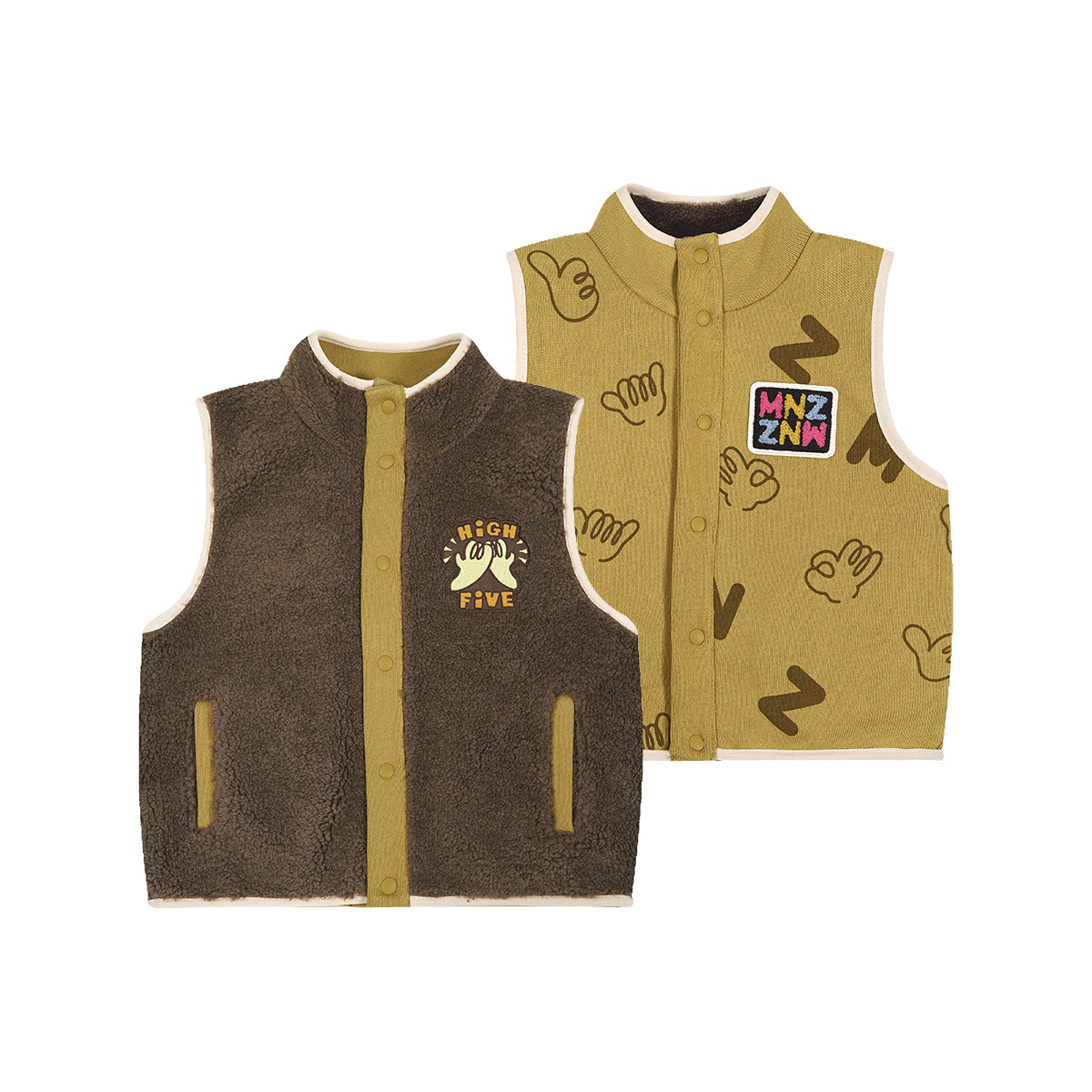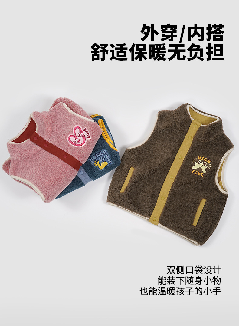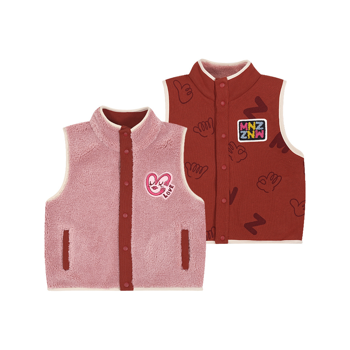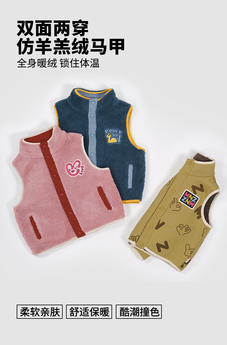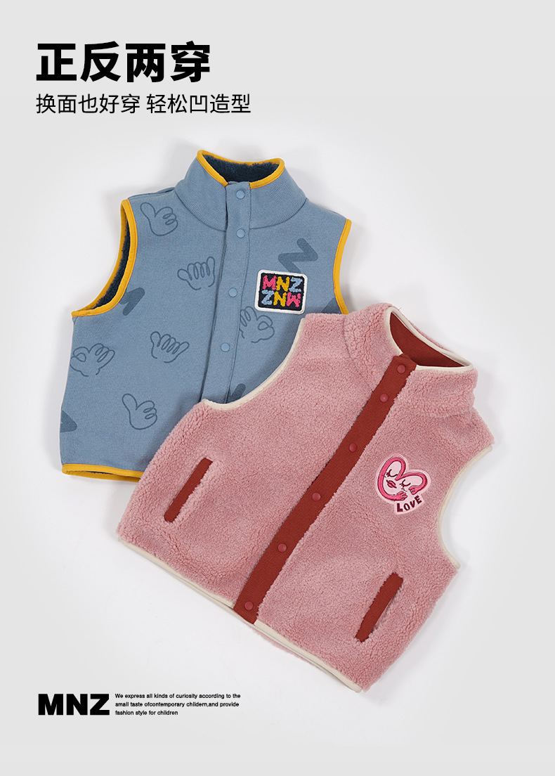 Minizone 어린이 양털 조끼 양면 외부 조끼 카디건 소년과 소녀 양면 재킷 두꺼운스토어 가기