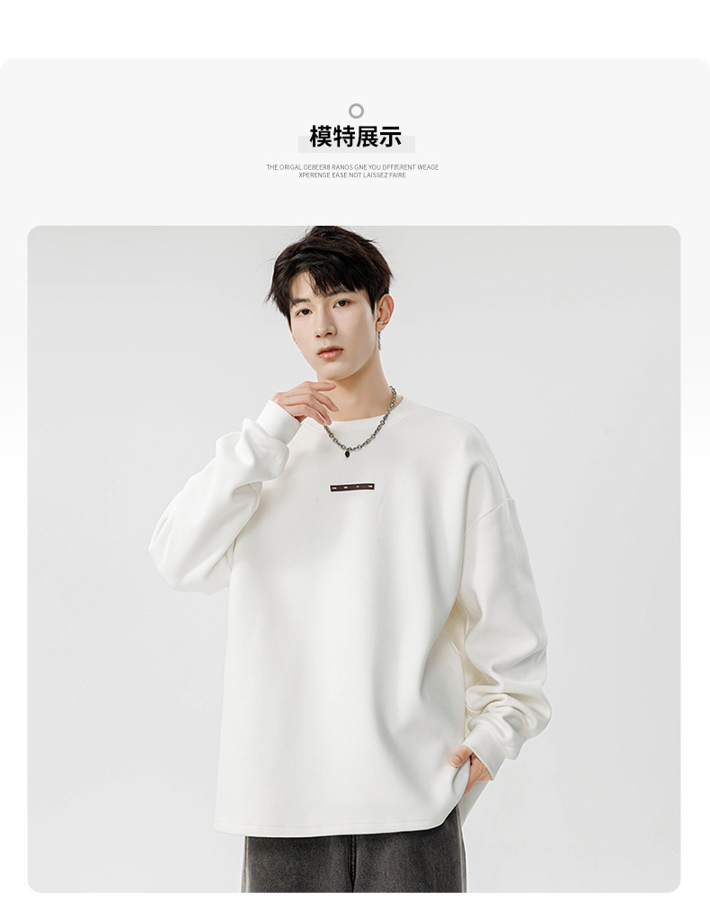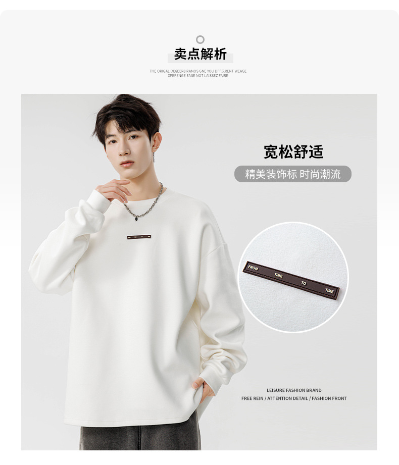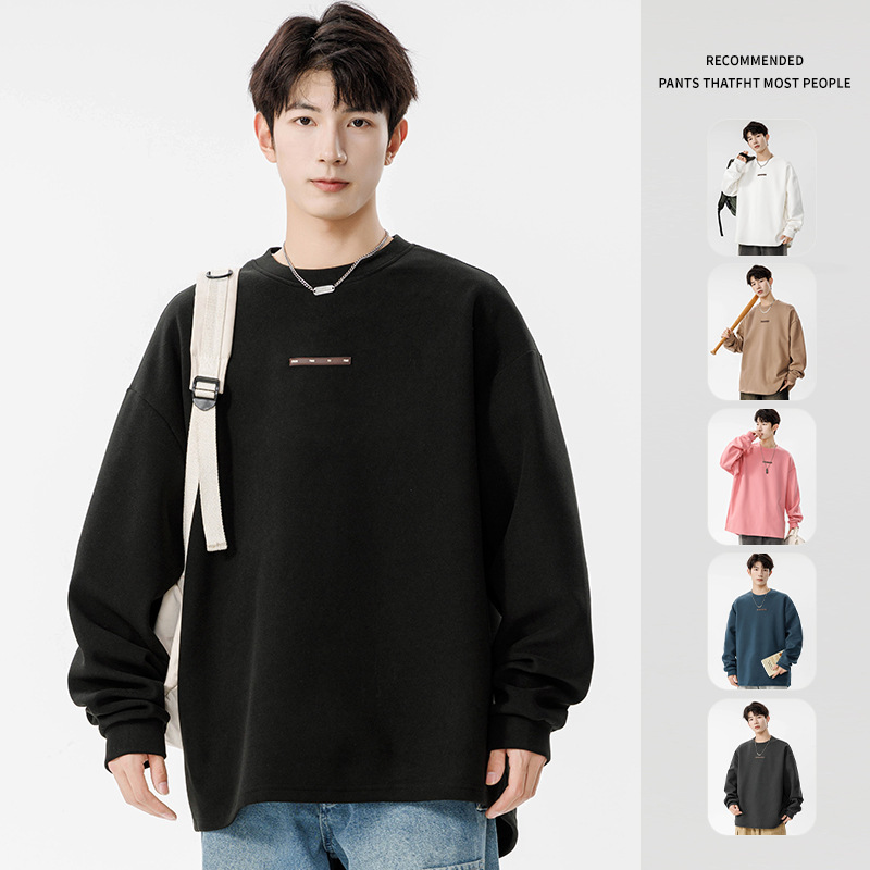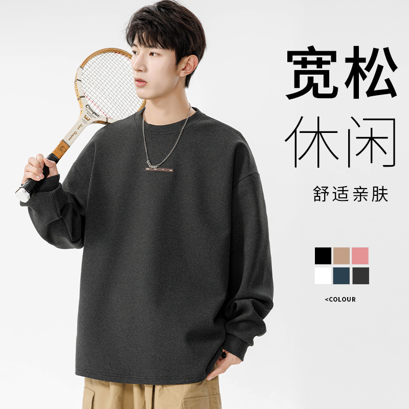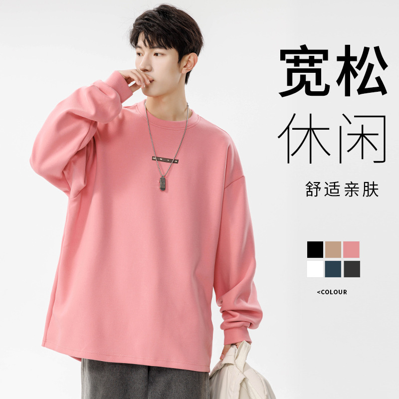 무료 배송 솔리드 컬러 스웨트 셔츠 남성용 다목적 2025 봄, 가을 루즈한 오프 숄더 라운드 넥 셔츠 커플 긴 소매스토어 가기