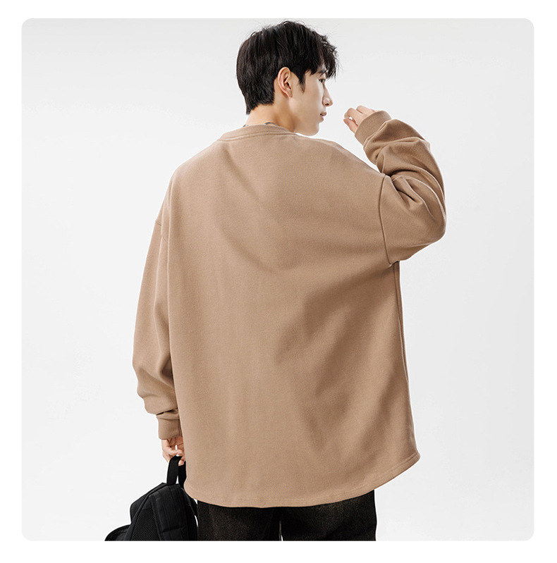 무료 배송 솔리드 컬러 스웨트 셔츠 남성용 다목적 2025 봄, 가을 루즈한 오프 숄더 라운드 넥 셔츠 커플 긴 소매